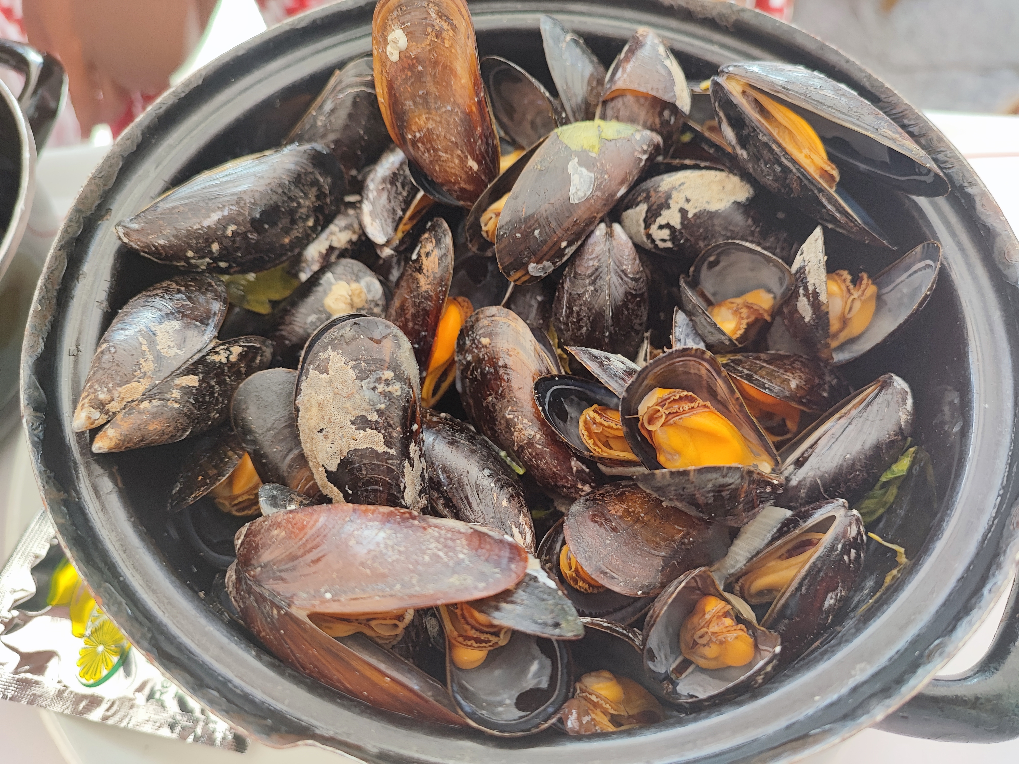 Moules au Maroilles à 17h00. La plupart des moules étaient fermées, le fromage très discret et l'assaisonnement inexistant les frites froides et en petite quantité, ça vaut mieux . J'espère que le cuisinier du service du soir est plus compétent...