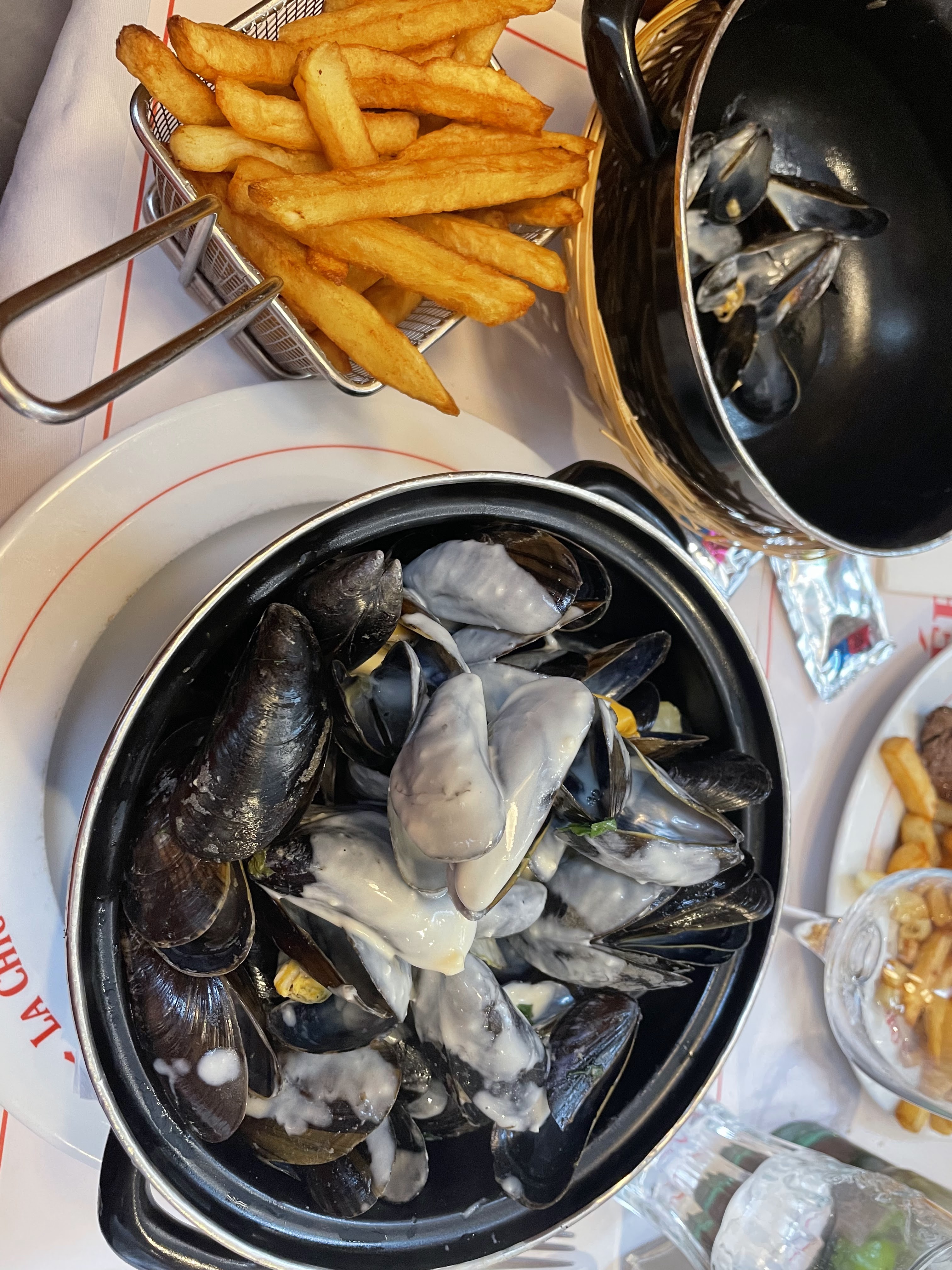 Un repas tardif en soirée où nous avons dégusté les moules qui furent très bonnes. Donc apéritif, moules ,Café gourmand en dessert et irish coffee pour moi très bien réalisé.un bon repas à deux. Je recommande