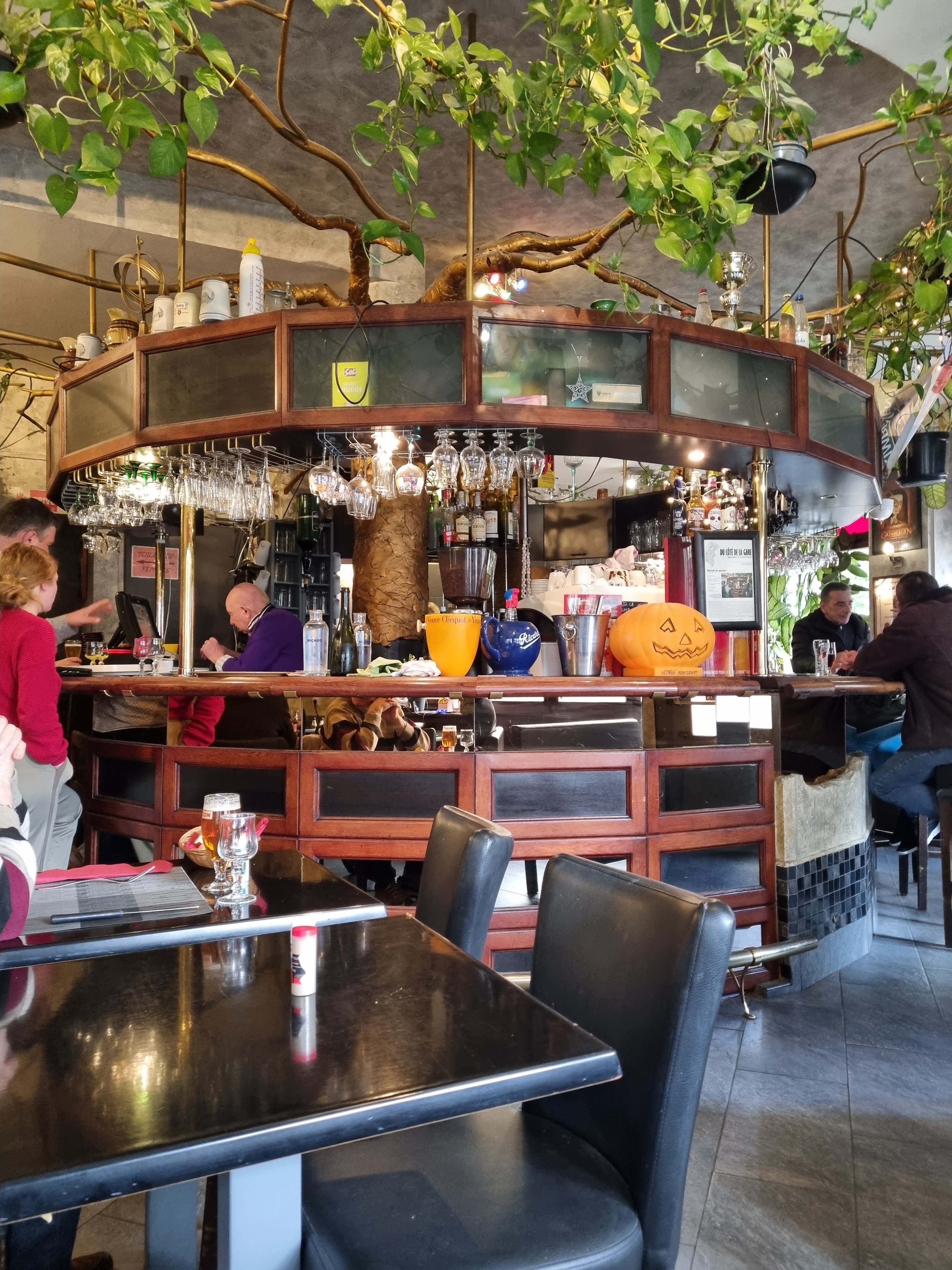 Un vrai bistrot vieux style comme on en trouve de moins en moins, avec un arbre en plein milieu du comptoir qui s'épanouit d'année en année, des lumières tamisées, une ambiance tranquille et amicale, une bonne bière locale (a très bon prix pendant la happy hour), une cuisine familiale qui nous a fait penser en chœur à nos grand-parents, par la simplicité et le soin qui en transpirait... On repassera dés que possible pour un p'tit marc de Gewurtz! ;-) P.S. Végétarien(ne)s n'ayez pas peur de demandez un petit plat sur mesure! Tout au plus, attendez-vous à ce que quelqu'un vous fasse remarquer que la cuisine alsacienne, c'est pas trop veggie en principe!