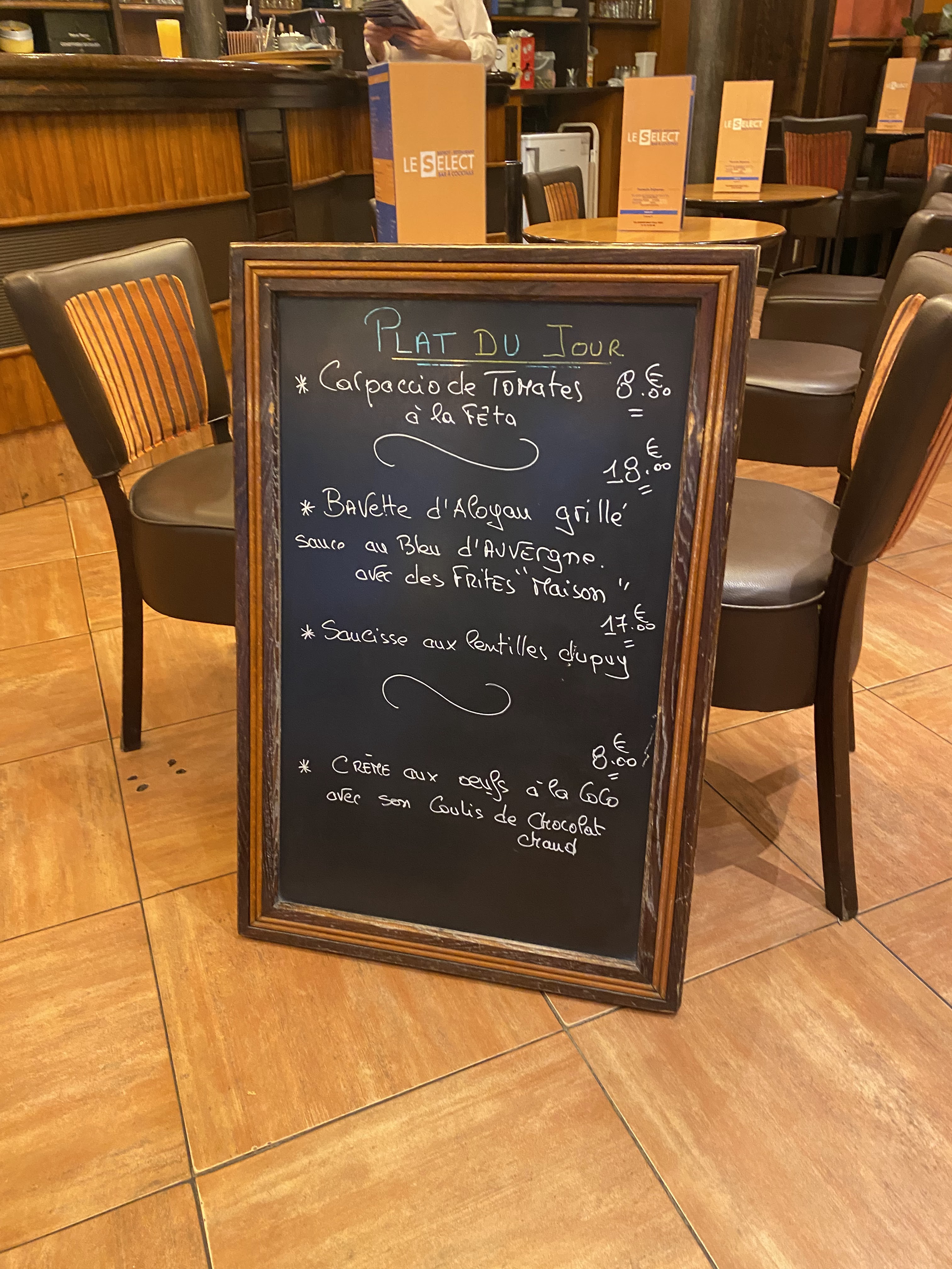 Endroit très sympa ! J’ai mangé une salade igloo très très bonne et copieuse! Les serveurs sont souriants et très sympa ce qui est rare à Paris, il faut garder cette adresse. Le sélect est une belle brasserie, je reviendrai avec plaisir !