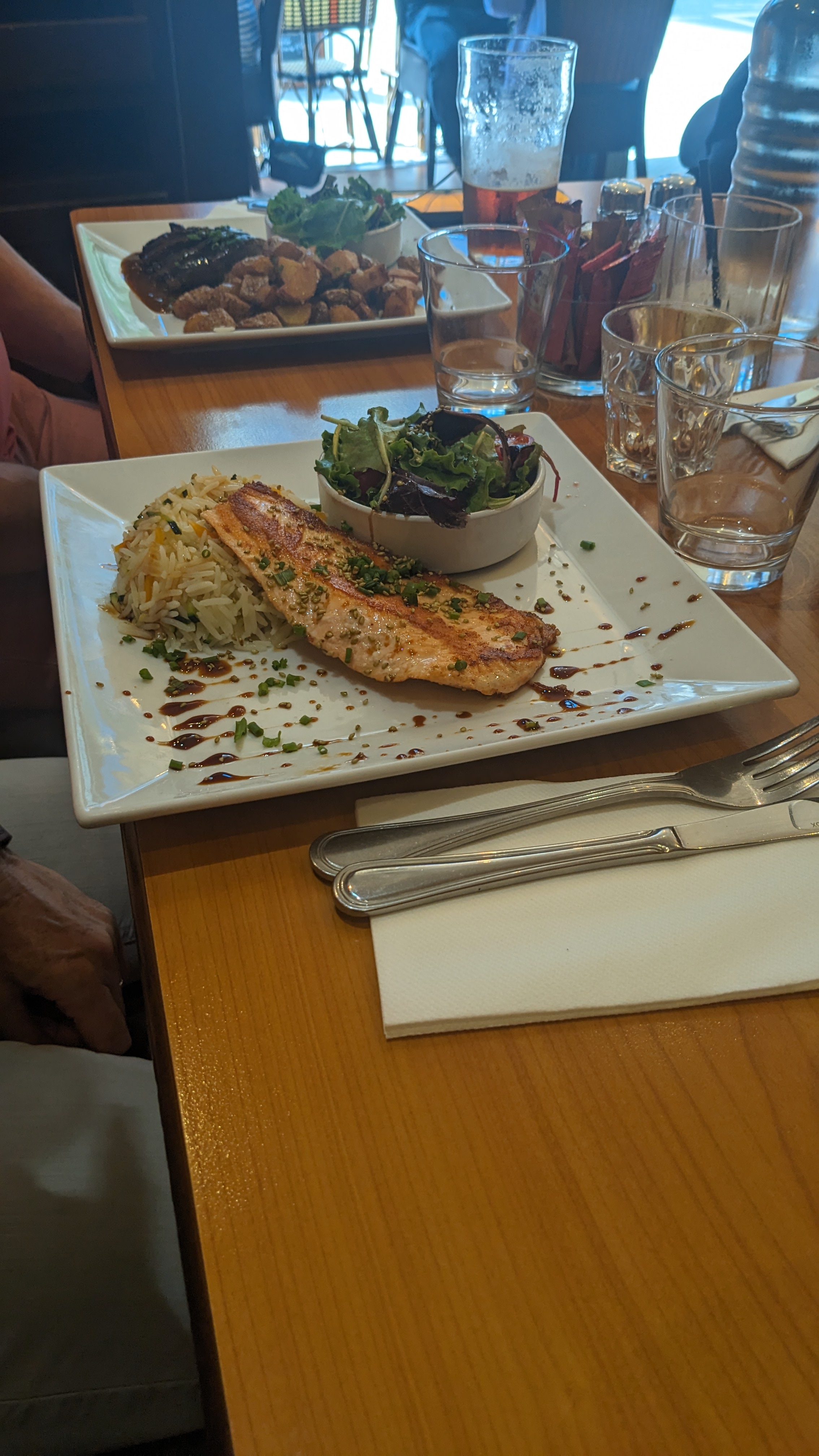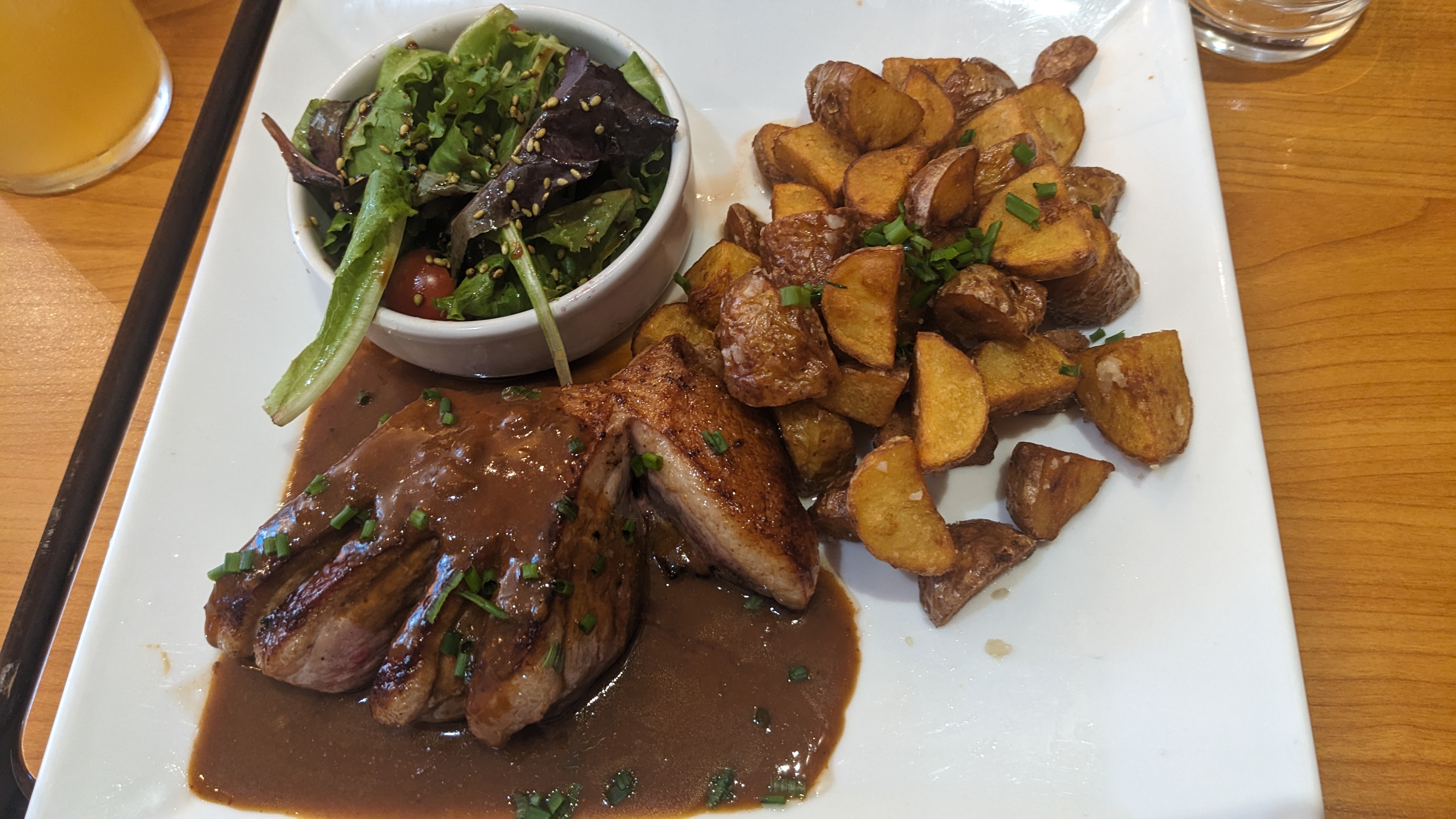 Un service rapide et sympa. Le saumon était trop gras (courant dans les brasseries de ce type) et le burger avait ses pains encore un peu surgelés. Bref, pas trop top. Mais on ne s’attend pas à beaucoup mieux pour ce lieu qui n’a pas de prétention hors de ses capacités.