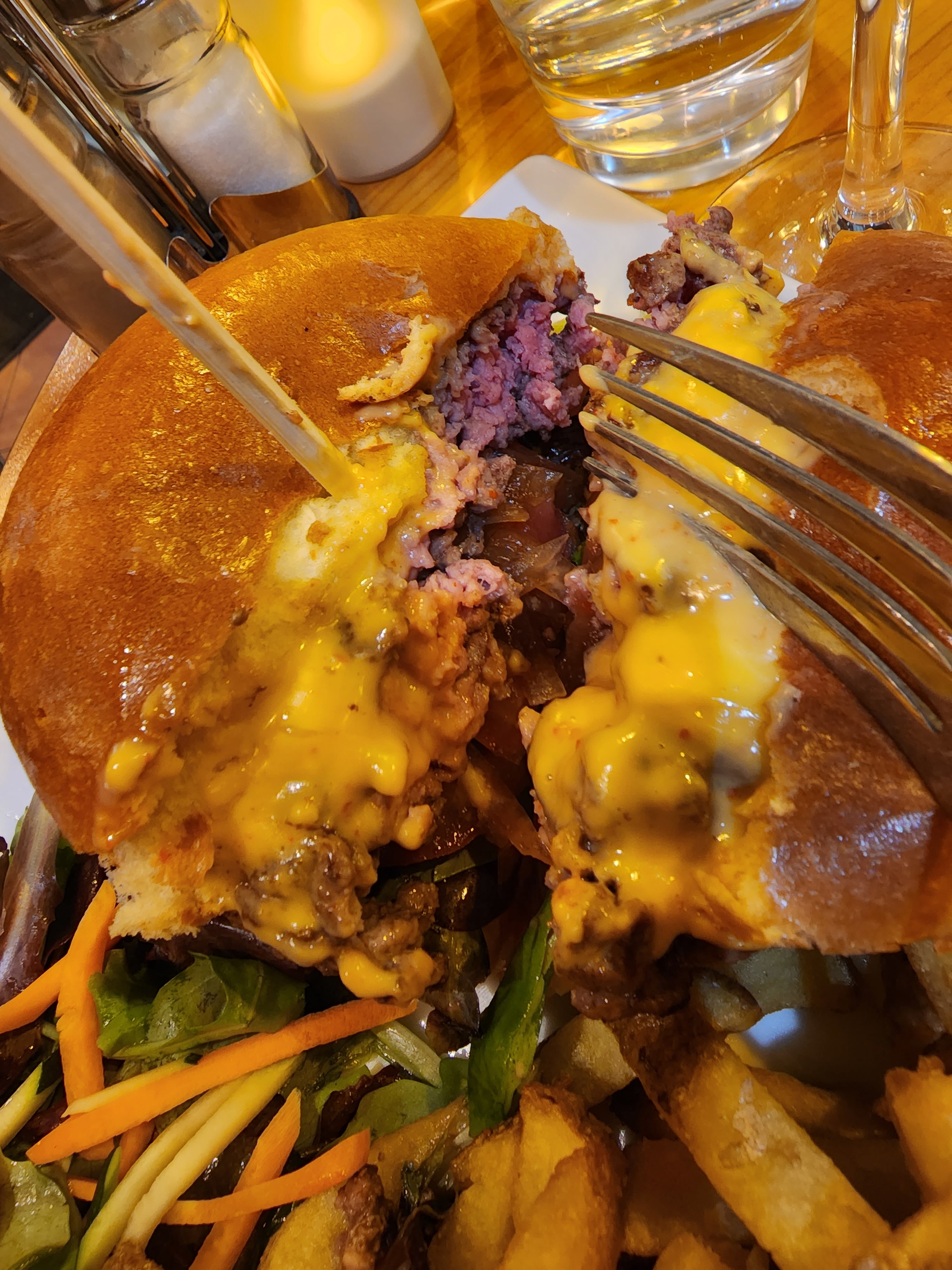 J'ai vraiment apprécié ma visite ici avec un groupe de 5 personnes. Je n'ai rien commandé de compliqué (burger et frites) mais c'était bien cuit et savoureux, et le restaurant a répondu à la demande d'un ami d'avoir des pâtes et des légumes au menu. Le restaurant n'était pas trop occupé un vendredi soir et nous avions un excellent serveur appelé Thibault pour notre table, où le service était rapide, efficace et sympathique. Je reviendrais certainement ici si je suis dans la région. Un grand merci et à bientôt j'espère !!