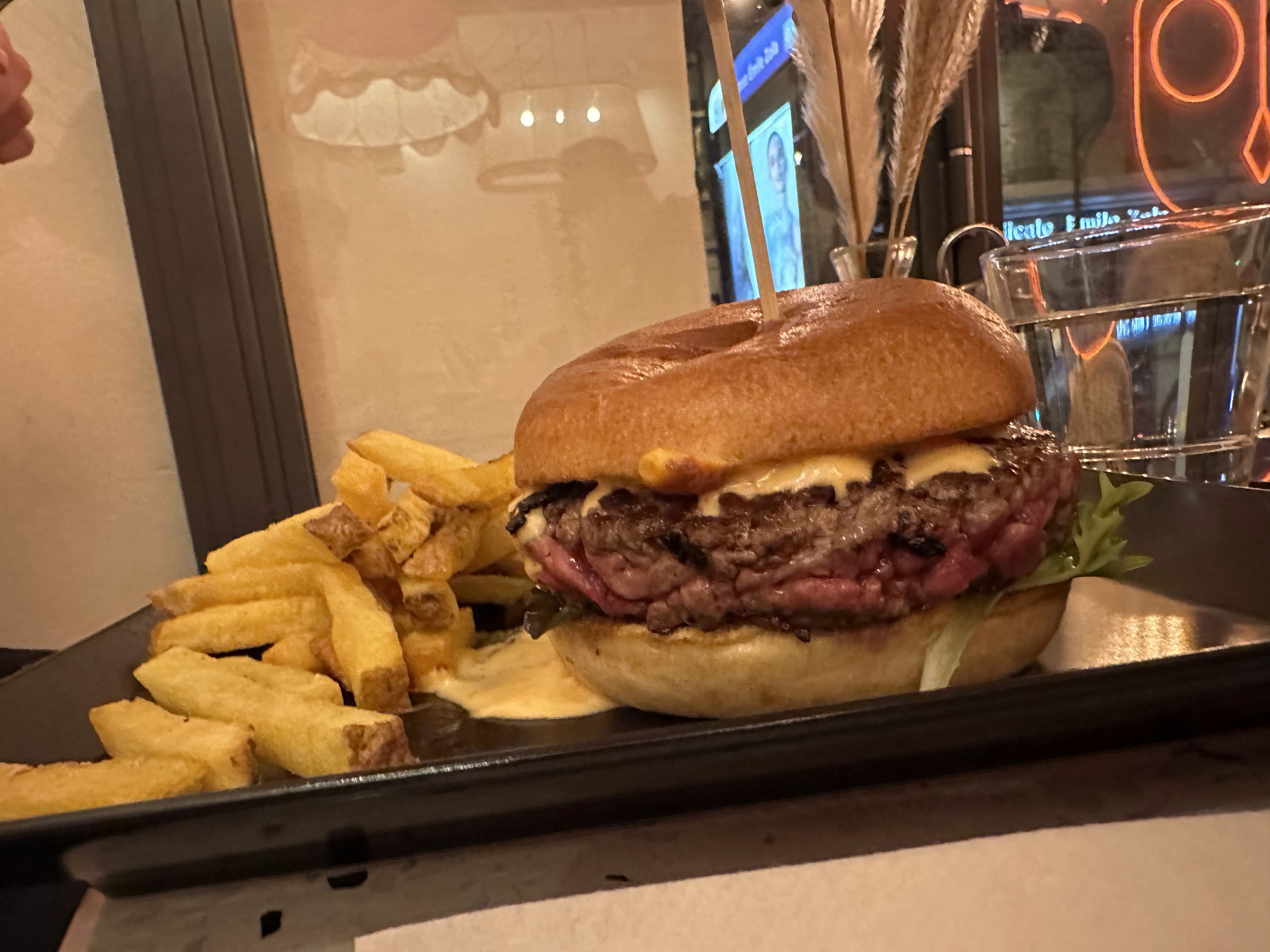 La nourriture est toujours bonne. Le burger est plutôt gros, ce qui est génial. Les frites sont bonnes aussi. J'y suis allé 3 ou 4 fois et je n'ai pas eu de visite qui ne m'ait pas plu. Ils peuvent être un peu lents quand il est temps de payer et que vous voulez sortir - mais bon, c'est la France, c'est comme ça.