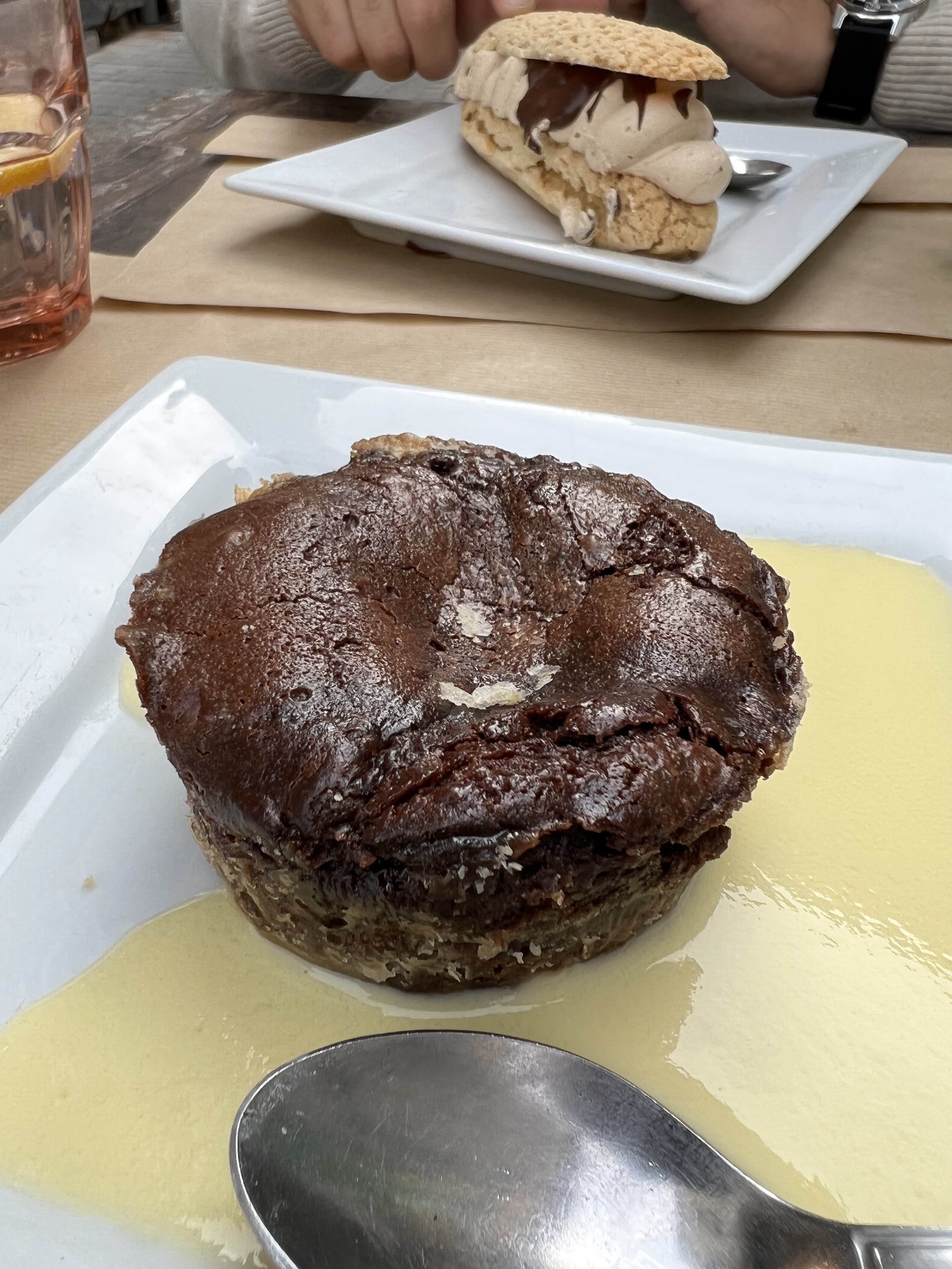 Notre amie nous avait prévenues: Accueil chaleureux Très belle assiette avec un burger de bœuf du Cantal magret fumé excellent, son accompagnement soigné et plein de saveurs (légumes glacés, purée de patate douce…). Bref, c’était top et je vous dis merci!