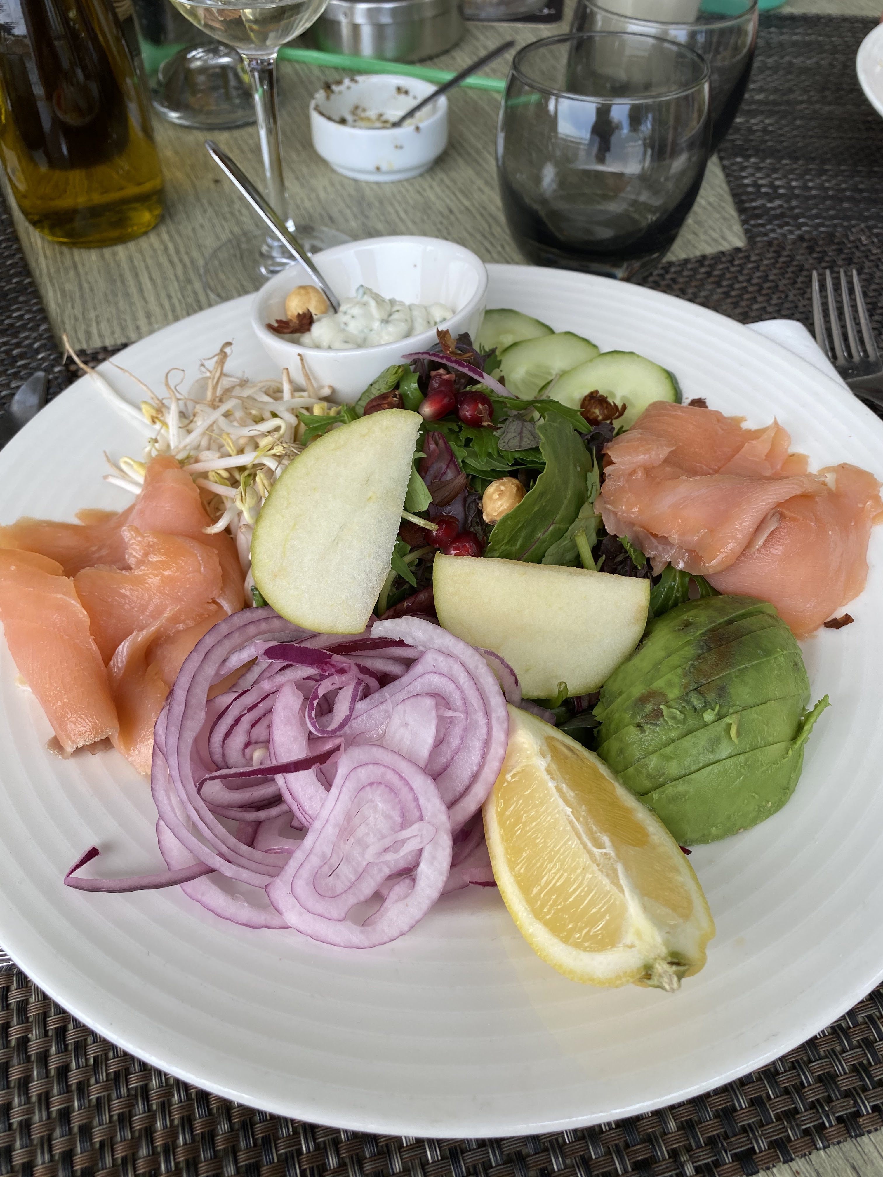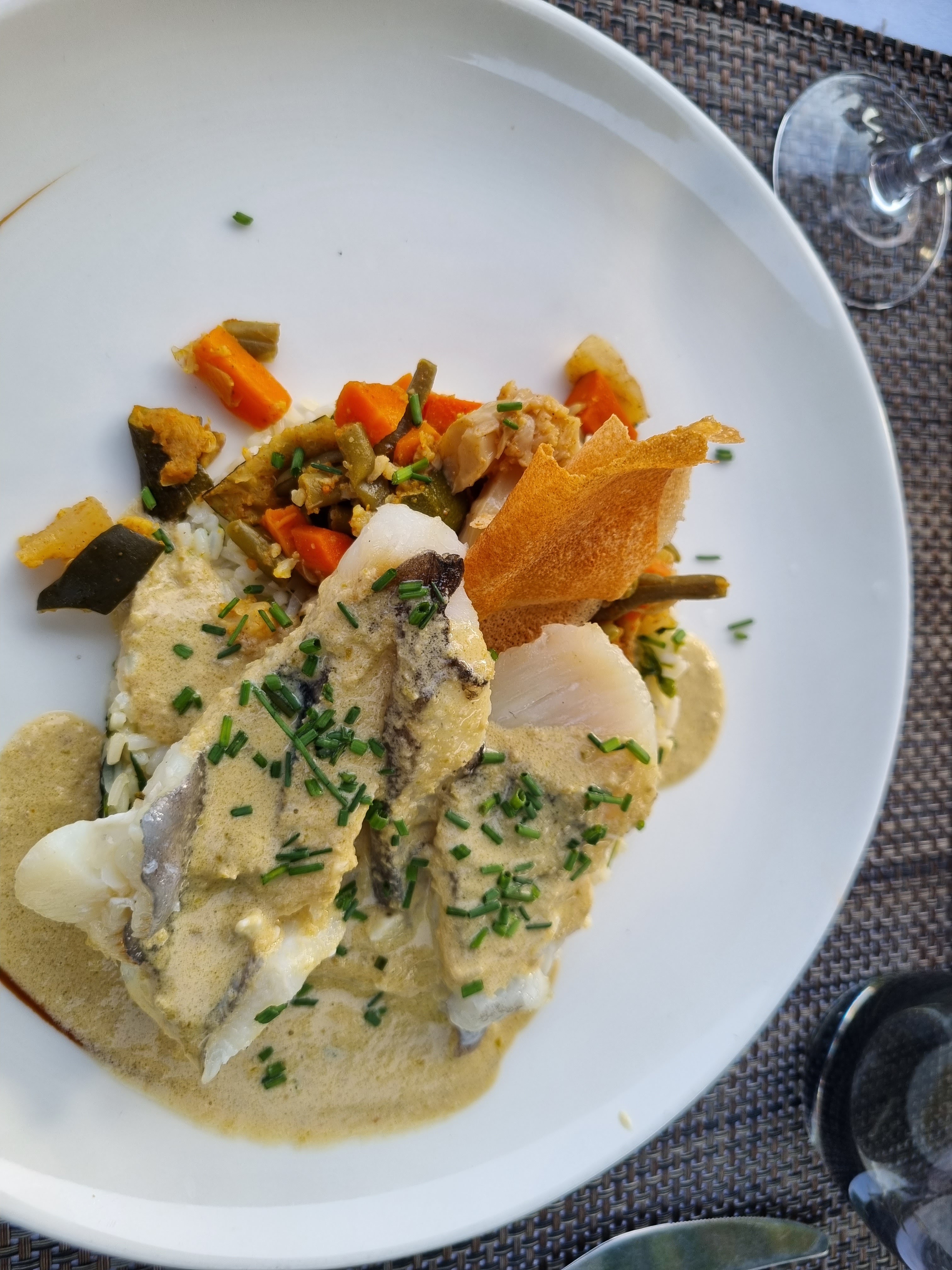 Repas ce midi sur la plage. Tt était parfait des nems- croustillants et bien garnis- au cabillaud a la thaïe- relevé et très bien cuit- Ne changez rien!!