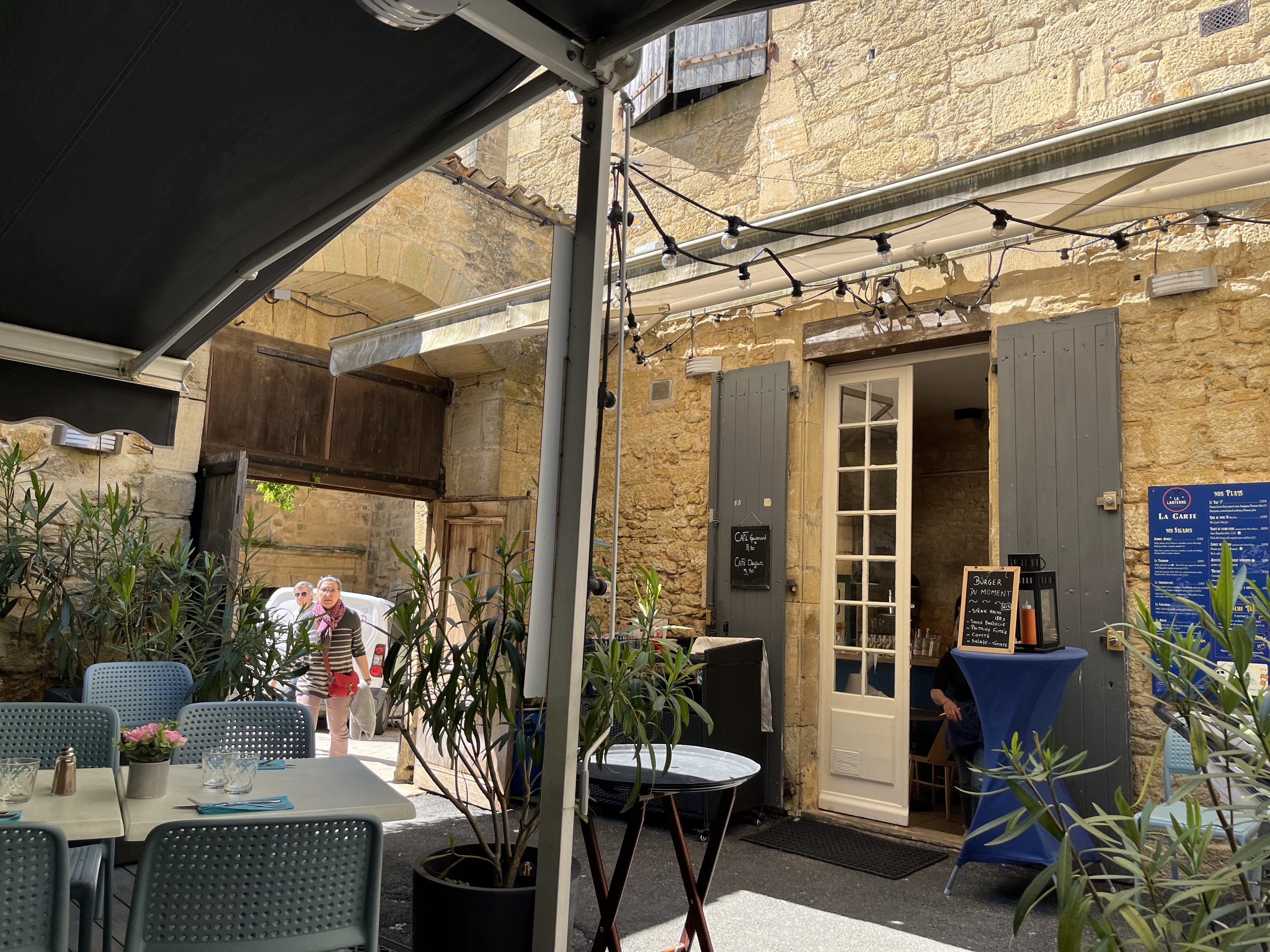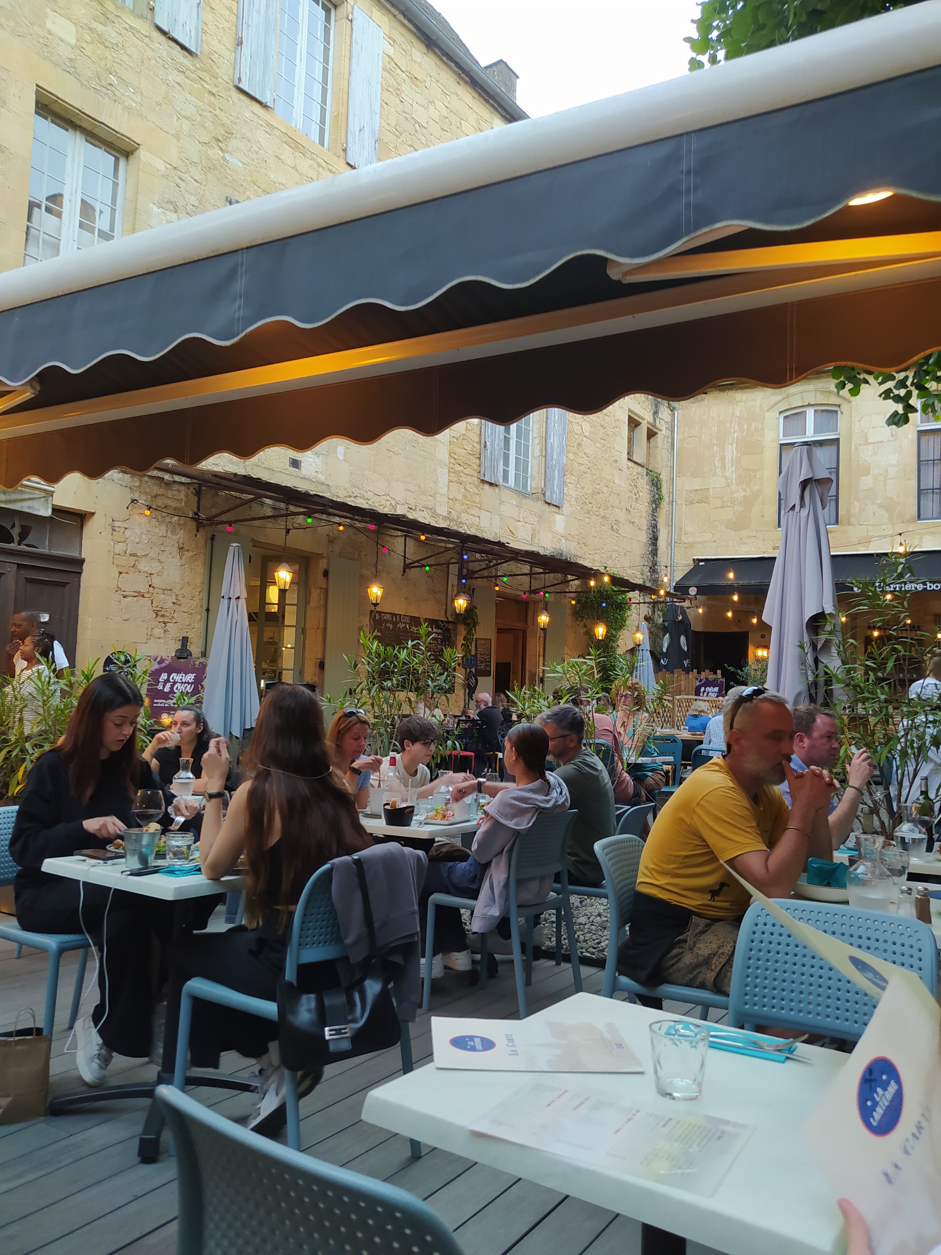 Située en plein centre de Sarlat a côté de la cathédrale, une belle terrasse dans une cour intérieure. La carte est élaborée avec des produits locaux (magret, confit de canard, etc...). Frites maison. Glaces artisanales. Nous nous sommes régalés. Adresse très recommandable.