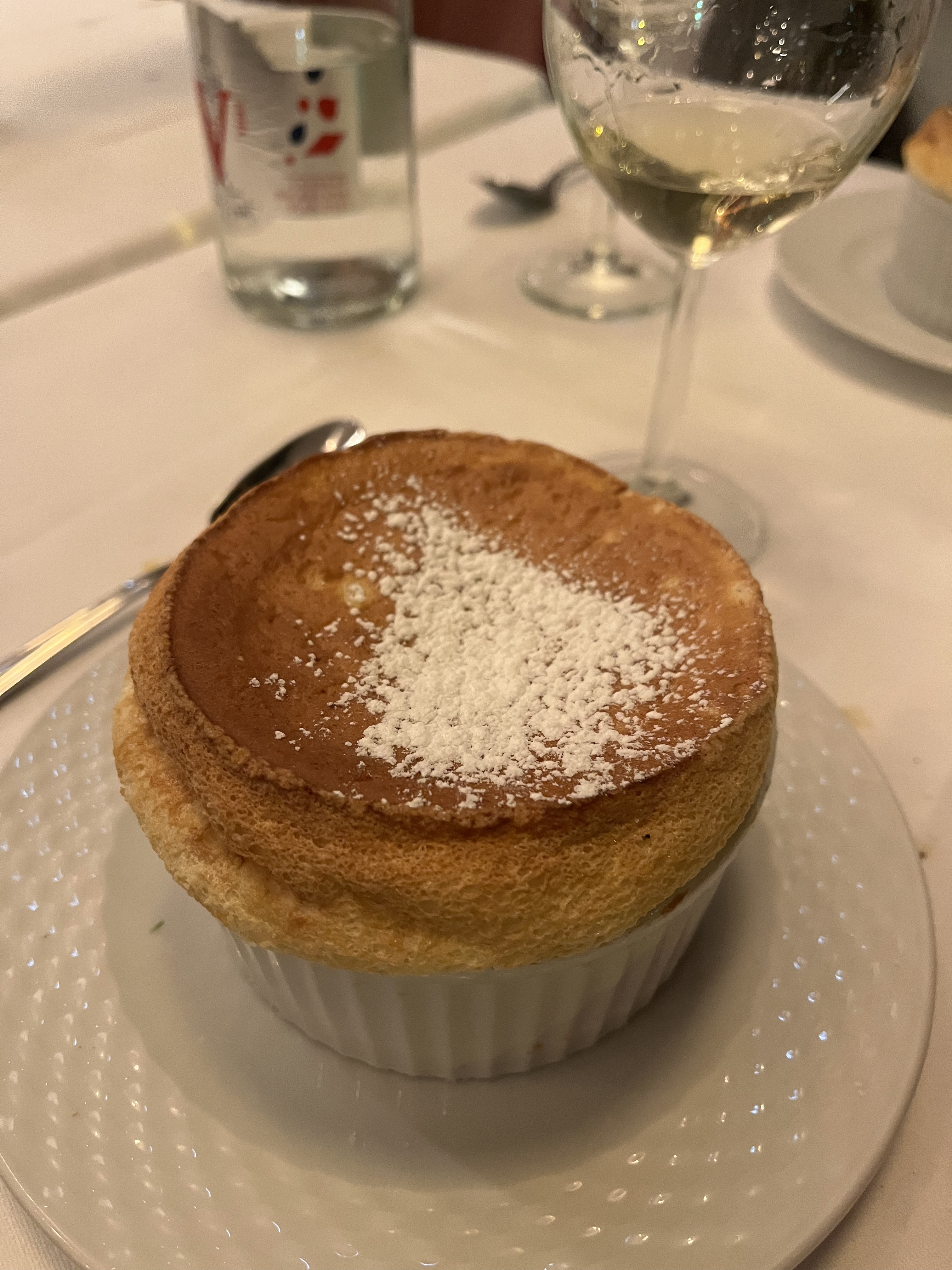 Une institution qui a helas déçu hier soir. Plat principal (tartare de thon) délicieux quoique un peu chiche. Dessert : soufflé au grand marnier. Totalement Raté car tout aplati! Nous avons ete obligés de demander a ce qu'il soit refait. Table voisine extrêmement bruyante (des touristes chinois fortement alcoolisés) et sans gêne. Beaucoup comme nous se sont plaints. Personnel pas assez sévère avec ces clients sans doute avec beaucoup d'argent ms vraiment mal élevés. Verdict : nous ne reviendrons pas!