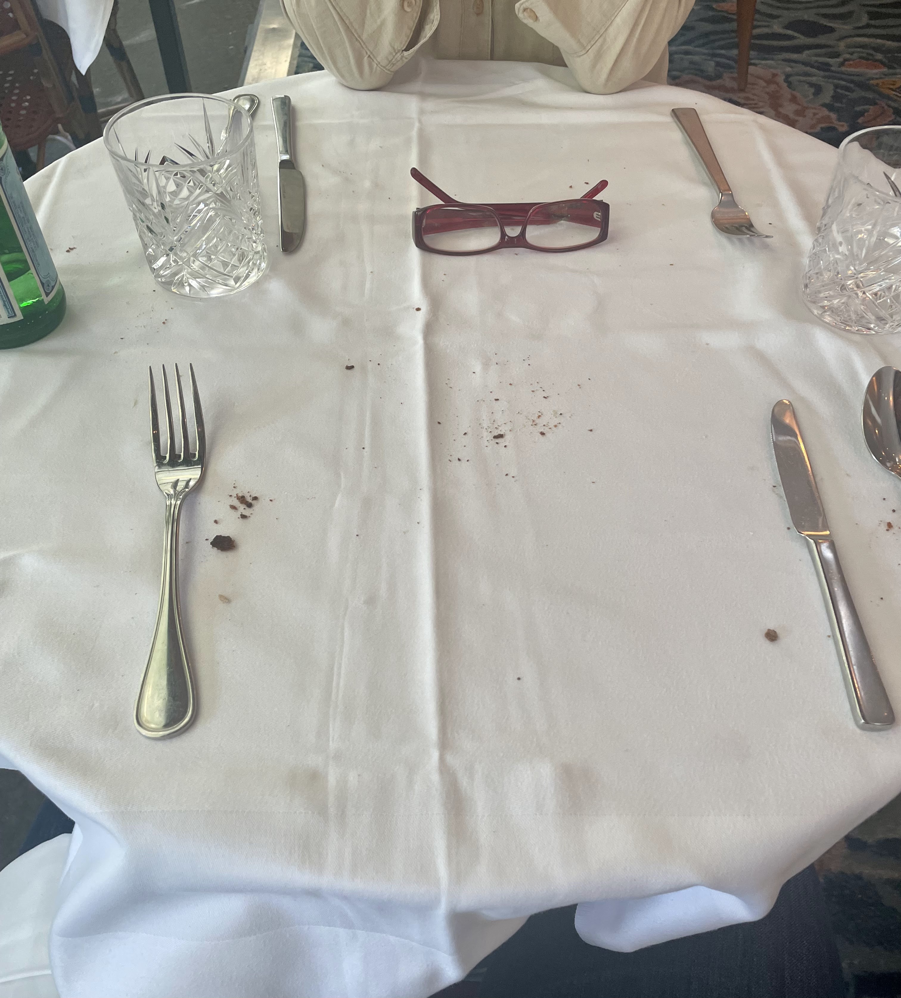 Cadre élégant, service professionnel, timing parfait, cuisine correcte Plat arrivé à peine tiède à table Absence de pain sans gluten