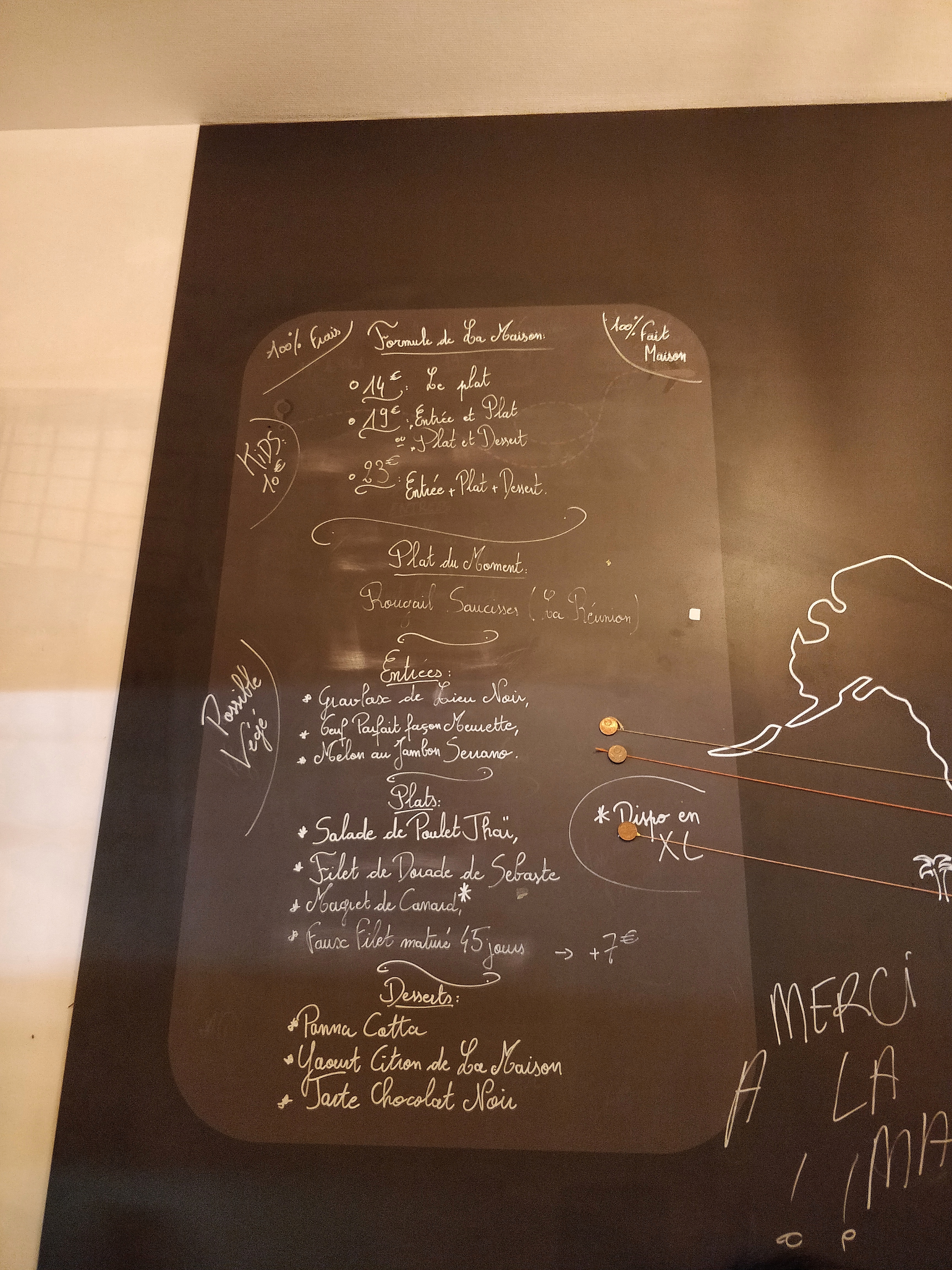 Soyons honnête : des restaurants comme la Maison, avec des produits frais de saison, une carte réduite et une équipe aussi sympathique, il n'y en a pas 50 dans le Boulonnais. Nous avons été acceptés à une heure tardive, avec le sourire malgré un retard important. Le menu nous a été présenté avec patience et bonne humeur. En ce qui concerne la qualité des plats, les avis étaient plus partagés. Sans doute l'heure tardive peut elle expliquer certains problèmes de cuisson assez étonnants. En revanche, ceux qui ont opté pour la pêche du jour sont unanimes : la Maison est capable de faire beaucoup mieux qu'un simple filet de lieu avec du riz, sauce crème nature. Des légumes (la saison actuelle n'en manque pas), une sauce pêchue, des couleurs, des épices : les pistes d'amélioration sont larges ! En l'état, ce plat nous paraît être une aberration. La démarche est là, l'accueil du client aussi, tout comme la qualité des produits : il ne manque pas grand chose pour en faire un pilier du centre-ville. Nos encouragements pour la suite ;)