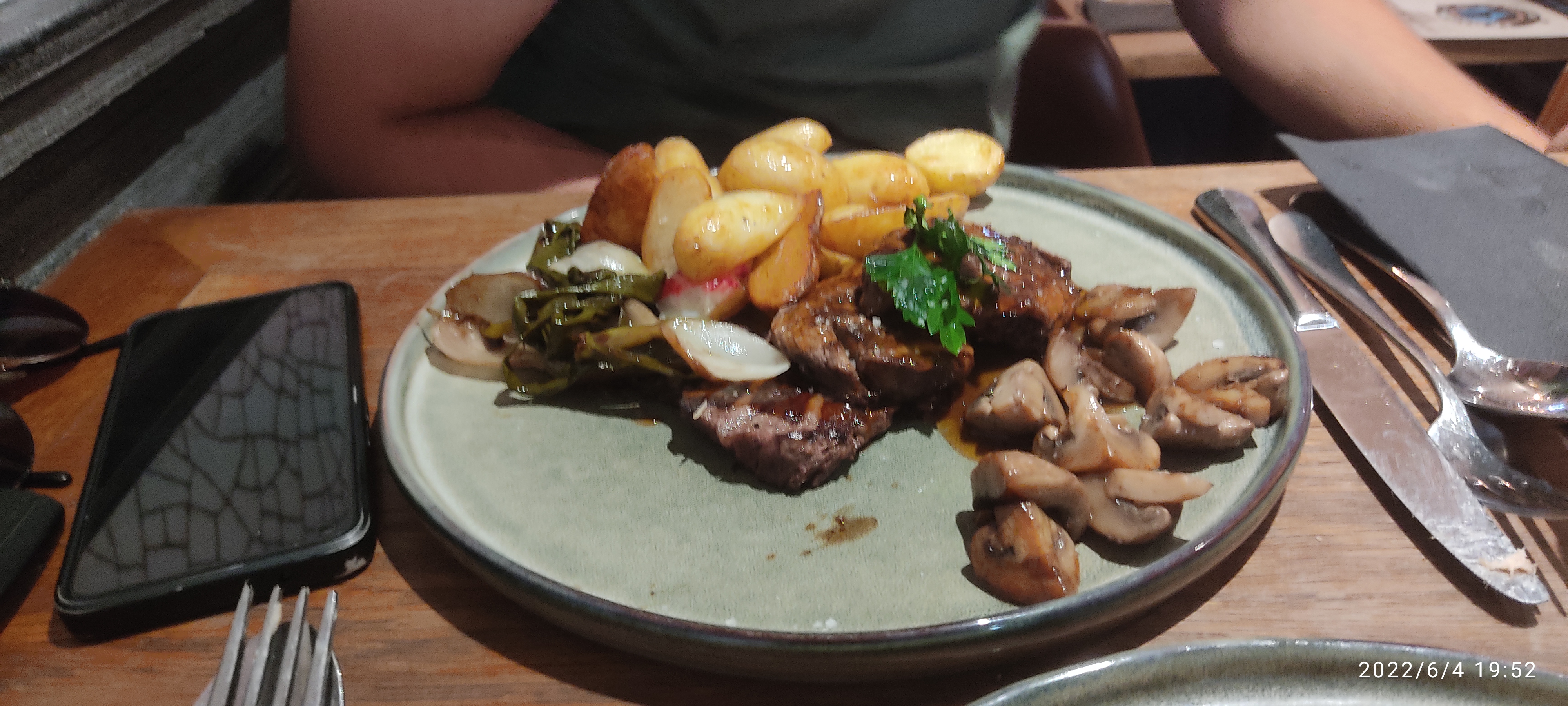 La pièce du boucher était excellente,elle fondait dans la bouche ! Serveur très agréable