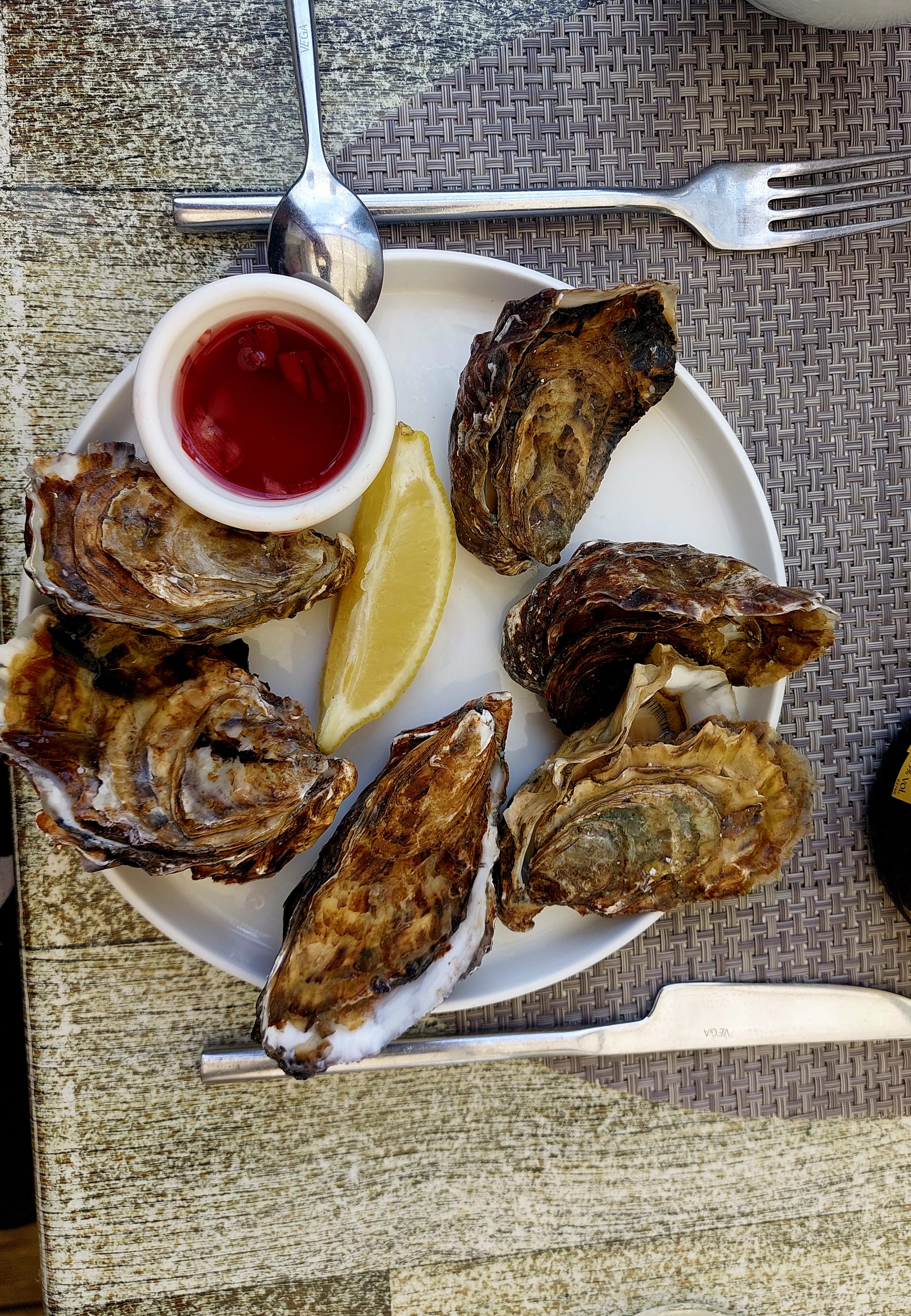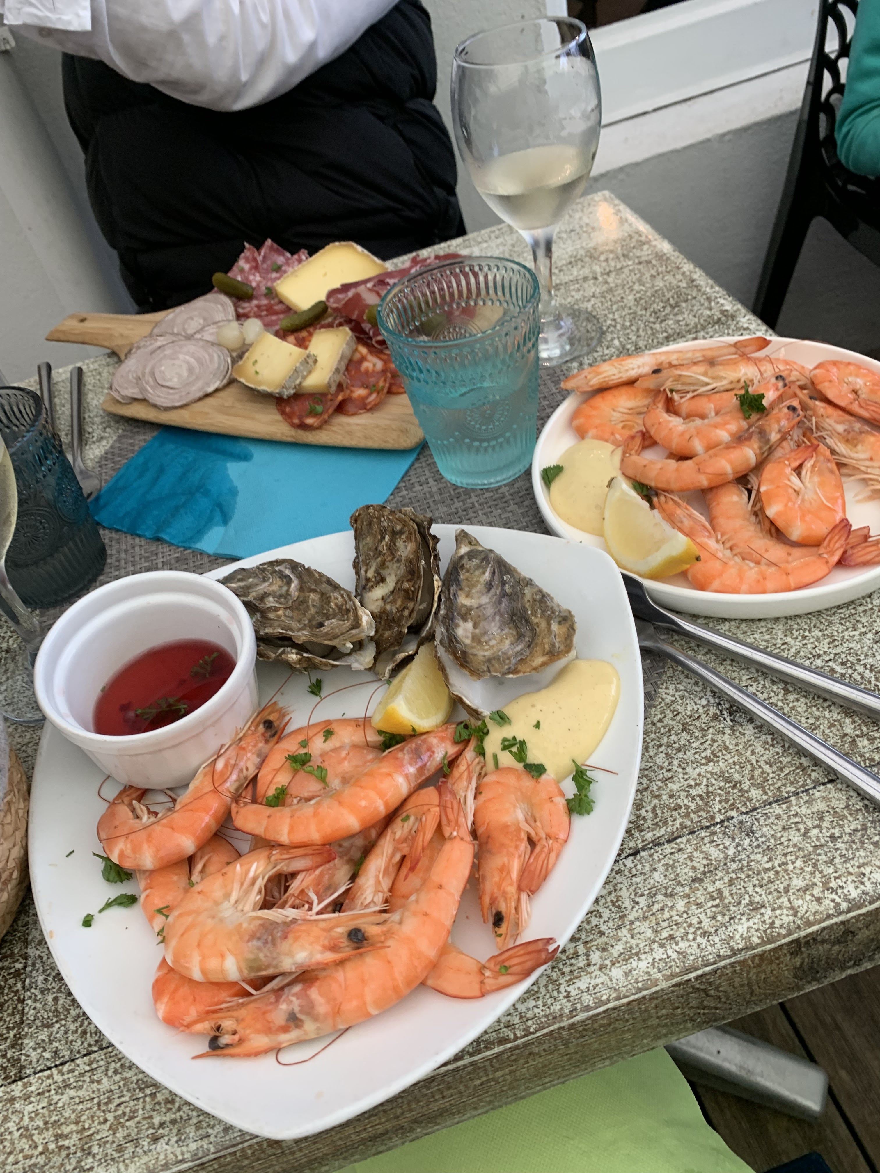 Super déjeuner. Nous avons eu de la chance car nous sommes arrivés tard donc pile lors du second service (restaurant complet quand nous sommes arrivés, je conseille ainsi de réserver). Les huîtres étaient un peu froides, mais très bonnes tout de même, surtout avec le vinaigre d'échalote et les salicornes 👌 les moules frites au curry etaient bien généreuses en crème, délicieuses (j'en ai oublié de prendre la photo). Très attention envers notre chien qui a eu sa petite gamelle perso ♥️