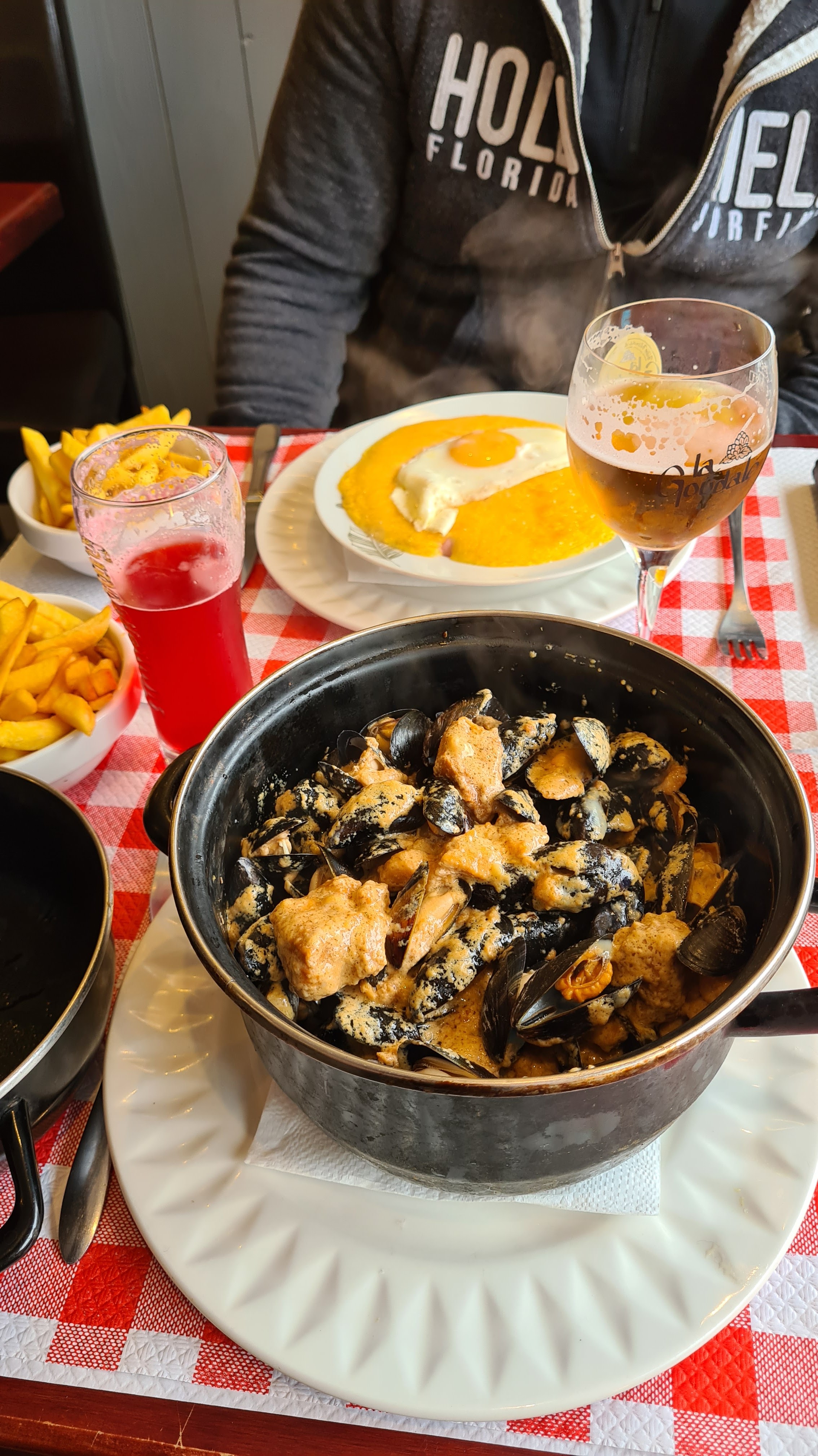 Nous y sommes allés un midi de pluie histoire de se réchauffer avec un bon repas et bien nous avons dû remettre nos manteaux pour manger car il n'y avait pas de chauffage et les plats...nous avons pris des moules qui étaient cuites et recuites, plus aucun goût et caoutchouteuses. Pour ma part j'ai pris celles à la crème et on aurait dit du lait caillé dessus. Bref je ne recommande pas et j'aurais dû lire les avis. C'est dommage avec une localisation comme celle-ci.