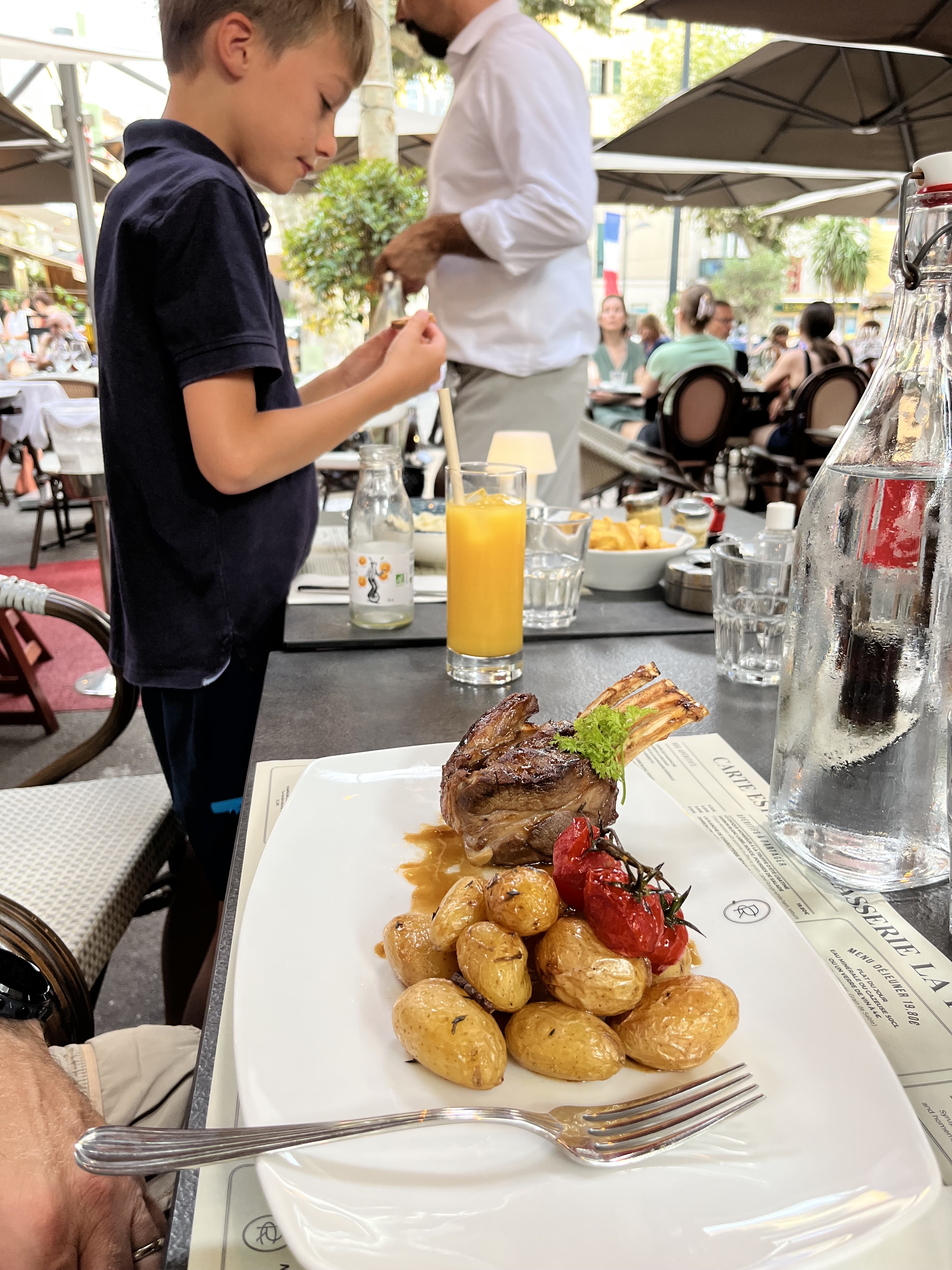 Bravo et merci. Nous avons longtemps hésité avant de nous installer à table, toujours méfiants des restaurants dans les lieux touristiques. La formule plat du jour ,dessert , café et boisson tentait les gars donc nous nous sommes installés. Le service impeccable, le personnel sachant répondre a toutes nos questions. Bref, deux formules succulentes avec une viande tendre a souhait et les desserts au choix présentés sur un plateau. Une tuerie. Et pour moi une VRAIE salade nicoise: mesclun radis celeri fèves anchois thon de qualite olives provencales...... généreuse et ultra fraîche. La meilleure depuis des décennies. Manger pour 60 euros a 3 de cette qualite avec boisson et café rien a redire. A tres bientôt