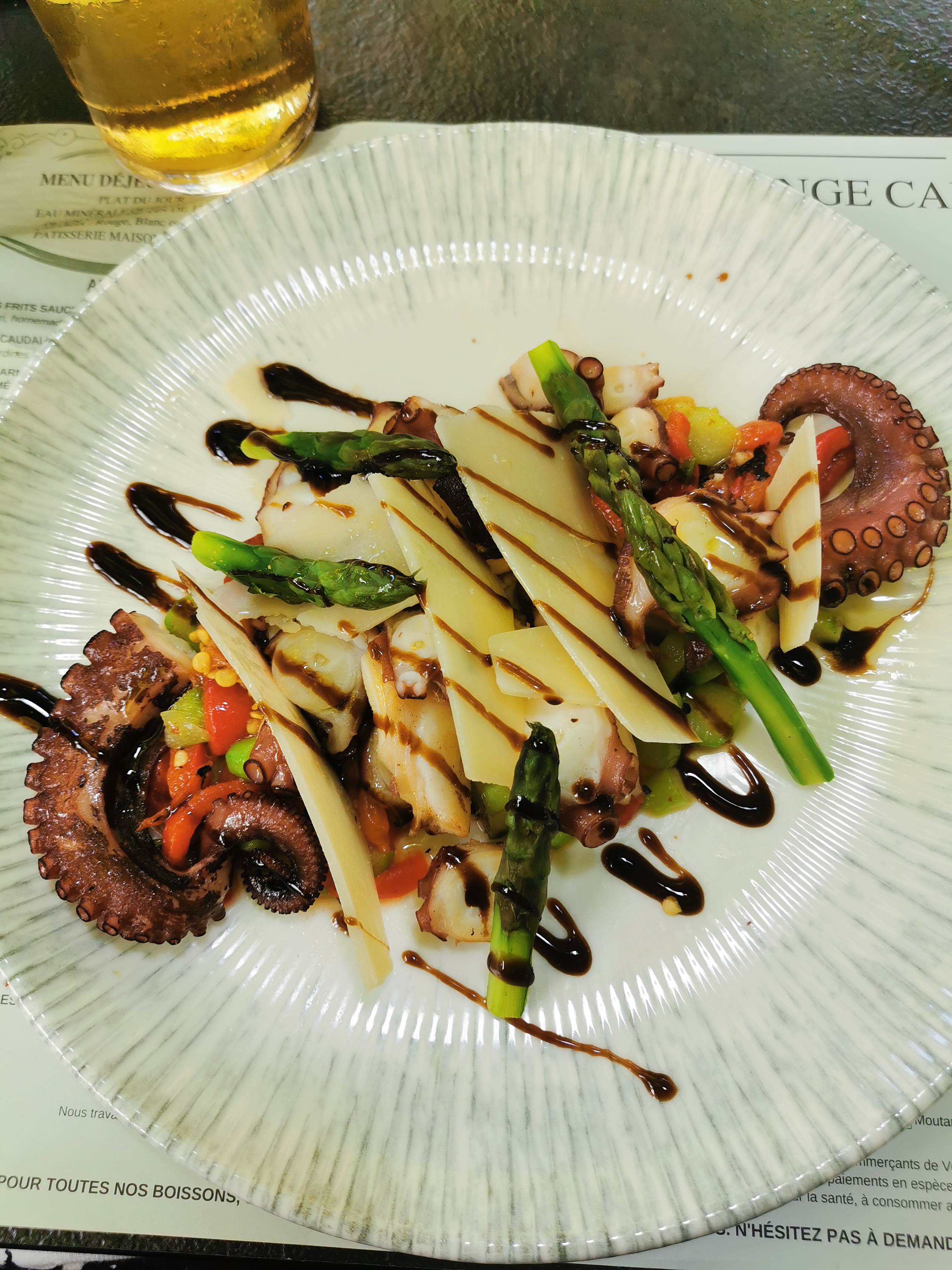 Un Poulpe cuisinée a la perfection ..accompagnée d un gratin dauphinois hors norme ..superbe terrasse..accueil chaleureux avec un service impeccable ... Merci