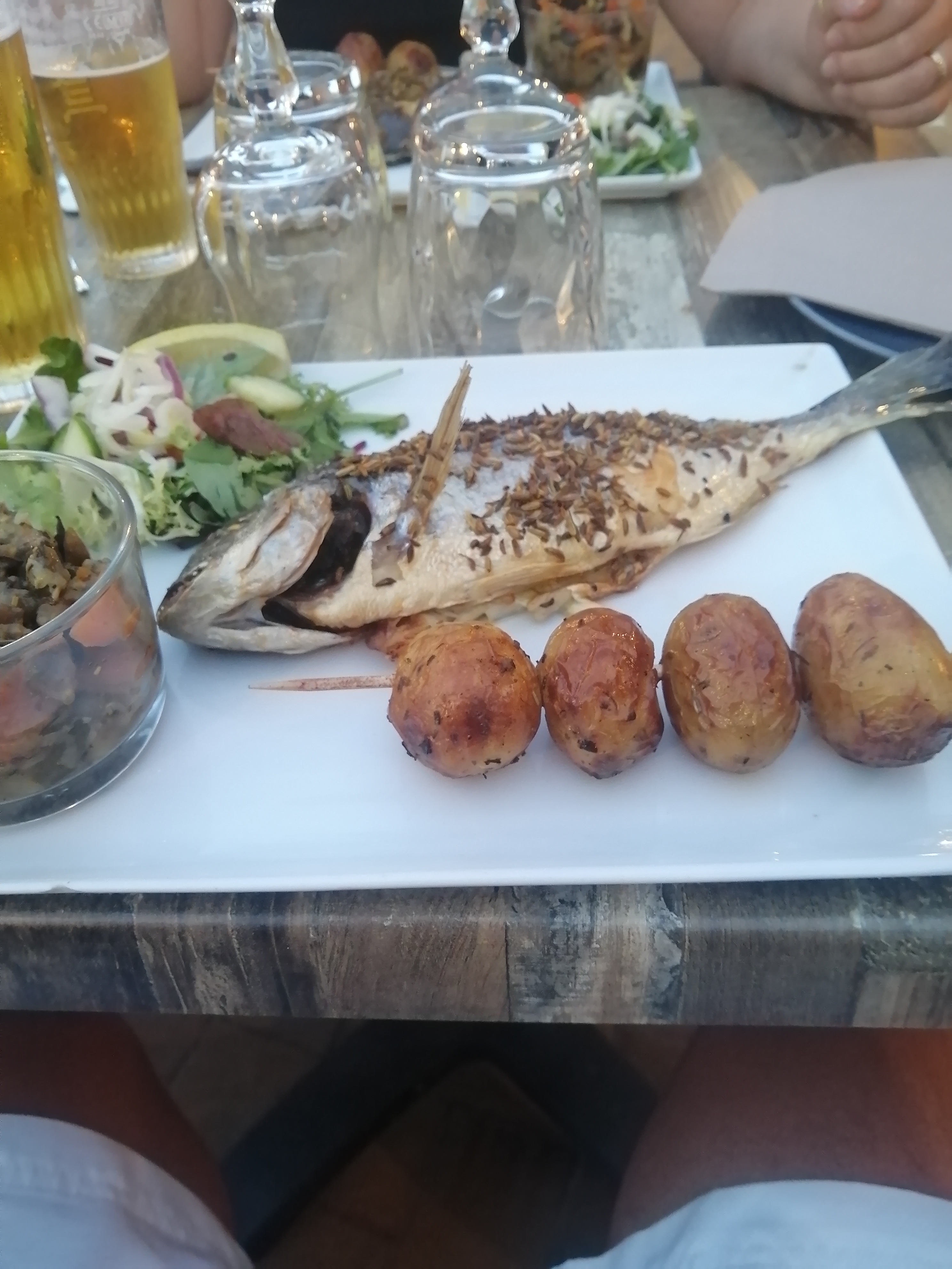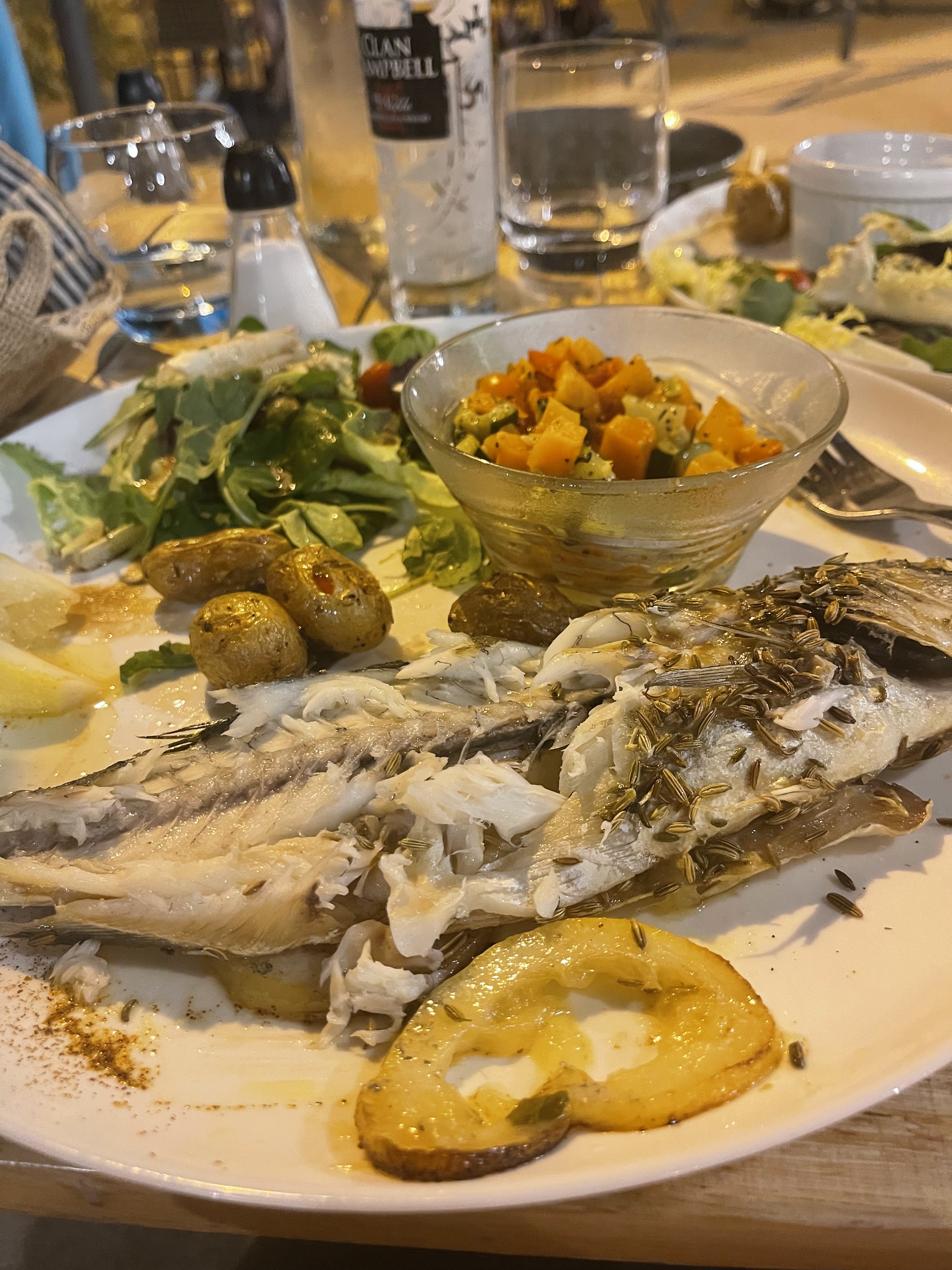 Acceuil chaleureux, marmite de poissons... excellente... jaret d'agneau hmmm ca font dans la bouche... un bon moment face a la mer 😉