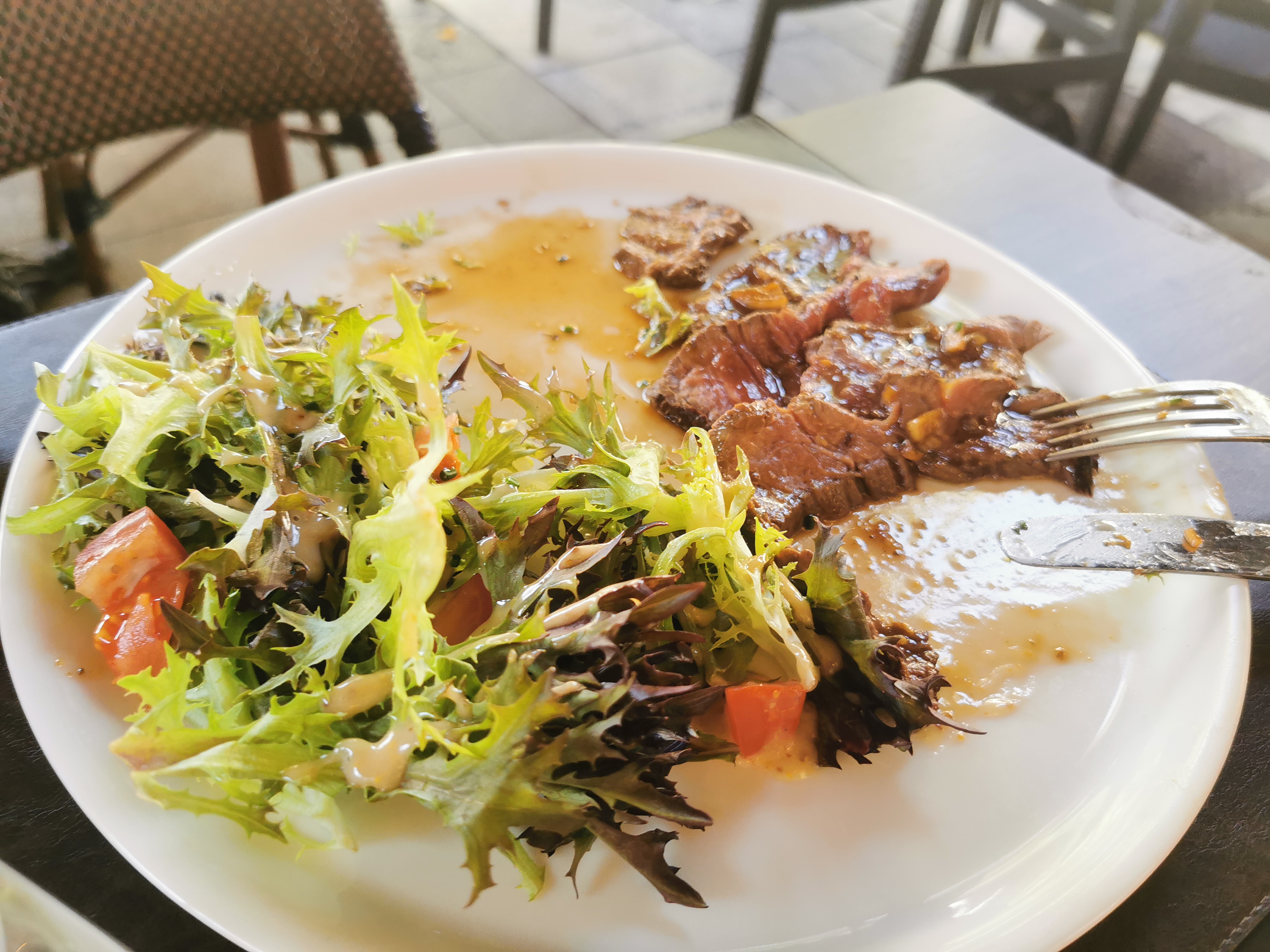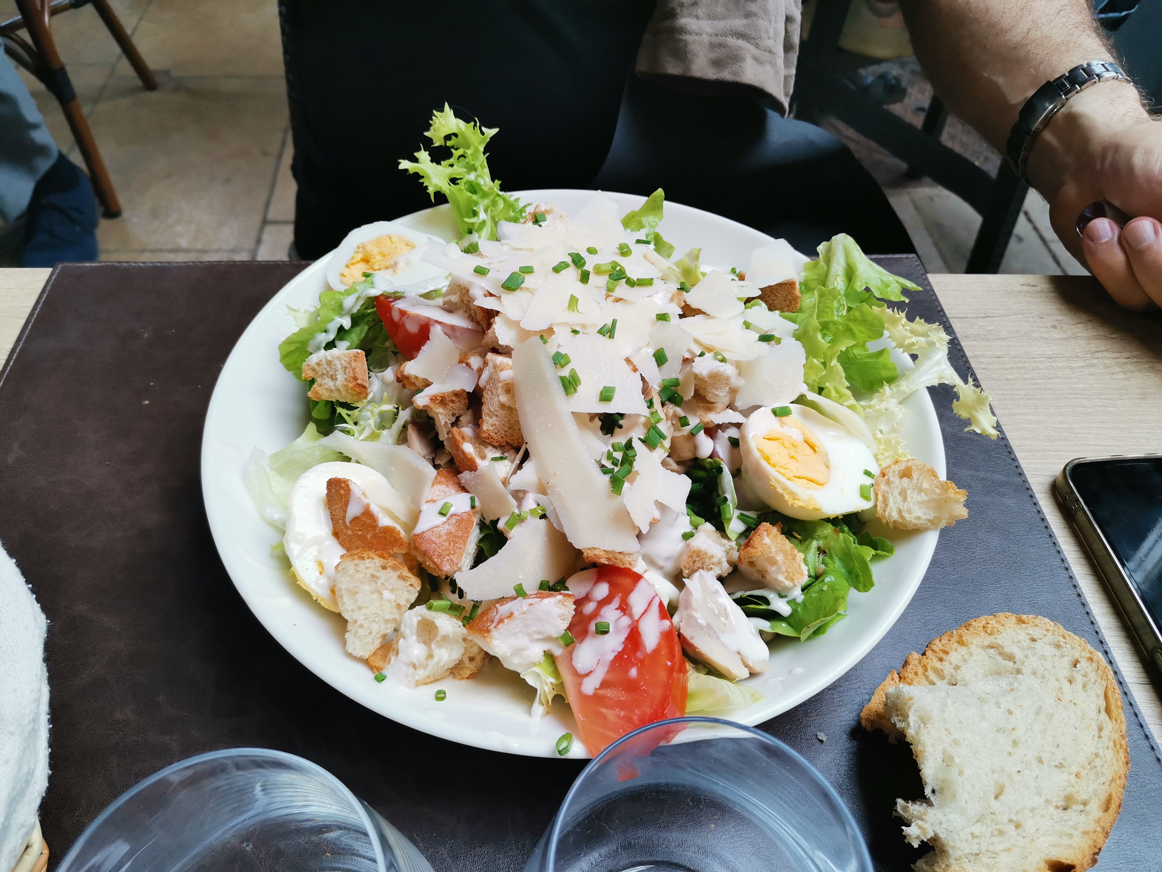 Il y avait beaucoup de monde, faut pas être pressée et même temps ce sont les vacances. Nous avons pris des grandes salades bourguignonnes. Petis appetits s'abstenir car très copieux... 🤗