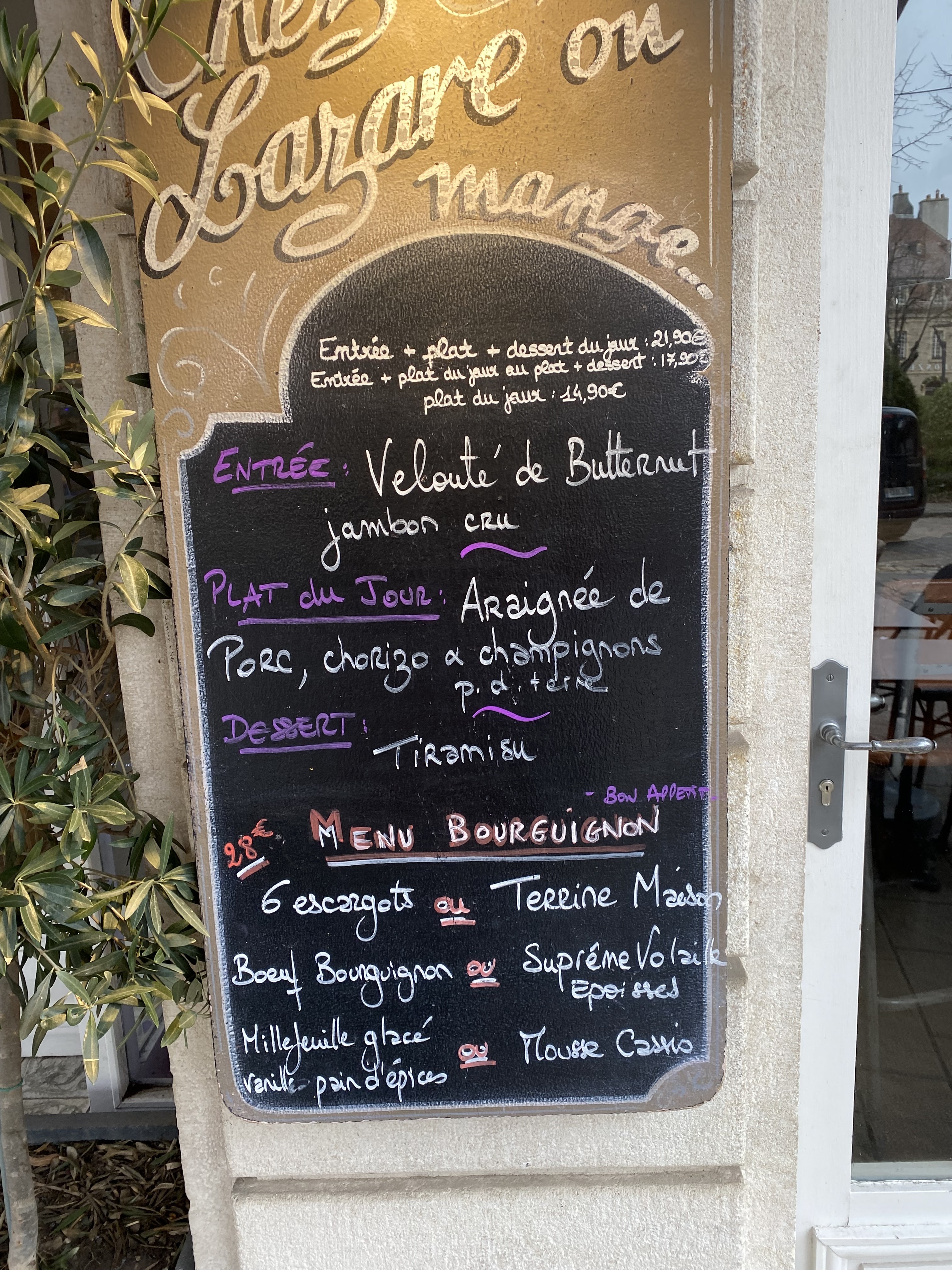 Que dire! D'abord c'est une rencontre avec un serveur extra (brun et frisé) qui est très enthousiaste et a tjrs qqs blague dans sa manche! Le top! Ça met dans l'ambiance pour bien manger. Il a été d'ailleurs de très bon conseil tant en vin qu'en plats! Bœuf Bourgogne délicieux. Accompagné d'un côte de Beaune blanc pour madame et d'un côte de nuit rouge pour moi. Desserts aussi excellents. L'ambiance très feutrée de l'arrière salle #chalet était vraiment un plus romantique ! Prix très très raisonnable. Que du bonheur en plein cœur de Beaune ! Je recommande les yeux fermés. Ps; c'était une 1ère découvert de cette superbe ville.