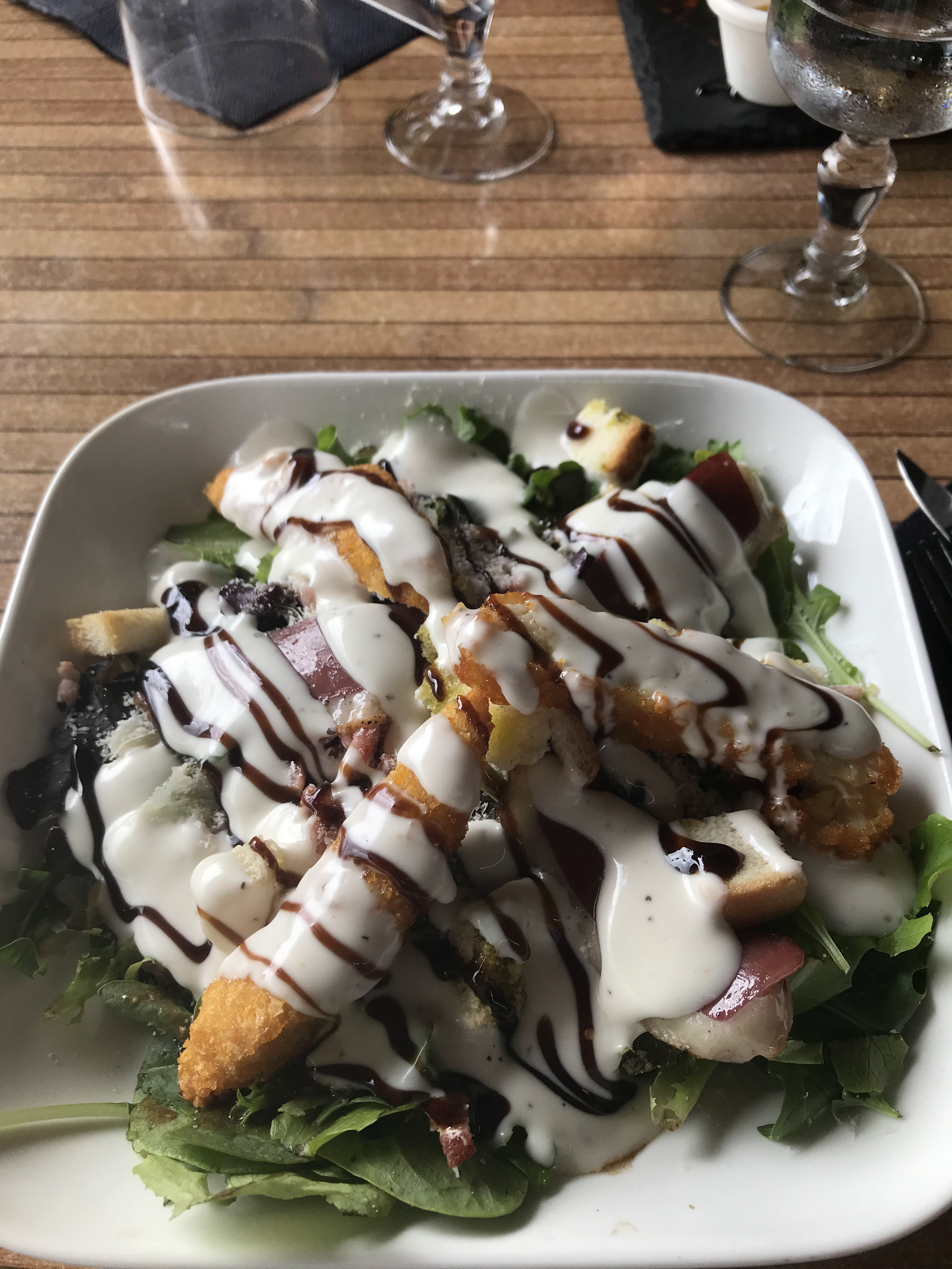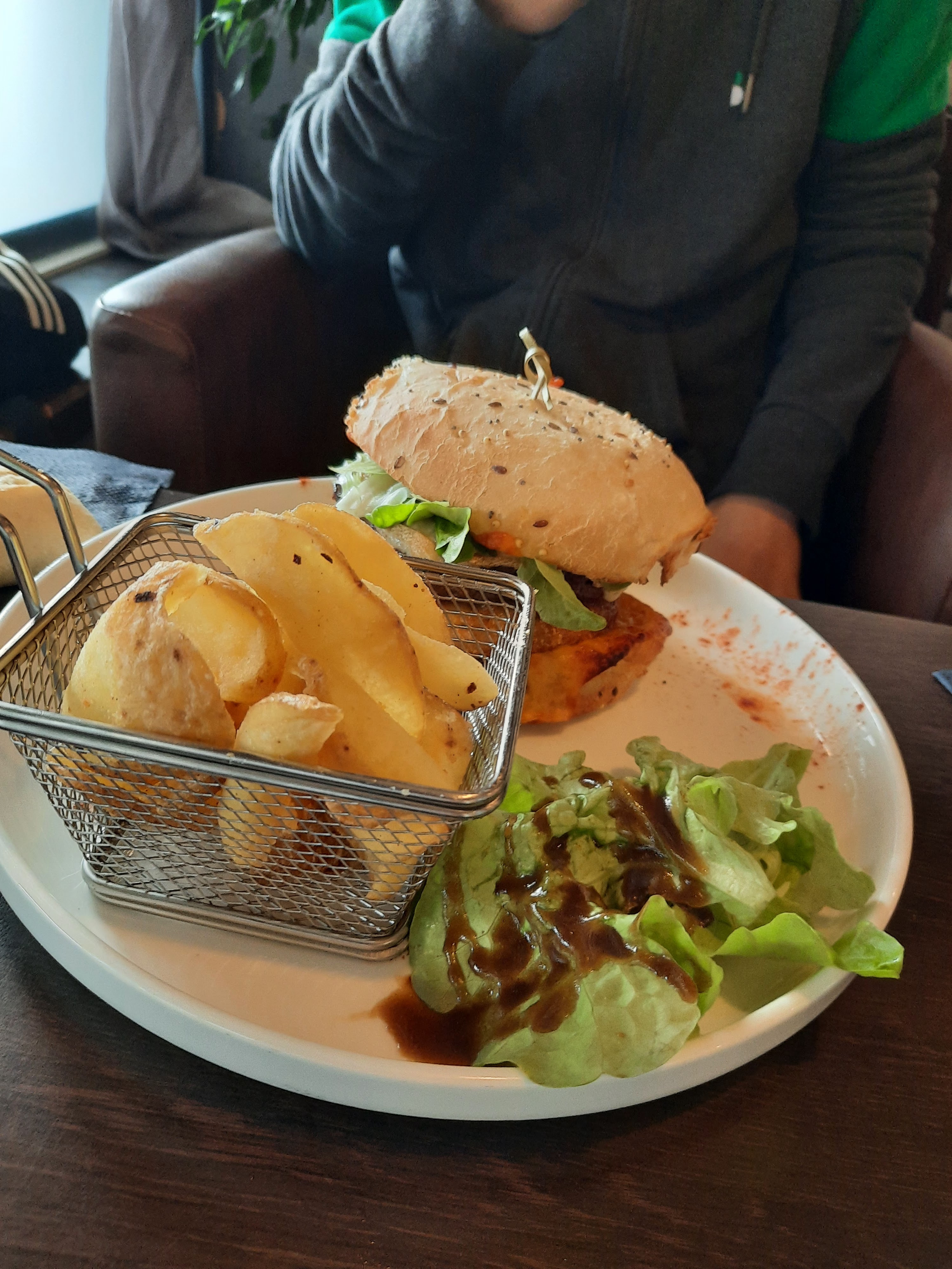 Repas bon un peut trop de chichis dans les assiettes a mon goût quantité légumes,frite,.... a revoir pour les gros mangeurs si non serveurs sympa .