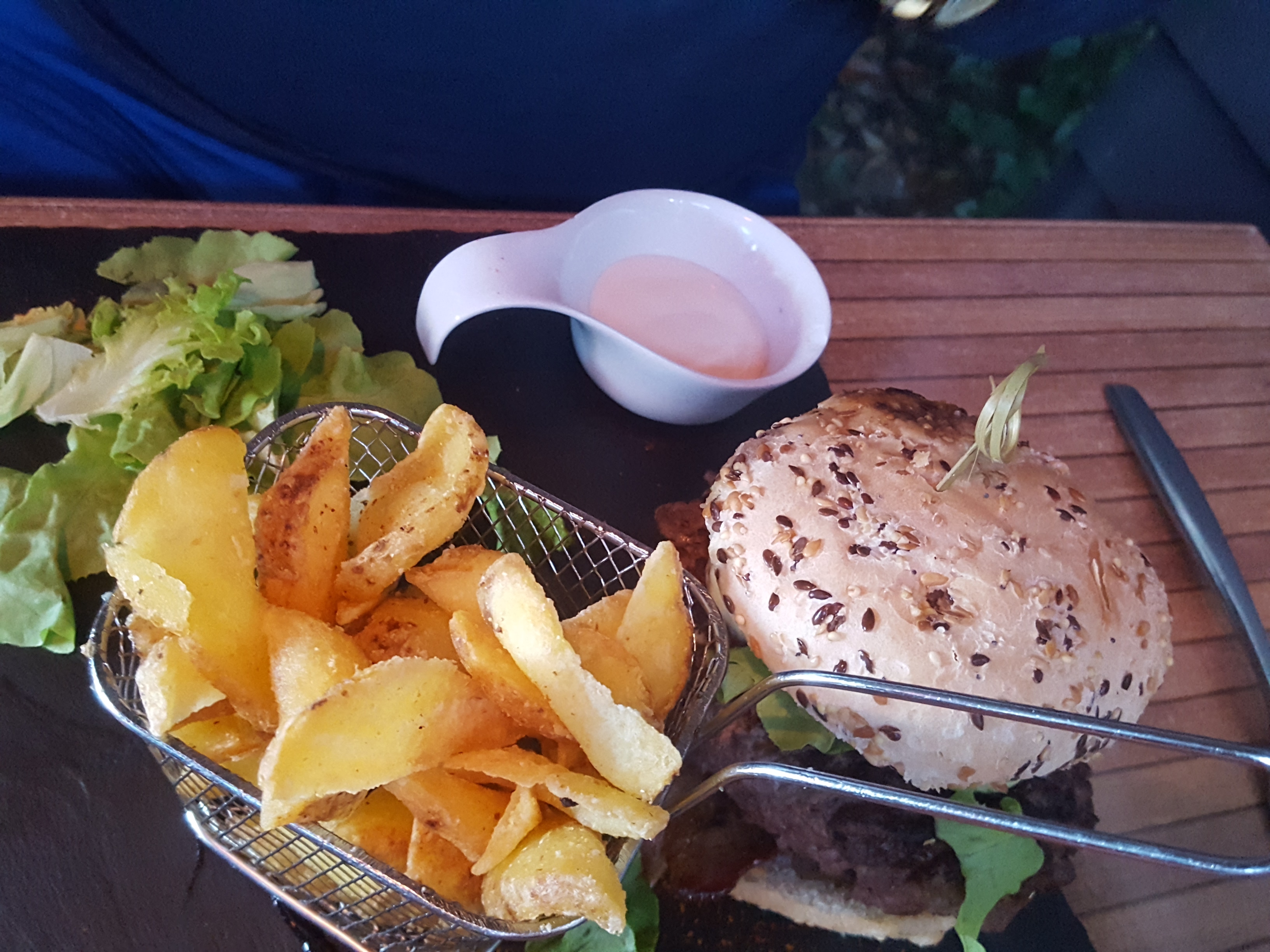 Tu sais que celui qui as cuisiné ce n’est pas juste un mec qui fais bien la cuisine quand rien que l’entrée c’est un plat original, bien présenté, fin et délicieux. Ce n’est pas intuitif de manger un burger savoyard au bord de la mer bretonne en haute saison mais qu’est-ce que ça vaut le coup ! Le steack de thon et sa persillade son d’une finesse invraisemblable. Bravo au chef ! Et un grand merci à la team.