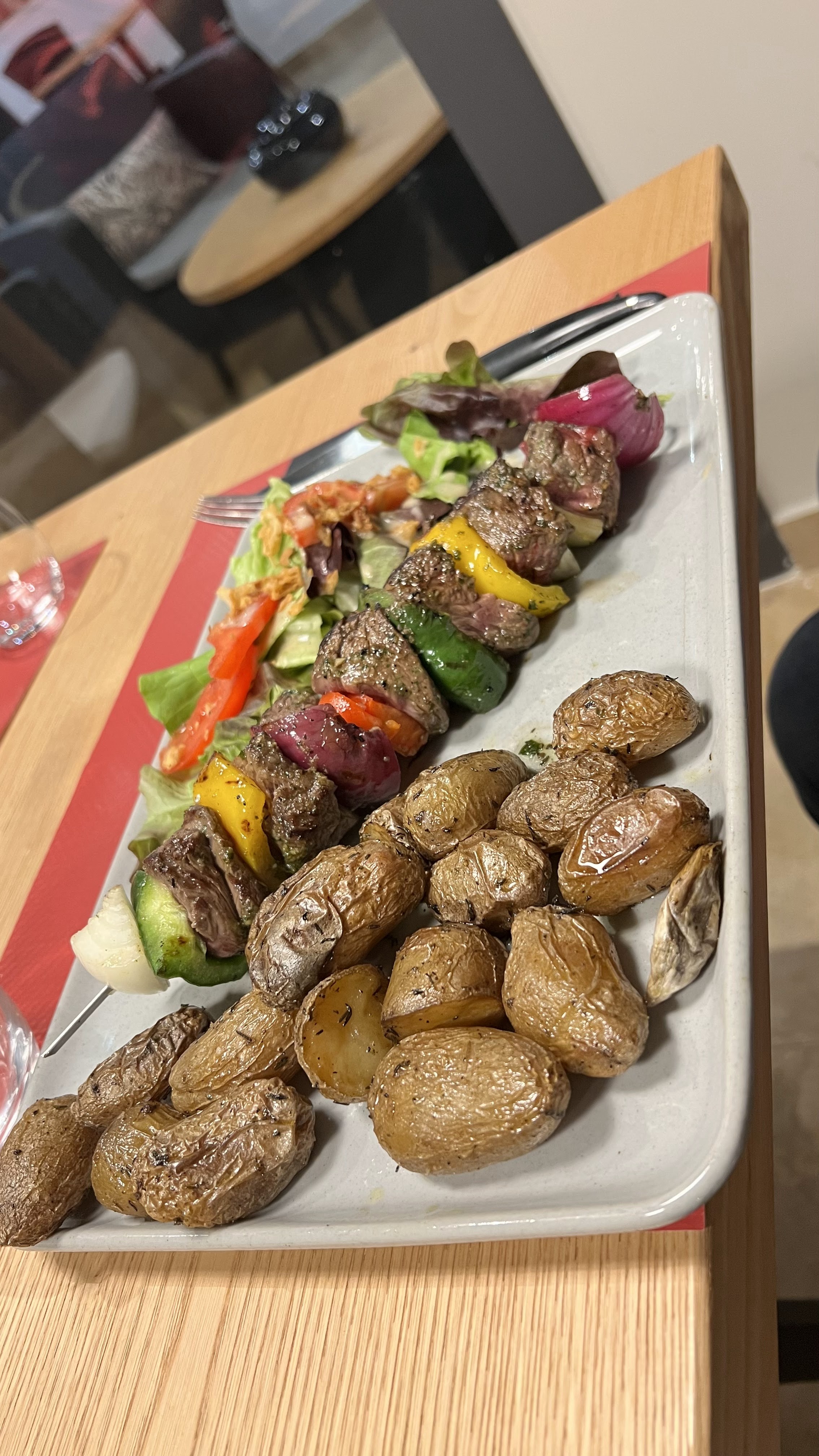 Dès l’entrée, nous avons été accueilli avec le sourire, suivi d’un menu approprié (agneau de lait) pour un week-end de Pâques remarquablement délicieux et préparé avec soin. Le service était agréable et professionnel avec beaucoup d’attention (pain, eau de table pour éventuellement prendre un traitement, sans oublier quelques chips en attendant le repas, qui d’ailleurs nous a été servi très justement) Aussi, ne prenant que rarement le dessert, je me suis tenté à le goûter (maison bien sûr) et je n’ai pas été déçu. Je recommande donc cette brasserie.