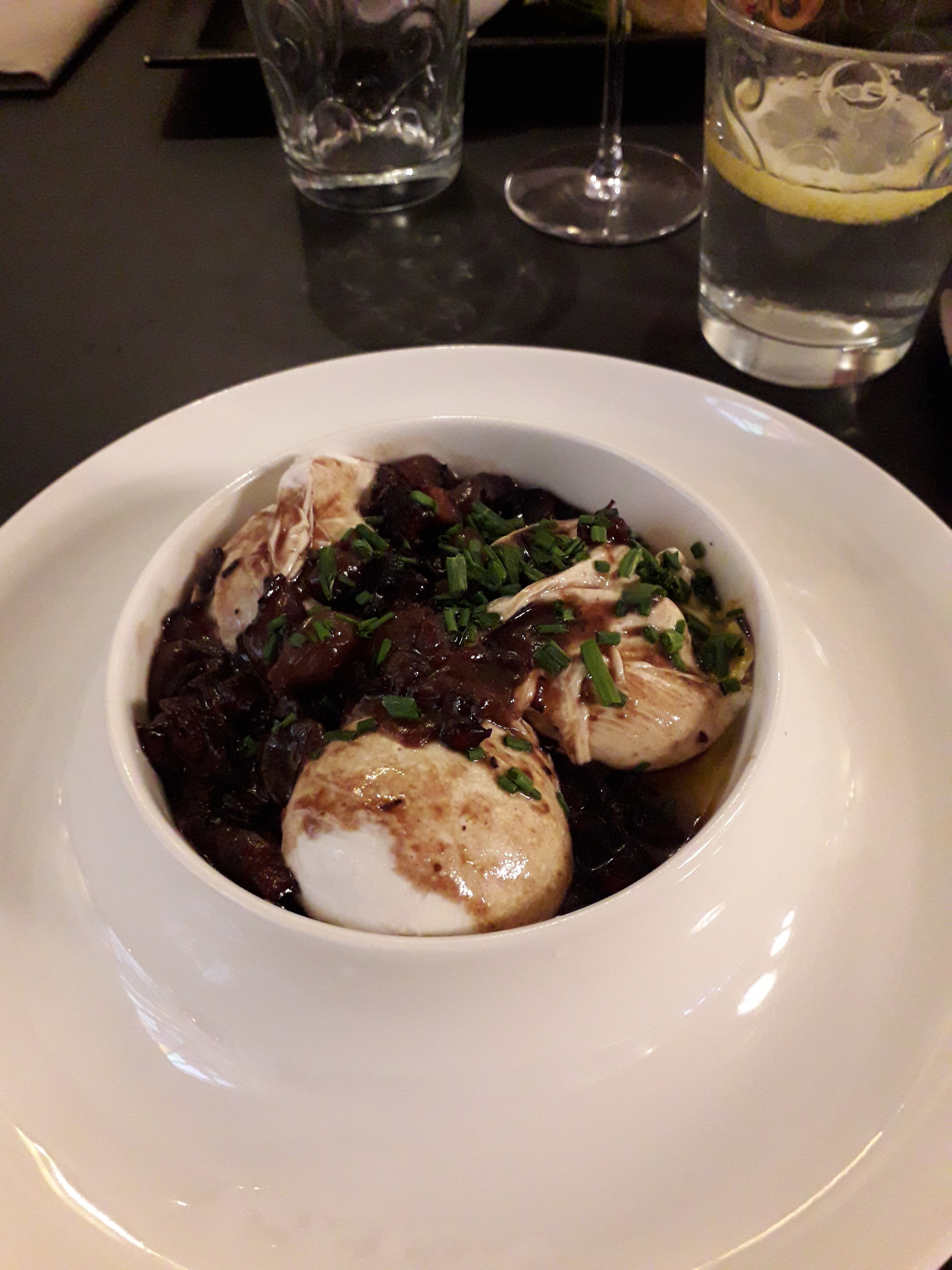 Personnel jeune et dynamique. Service rapide. L'entrée en oeufs en meurette au vin rouge un délice et un régal.