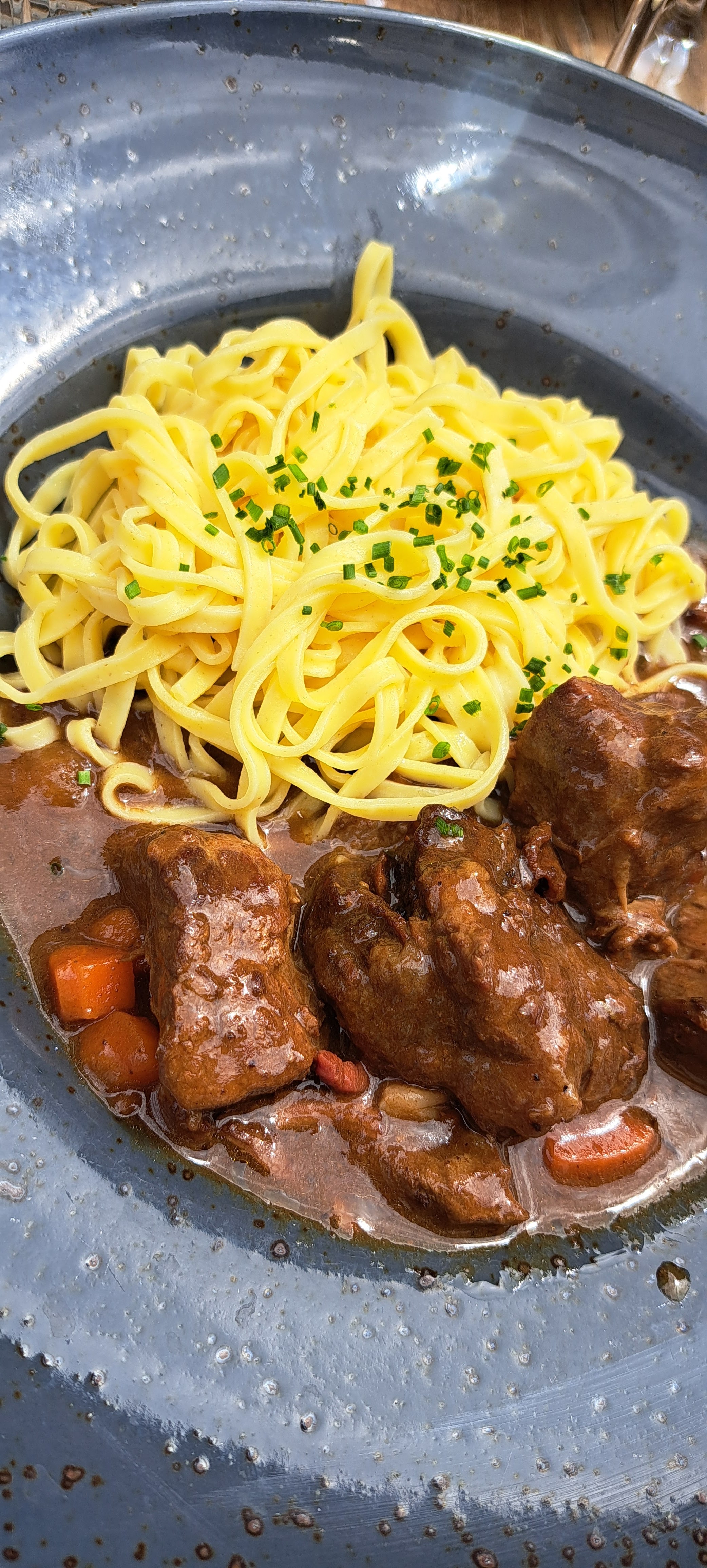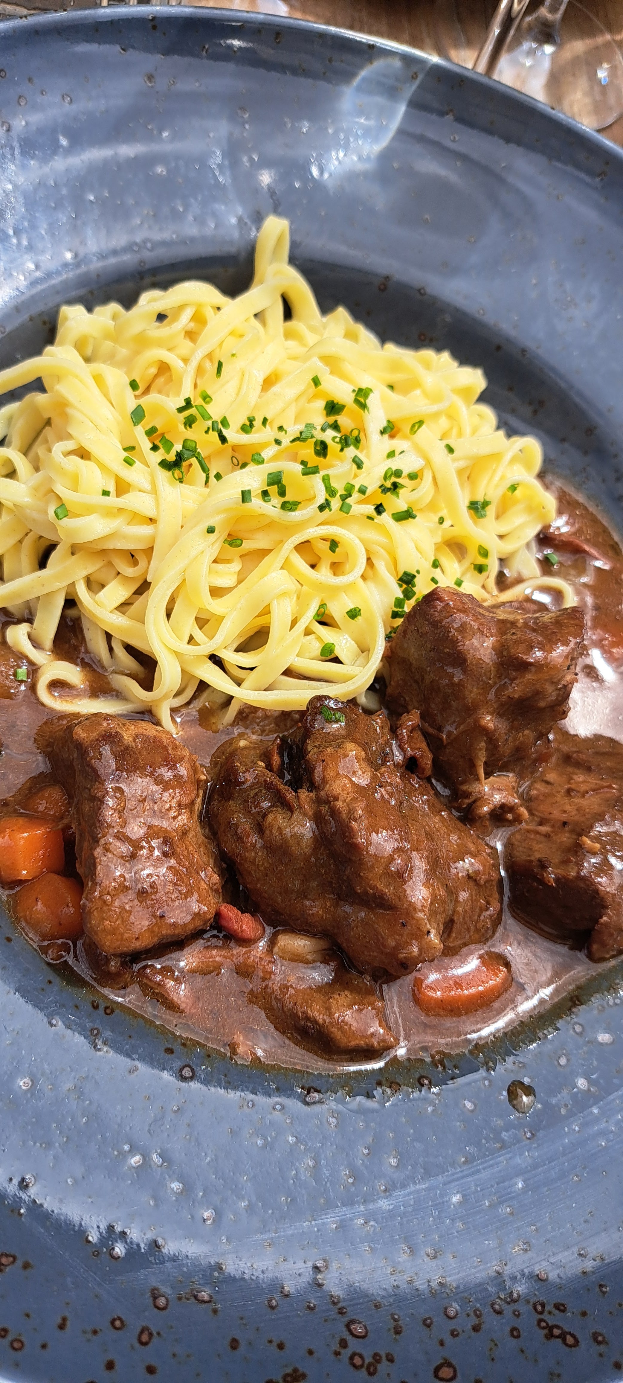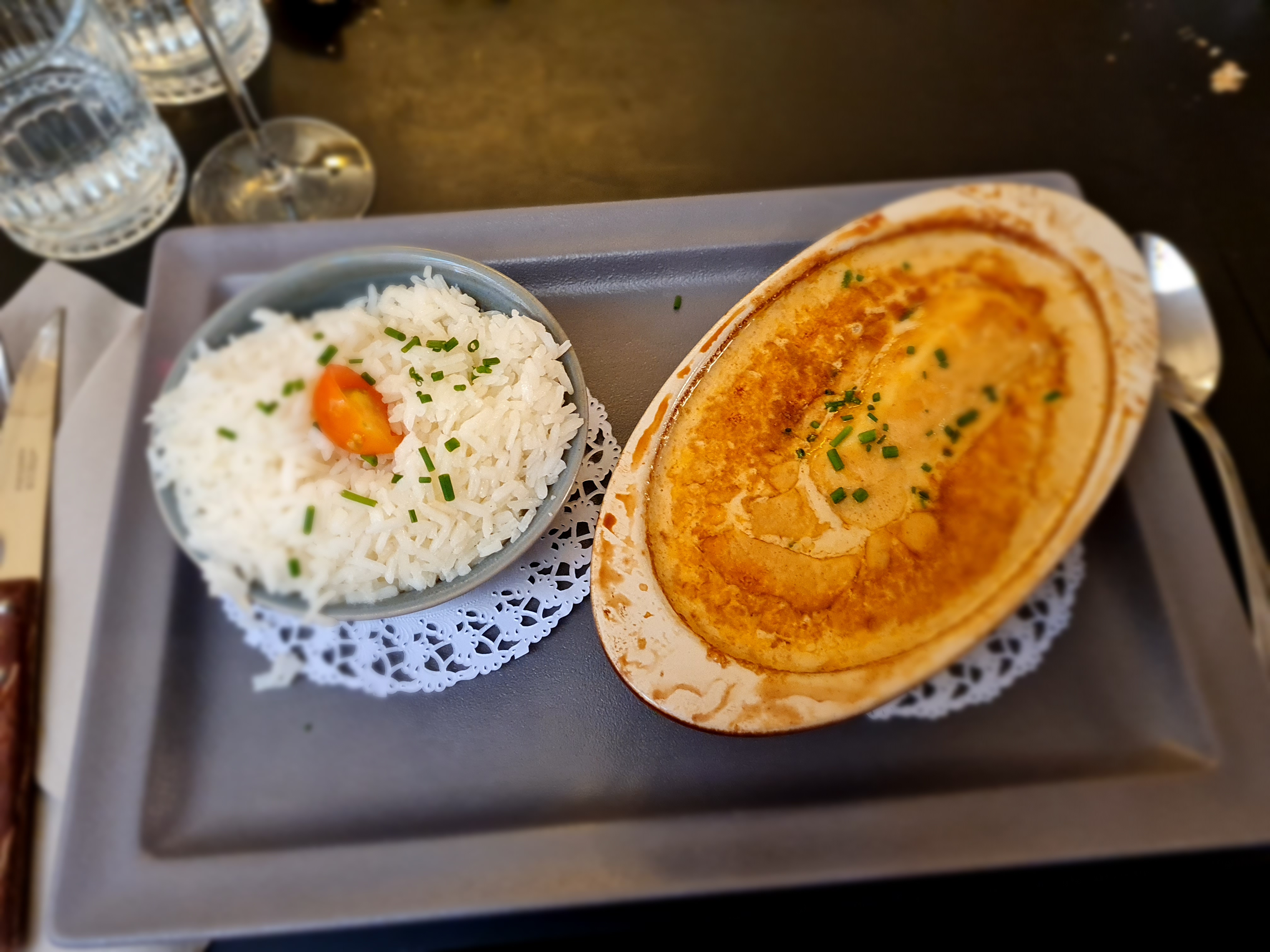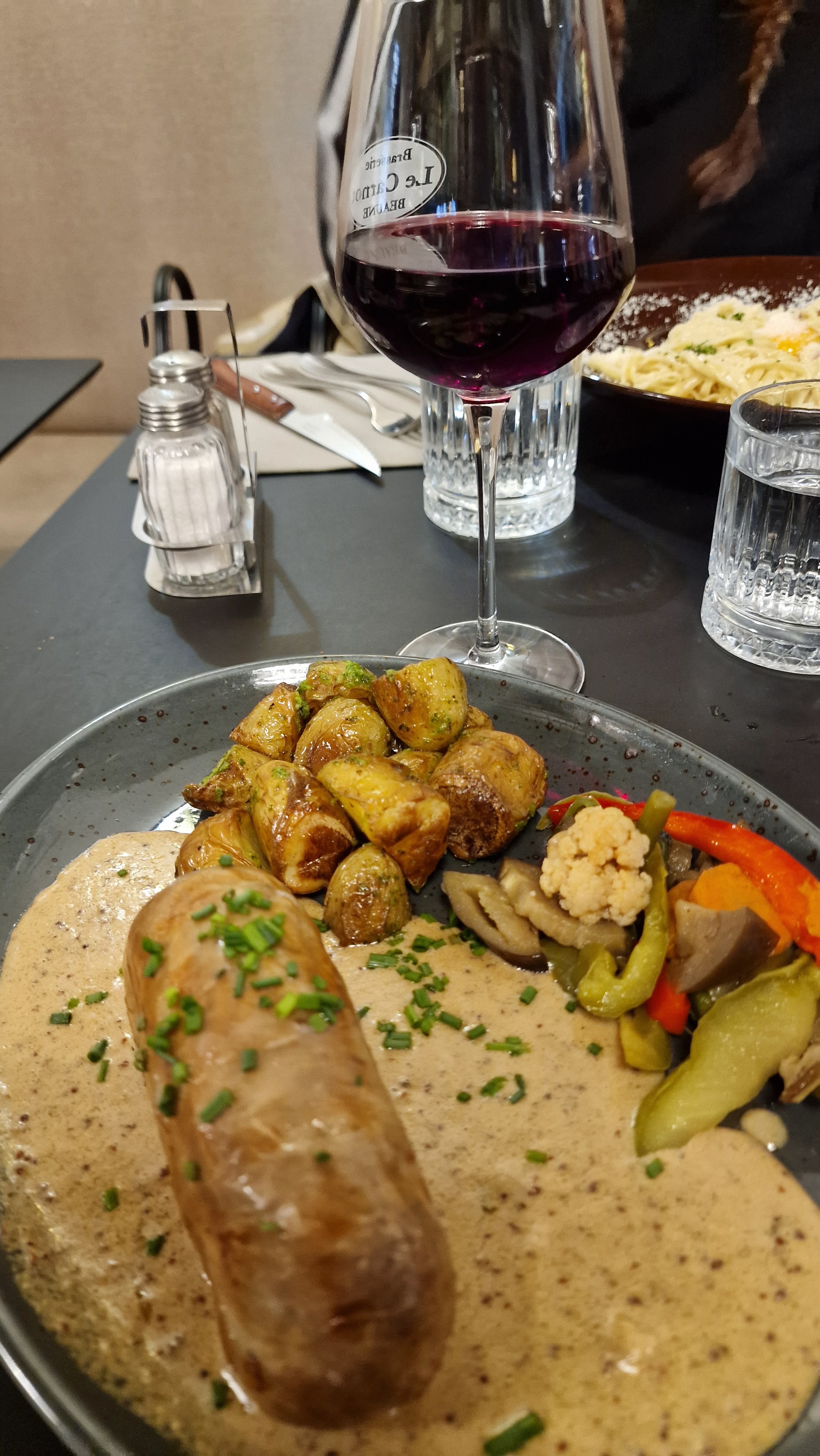 Nous y sommes actuellement, nous attendons nos desserts depuis 30’... notre serveur est sympa : il gère même en étant sous la vague, peut-être à cause d’un autre serveur qui « erre » dans le restaurant en ayant oublié d’être aimable avec la clientèle, tandis qu’un petit jeune avec une boucle d’oreille très joyeux vient de nous servir avec un grand sourire ! En fait c’est mitigé car il y a du bon et du mauvais, les plats sont copieux et bons à un tarif raisonnable si l’on reste dans le menu du jour, à la carte cela parait un peu excessif pour une brasserie hors d’une grande métropole ! Chacun y trouvera son plaisir !