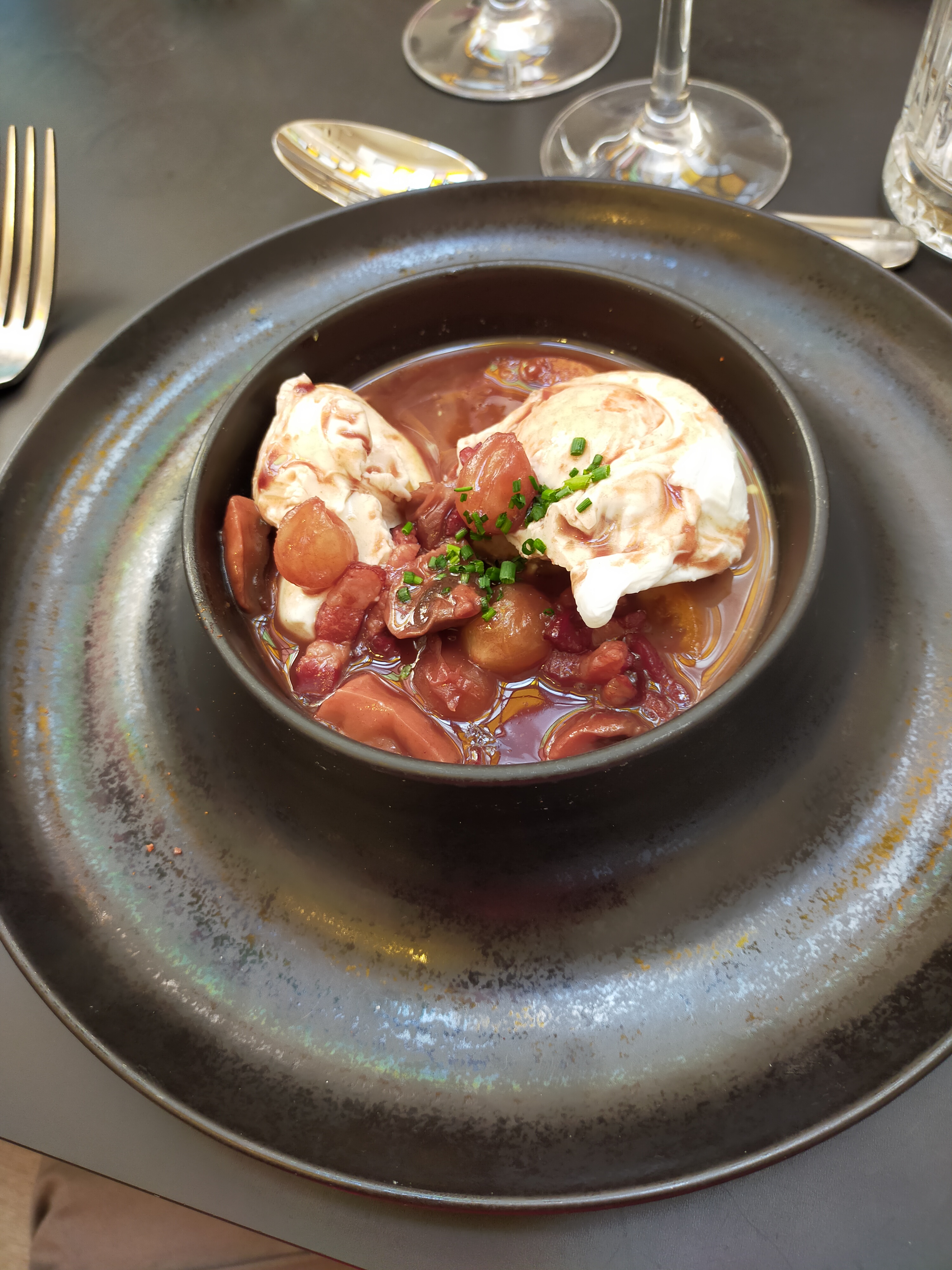 De passage à Beaune, arrêt pour le déjeuner en terrasse. Serveuses très sympathiques, des œufs meurettes à tomber ! Que des bons souvenirs.