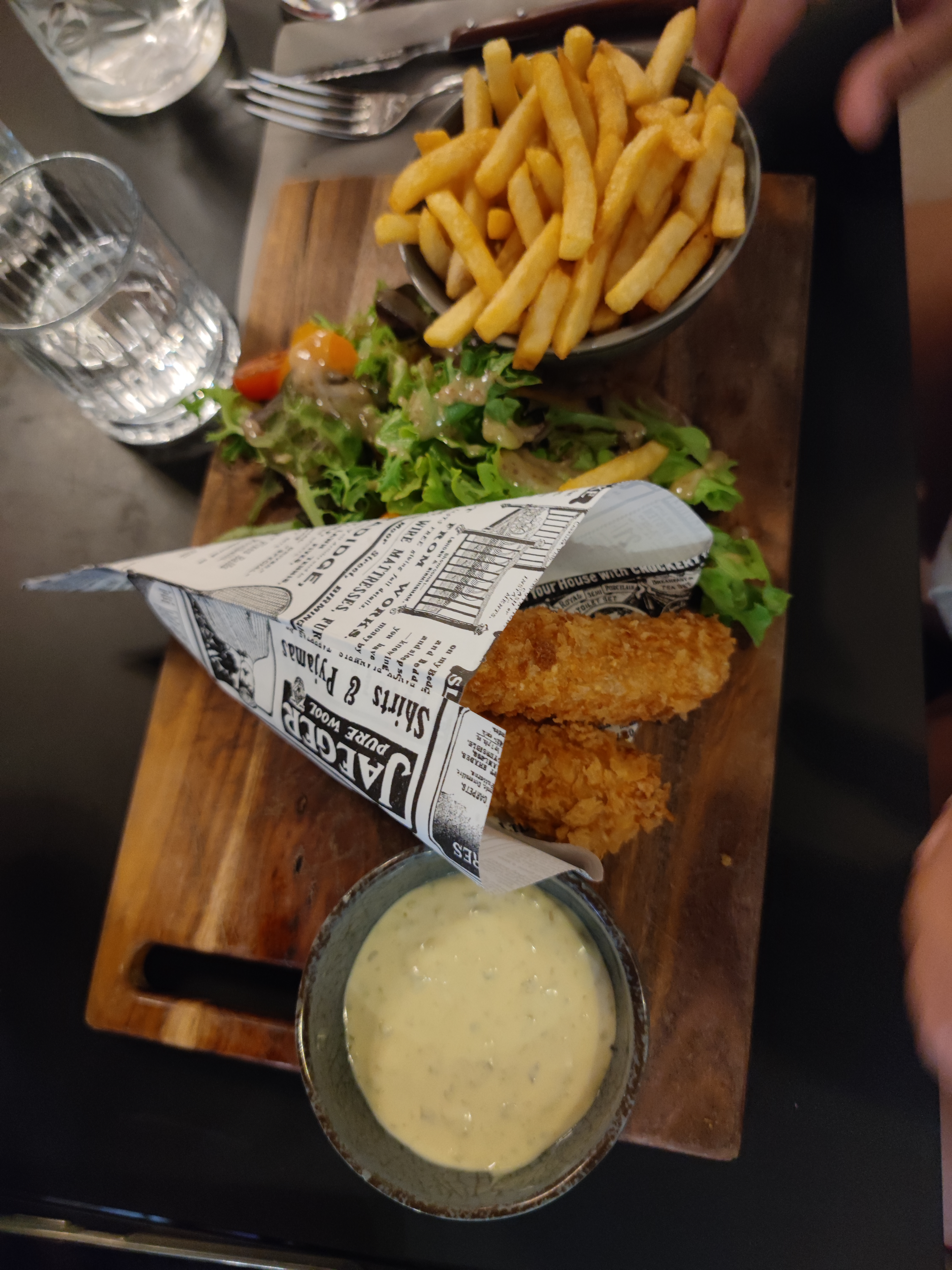 Le restaurant présente un intérieur confortable mais spacieux et un design et des caractéristiques intéressantes. Le service était efficace et très arrangeant. La nourriture (pour adultes) était délicieuse et parmi les meilleures que nous ayons eues, mais elle était vraiment décevante en raison de la taille des portions assez maigres ; un peu de purée de pomme de terre dans le bœuf bourguignon était décevant. Quant au menu bébé, il est horriblement cher, d'autant plus que le dessert n'est qu'une glace en paquet (malheureusement pas faite maison). Nous nous sommes sentis arnaqués - plus de 30 e pour deux enfants, c'est hors de prix pour une nourriture pour enfants relativement standard (burger, fish and chips). C'est un bon endroit et il a le potentiel d'être formidable. Cependant, il semble y avoir de meilleures options ailleurs qui offrent un meilleur rapport qualité-prix et ne sont qu'à quelques pas.