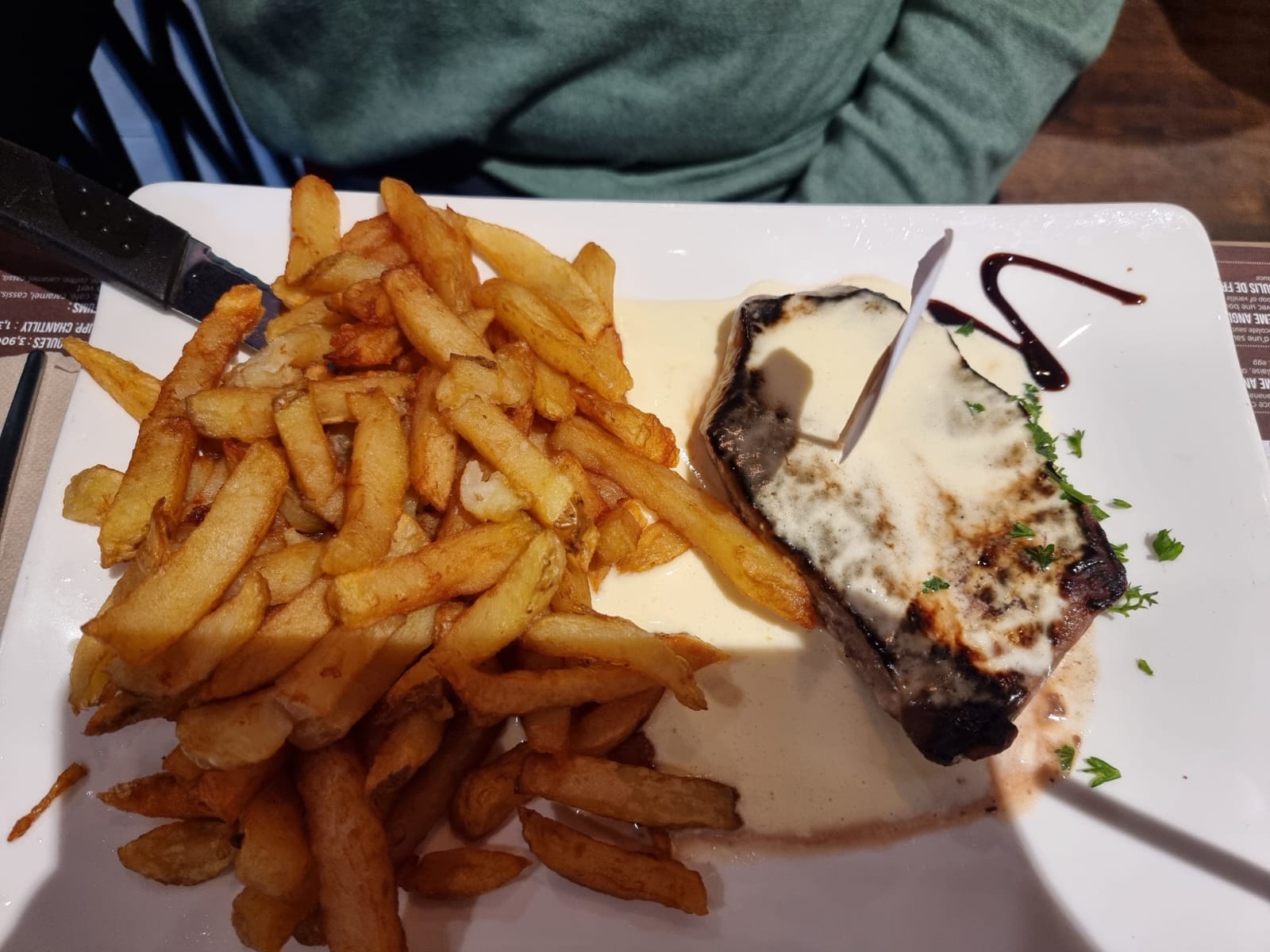 Bon accueil, serveurs gentil, frites et sauce ok. La cuisson de la viande était bonne mais impossible de finir mon assiette la viande avait un goût de brûlé... serveur prévenu mais rien de fait. Je ne reviendrai pas.