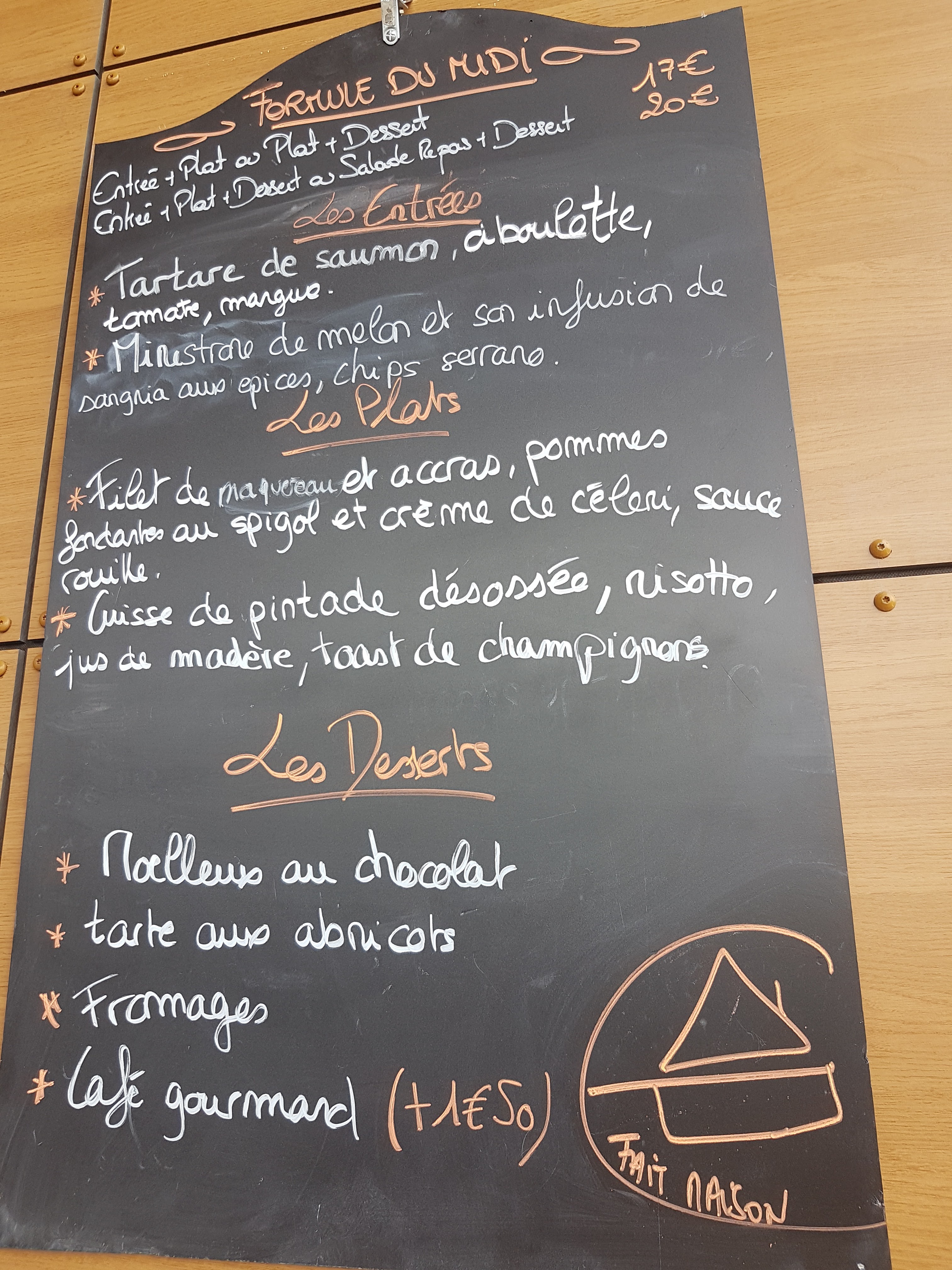 Allez y les yeux fermés !! Une formule entrée plat dessert qui change tous les jours ..et fait 🏠 de quoi regaler nos papilles !! Et le plaisir de se faire servir avec le sourire 😊👍🏻