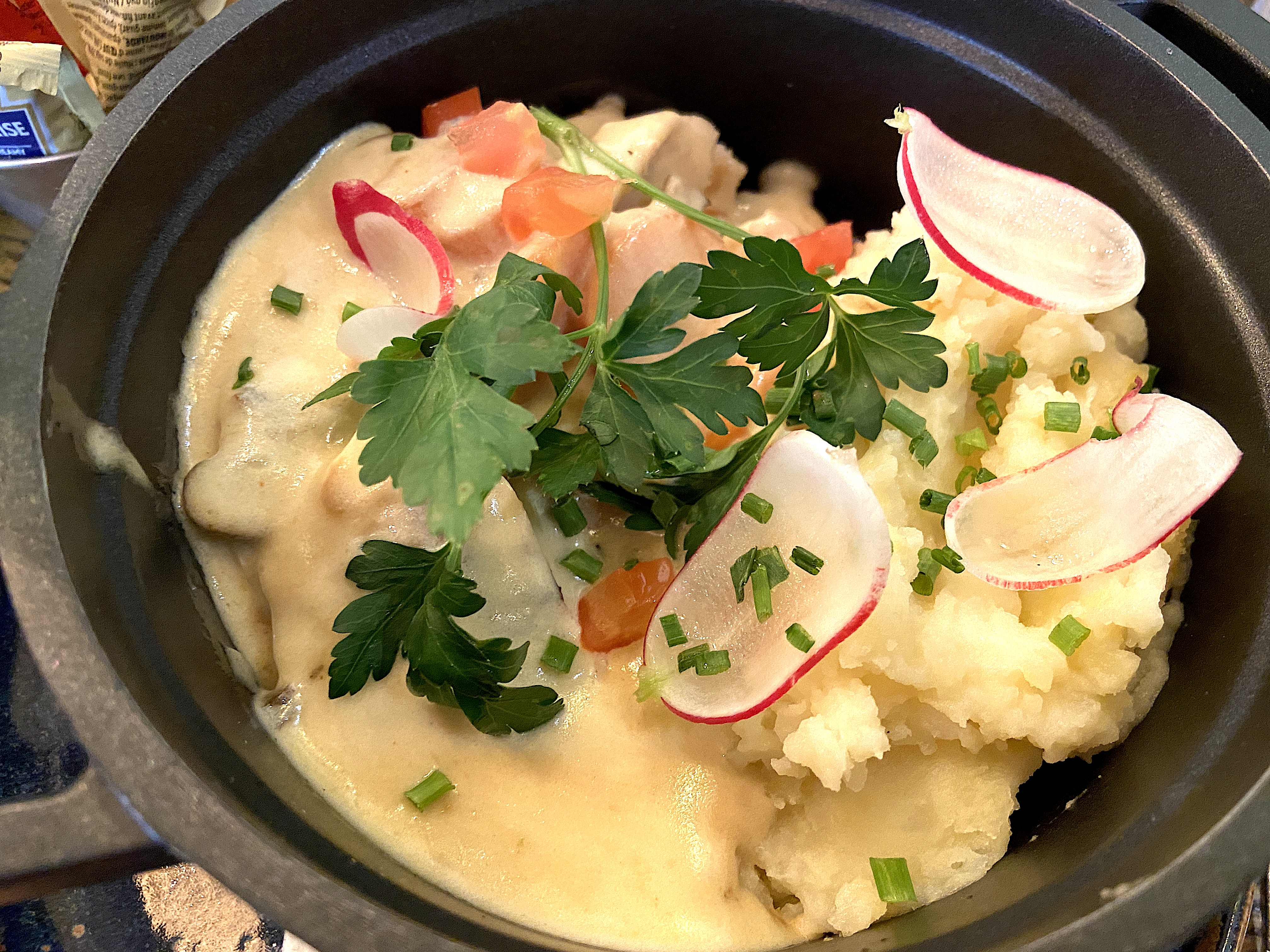 Bien placé mais pas top. Nous testons ce restaurant un midi en famille. Nous prenons des hamburgers frites et des cocottes de poulet. Quel point commun ? La pomme de terre. Je ne sais pas pourquoi, un goût et une saveur désagréables tant dans la purée que dans les frites. Que s'est-il passé ? Il faut absolument changer de variété de patates. C'est dommage...