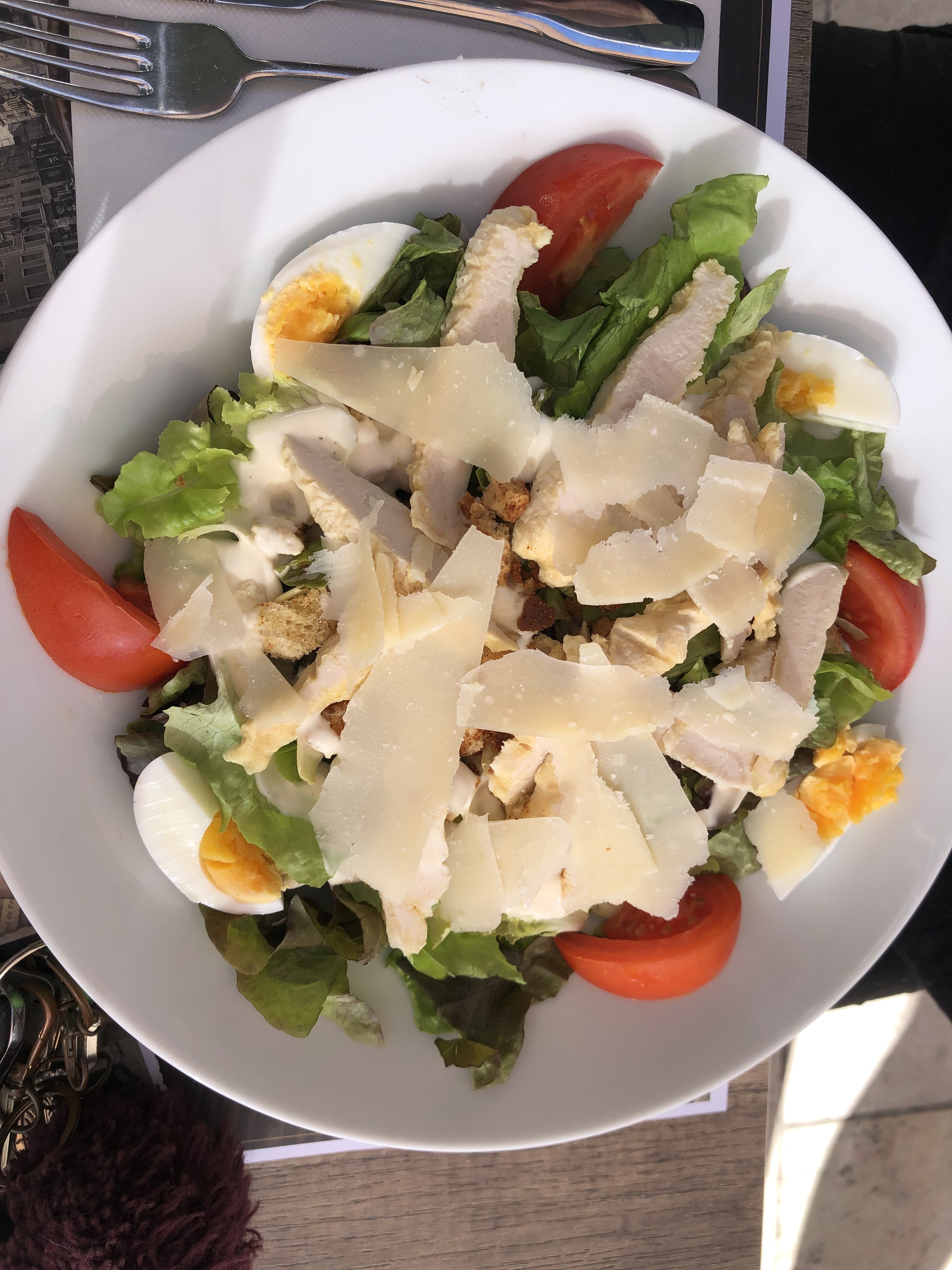 Salade césar excellente en profitant de la terrasse ensoleillée, superbe. Service parfait malgré le monde, je recommande!