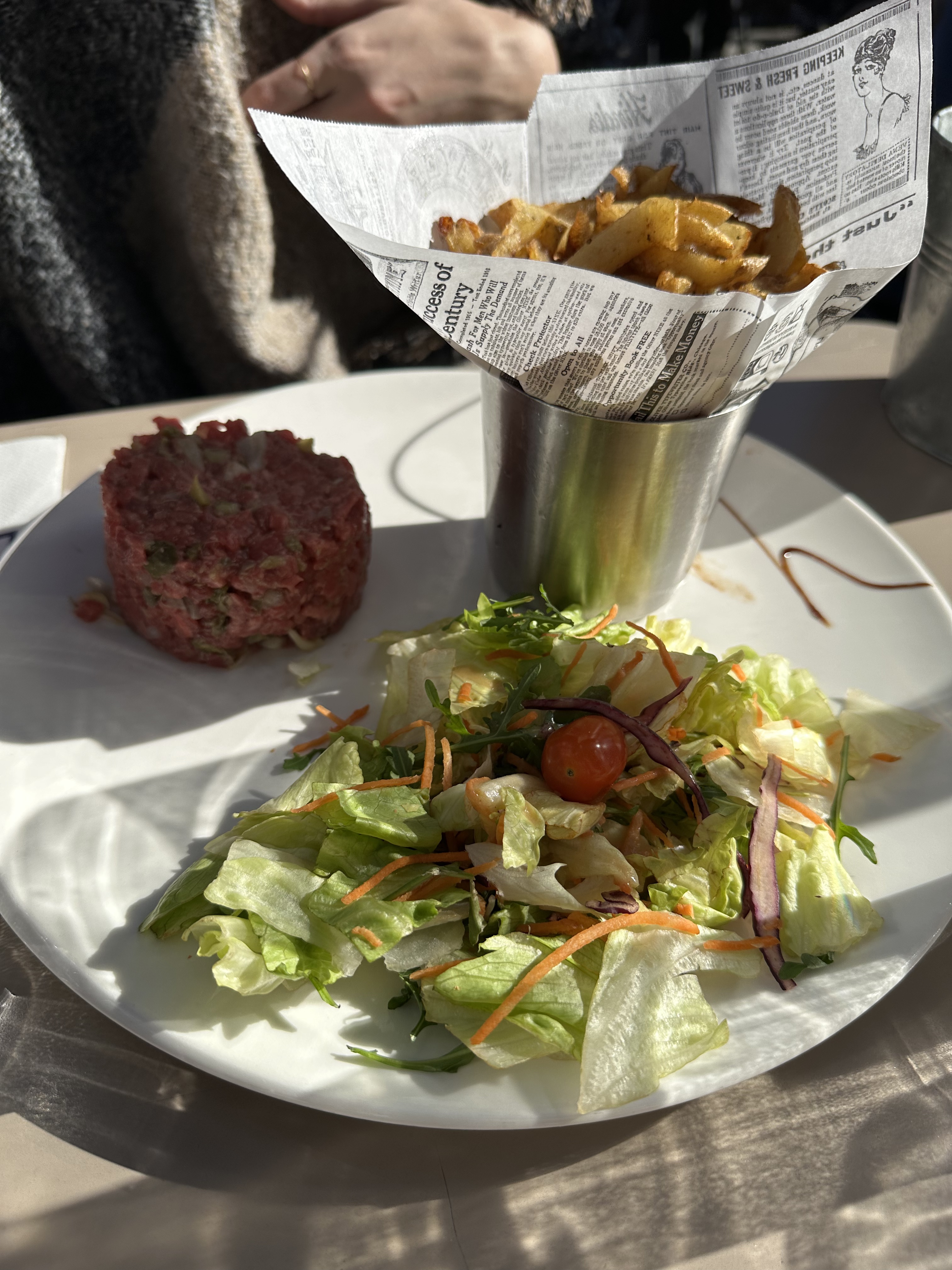 On a bien mangé. Salade auvergnate juste comme il faut. Fish and chips excellent .