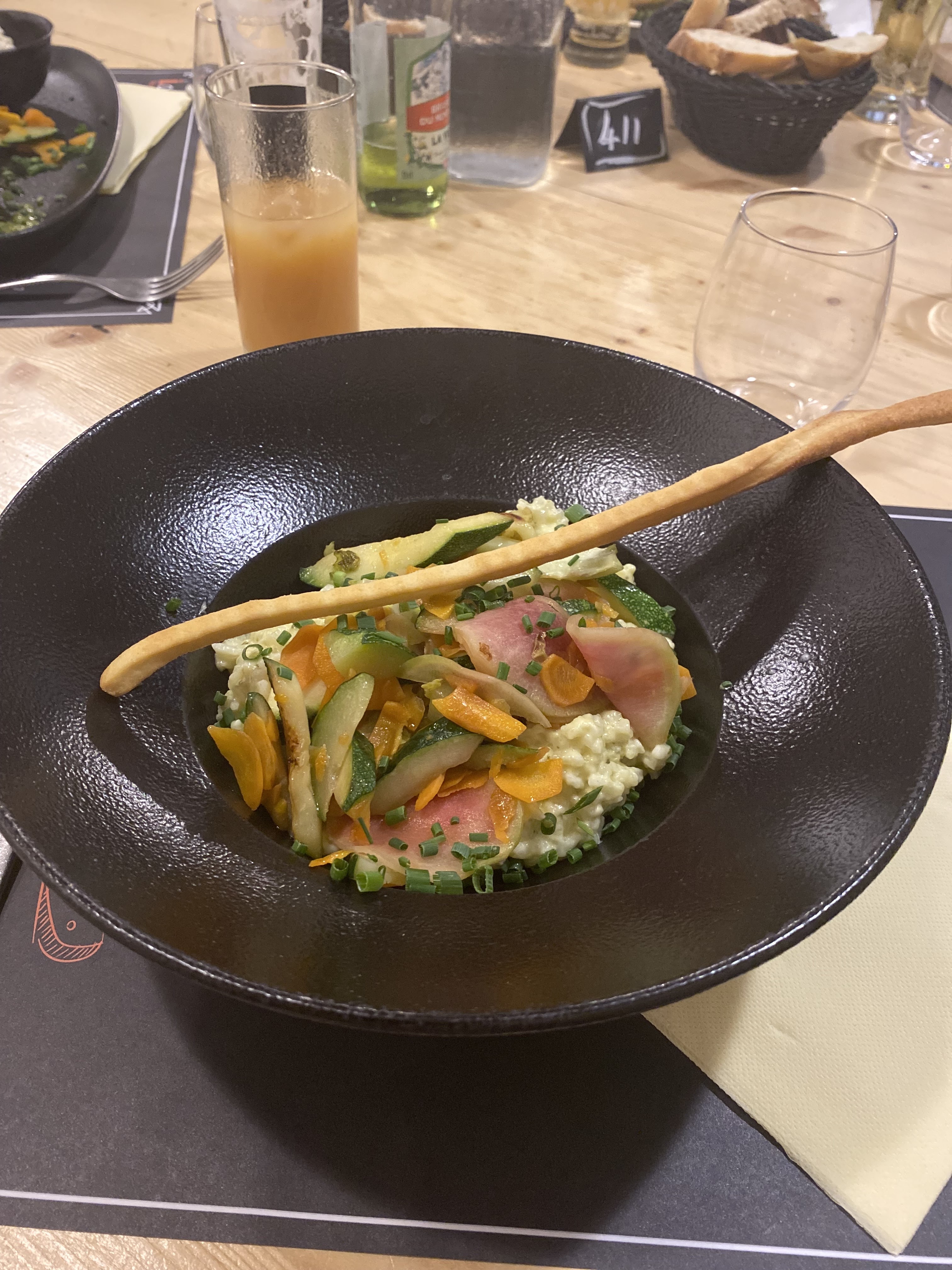 Excellente adresse, entrée plutôt basique mais très bien réalisé et peu coûteuse ! Beaucoup de choix en plats il y en a pour tout les goûts n’hésitez pas je recommande, très belle terrasse et service agréable. (+énormément de produits locaux)