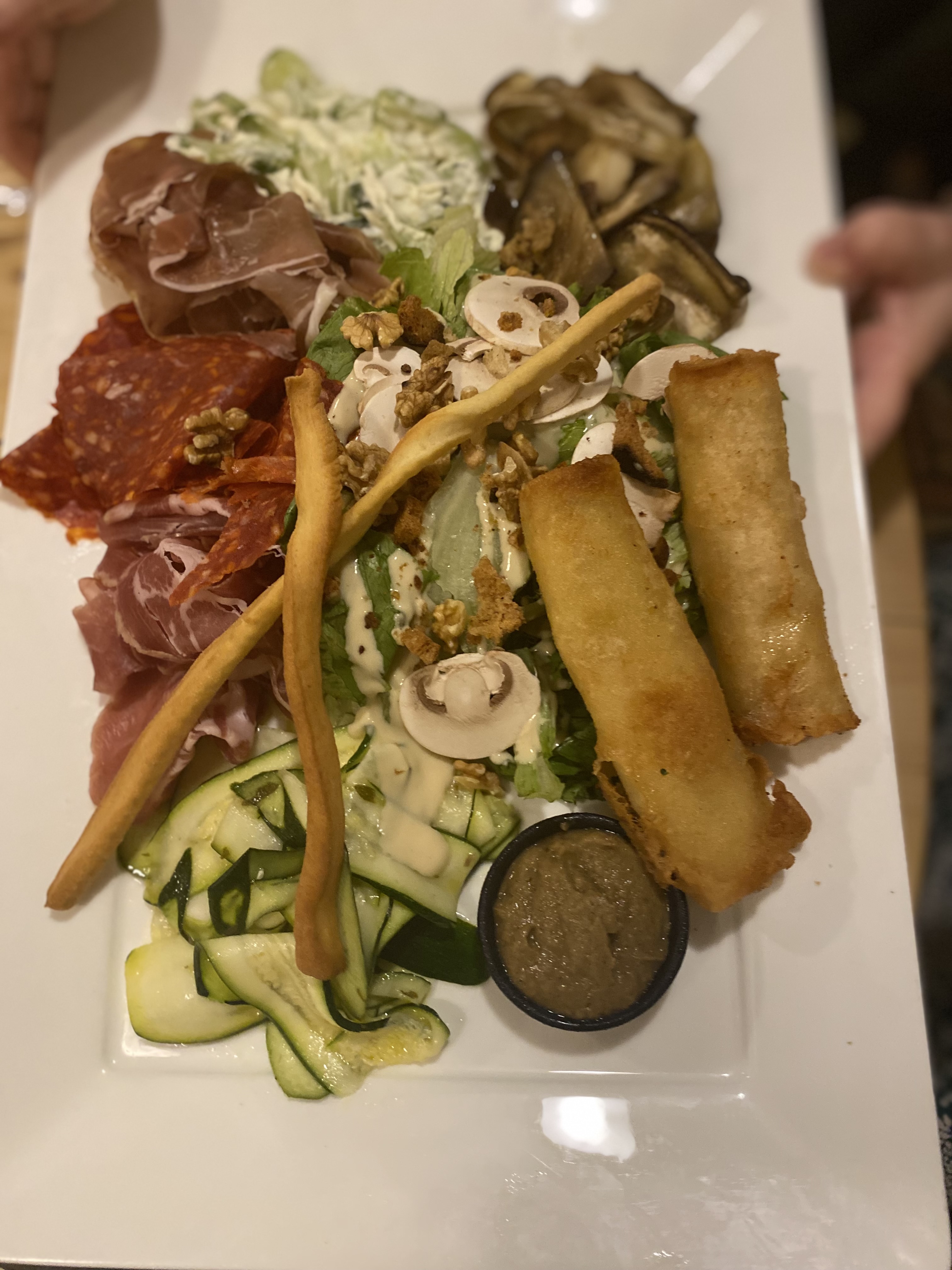 Concept au top et les plats choisis (salade et dessert) étaient excellents. Très copieux, j'ai demandé un doggy bah que l'on m'a fait sans hésiter et je me suis encore régalé le lendemain. On était une bonne tablée et le digestif (lemoncello) nous a été offert. Je recommande à 100%
