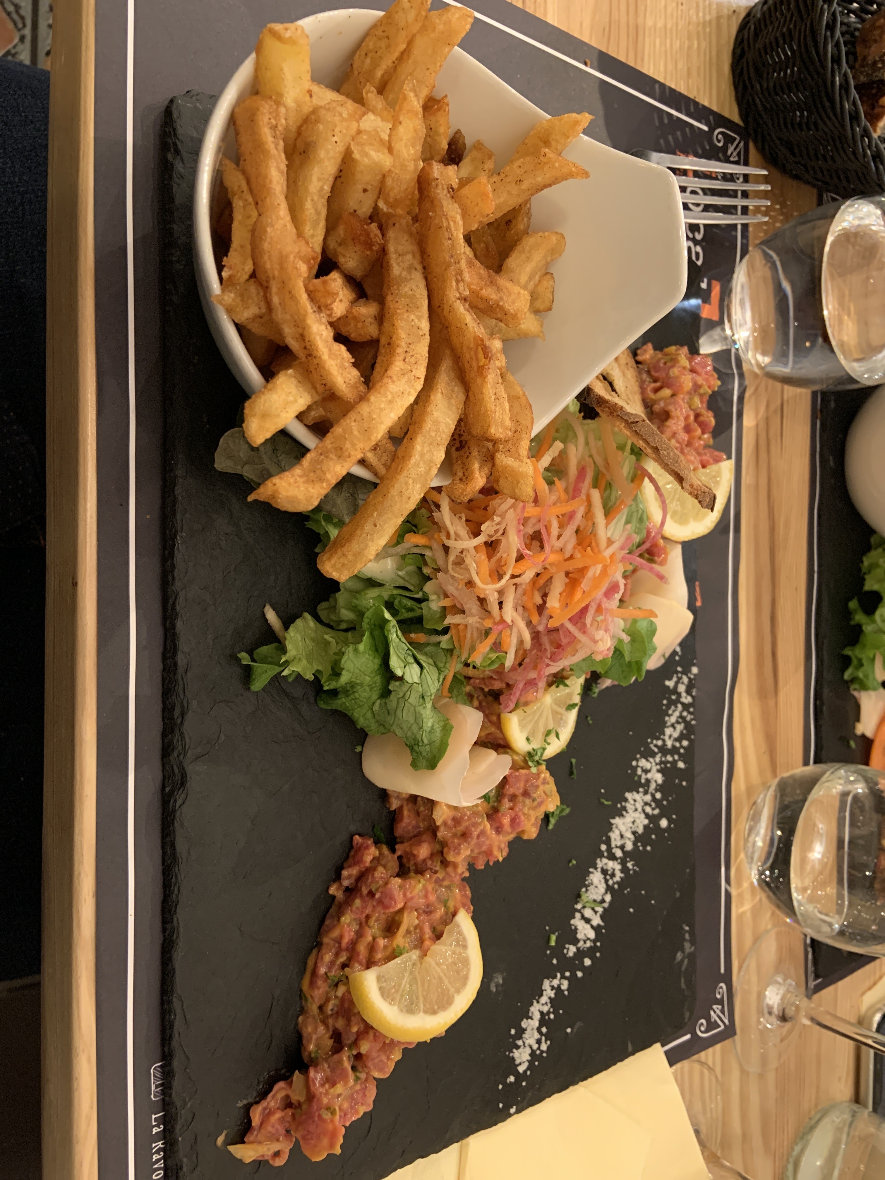 Je sors du restaurant et j'ai presque envie de m'arrêter chez McDo tellement les quantités sont pas adaptées j'ai commandé un tartare non préparé c'est-à-dire préparer à ma grande stupéfaction on m'a apporté un tartare Avec des rondelles de navets 😱des radis 😱 une sauces déjà toutes prêtes,pas de sel et quatre morceaux de pomme de terre Enfin du grand n'importe quoi. En plus en cuisine ils ont oublié notre table on a attendu une éternité on nous a promis un digestif offert choses que l'on n'a jamais vu tout ça pour la mode somme de cent cinquante euros pour quatre personnes😱