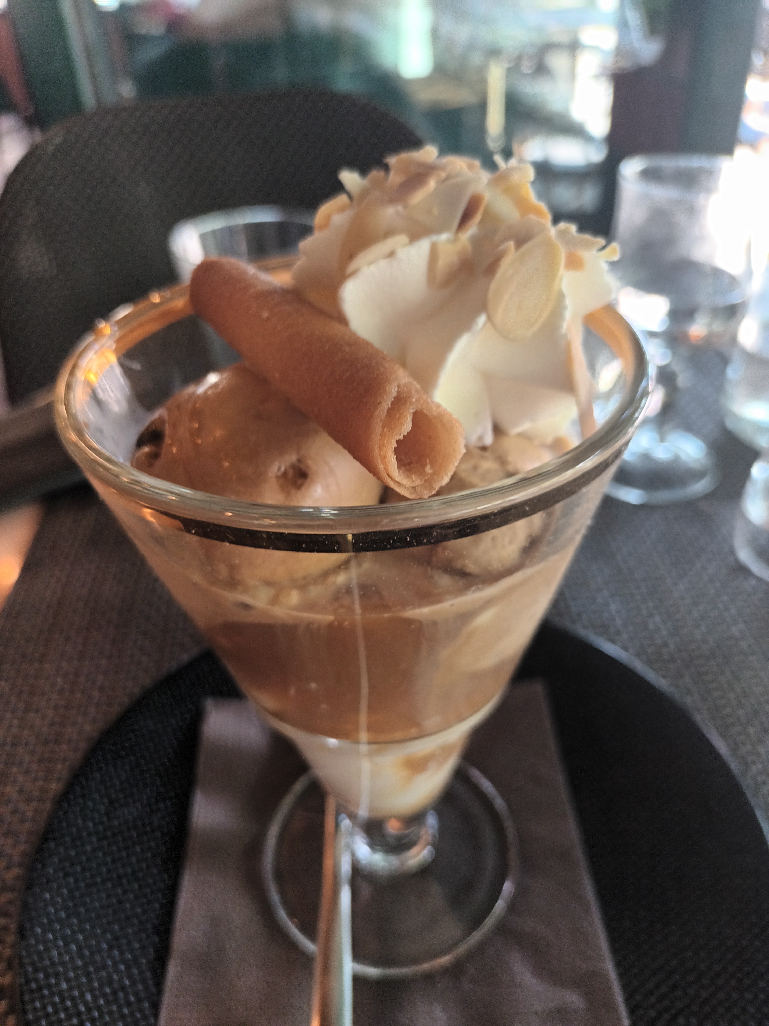 Bonjour. Nous avons fait le choix de nous arrêter dans cette brasserie car c’était écrit en gros : GLACIER. Le glacier se trouve être un revendeur Carte d’Or. Nous avons commandé 1 coupe 2 boules de glace, 1 fondant au chocolat et sa glace et un Perrier 50 cl: 20,30€ pour des boules faites à la petite cuillère, en 2 bouchées plus rien et le verre de Perrier est arrivé directement servi dans le verre sans pouvoir vérifier si c’était bien du Perrier. Le serveur nous justifiant les quantités servies par le fait de payer un loyer prohibitif et donc de devoir se contenter du lieu en oubliant ce pourquoi nous sommes venus: prendre un goûter sympa et rafraîchissant. Selon lui, seul les clients mécontents laissent des Avis, je confirme que si la politique de l’établissement ne change pas rapidement, plus personne ne viendra perdre son temps et son argent dans ce lieu. La remise en question est une qualité qui n’est pas donné à tout le monde, dommage car la brasserie se situe dans un coin stratégique de Versailles à l’abris de la circulation. Je comprend mieux pourquoi je n’avais jamais mis les pieds dans cet établissement malgré près de 3 ans à travailler dans le secteur. La formule gagnante est pourtant simple: - glace artisanale. - service avec le sourire. - produit frais (cuisine fait maison) et de saison.. Une chose est sûr, c’est la première et dernière fois que nous venons vous rendre visite.