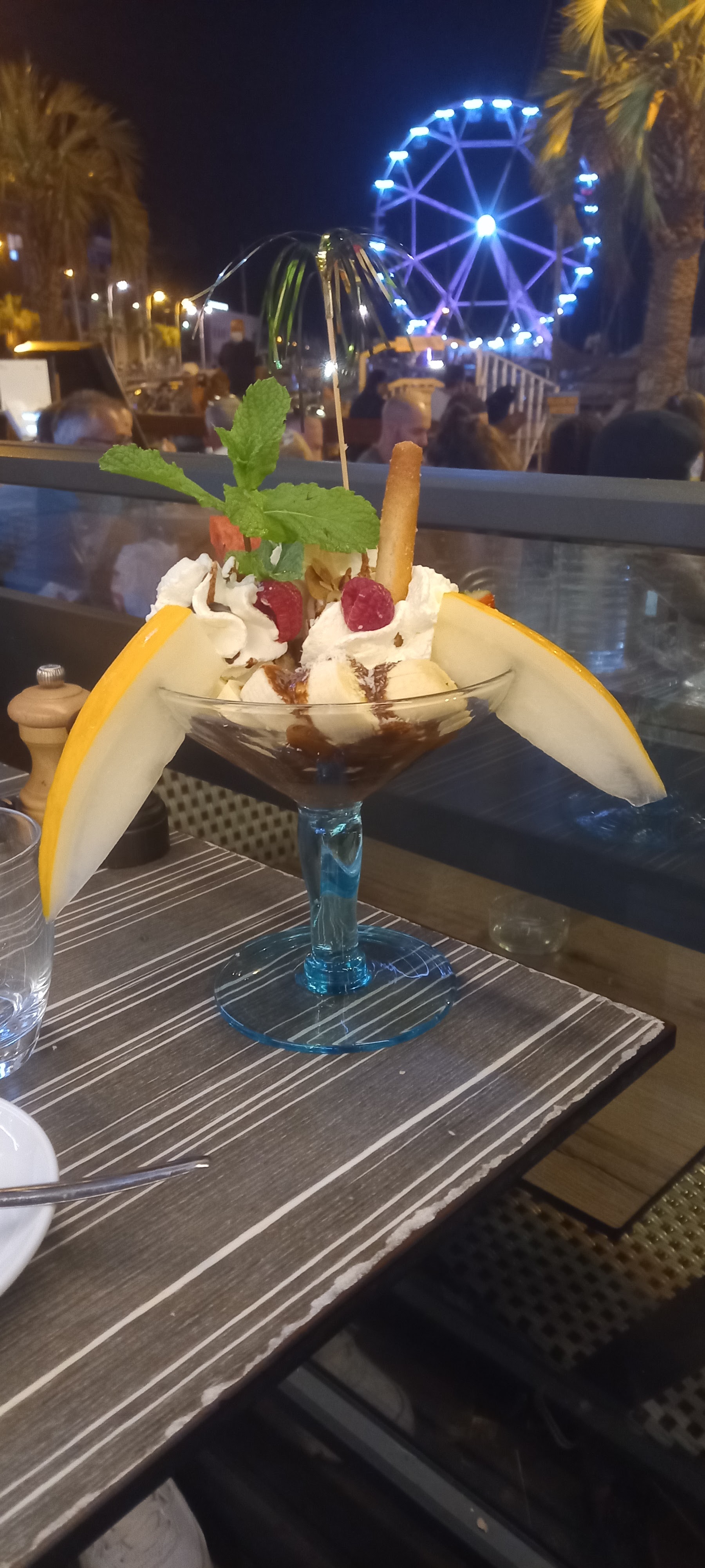 Le personnel s'est montré aimable et serviable, c'est le point positif. Pour les points négatifs, il y a les tarifs, dont la courbe est l'inverse de celle relative à la qualité et la quantité de ce qui est servi au client pour le prix payé. Et les profiteroles, au sujet desquelles j'aurais apprécié d'être avertie que ce fussent des choux rassis vraisemblablement surgelés et son coulis de chocolat industriel que je ne supporte plus dans les restaurants et lequel, pour moi, représente un indictaur certain de la manière dont les ingrédients sont choisis et de l'attention que l'on porte au client (le diable est dans les détails ). La situation privilégiée sur le port (même si les voitures qui vont se garer nous frôlent de longue toute la soirée) fait sans doute partie de l'équation. Dommage, le personnel est vraiment sympathique.