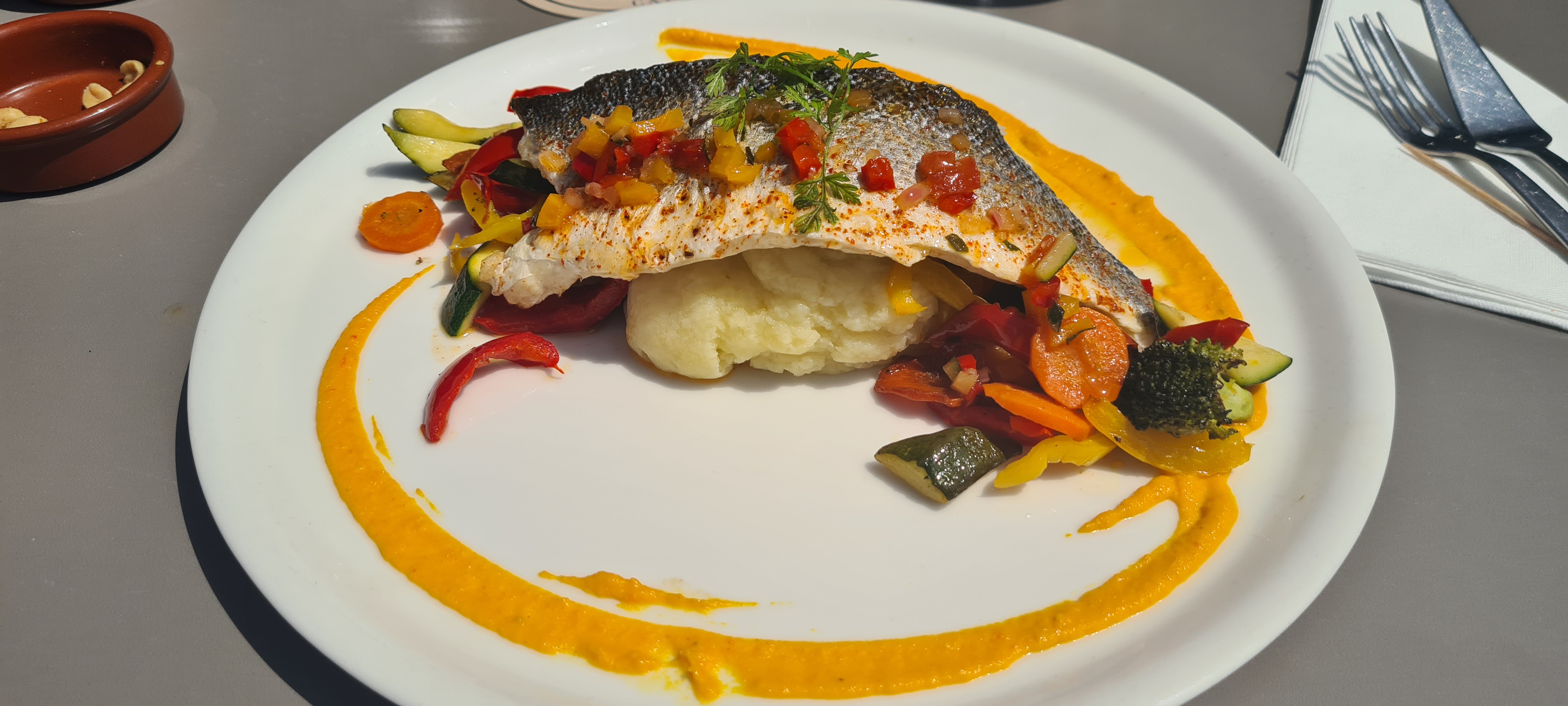 Repas en terrasse pour profiter de quelques beaux jours hivernaux. Parfait. RQP un peu élevé mais comme partout dans le coin.