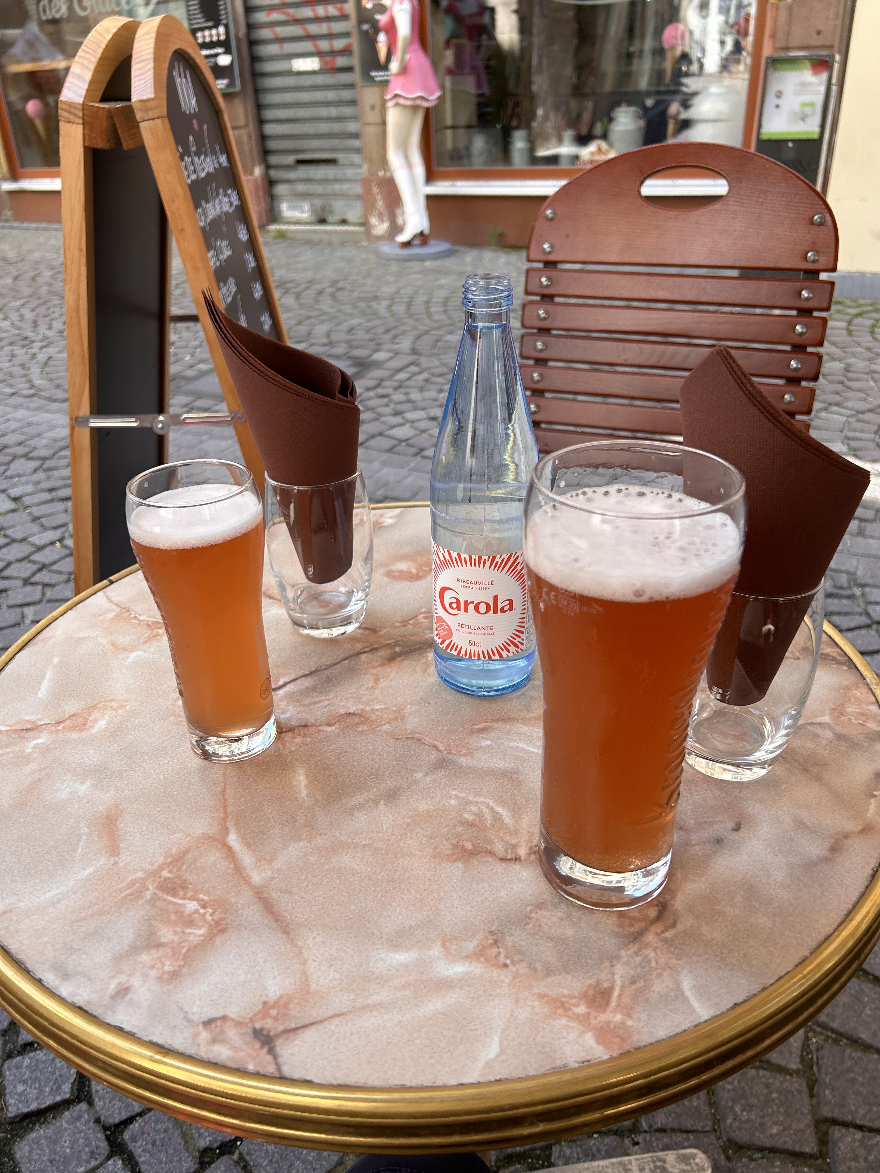 En fait, nous avions juste envie de faire une petite pause, puis nous avons mangé une tarte flambée. La brasserie est entièrement recommandée. Très bonne qualité, prix correct et patron sympathique, merci !
