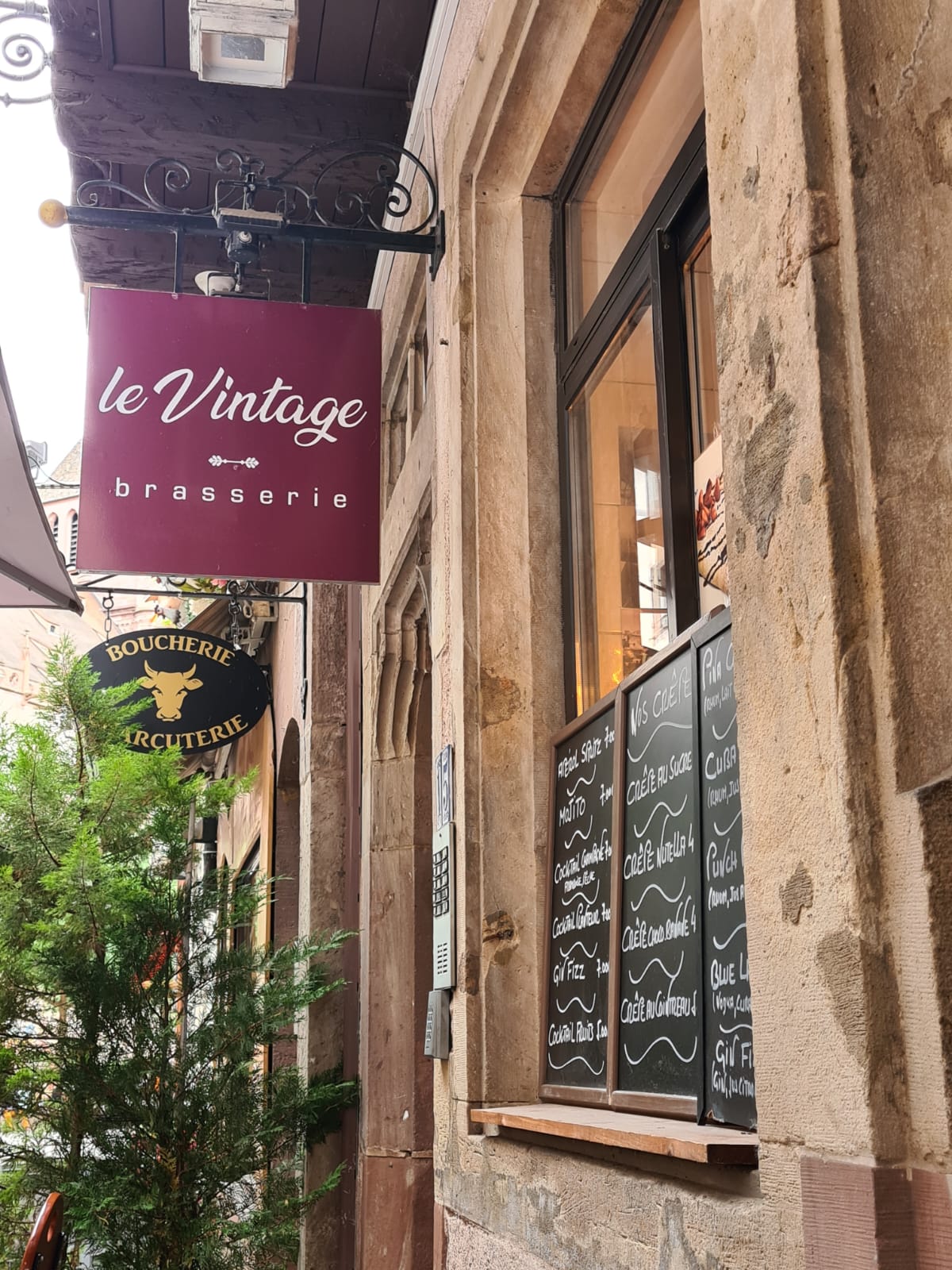 …une ballade à Strasbourg centre et une halte à la brasserie « Le Vintage » rue des Serruriers vous permettra de vous restaurer après un accueil fort sympathique. Vous pourrez profiter d’une petite terrasse dans la rue où d’un intérieur dans un univers cosy, piano bar, rétro…quoi qu’il en soit vous y trouverez votre bonheur . Je ne conseillerais pas l’établissement aux jeunes enfants. Ex : salade cesar avec des composants frais ( pas de panure industrielle) et généreuse. Parking Gutenberg à proximité