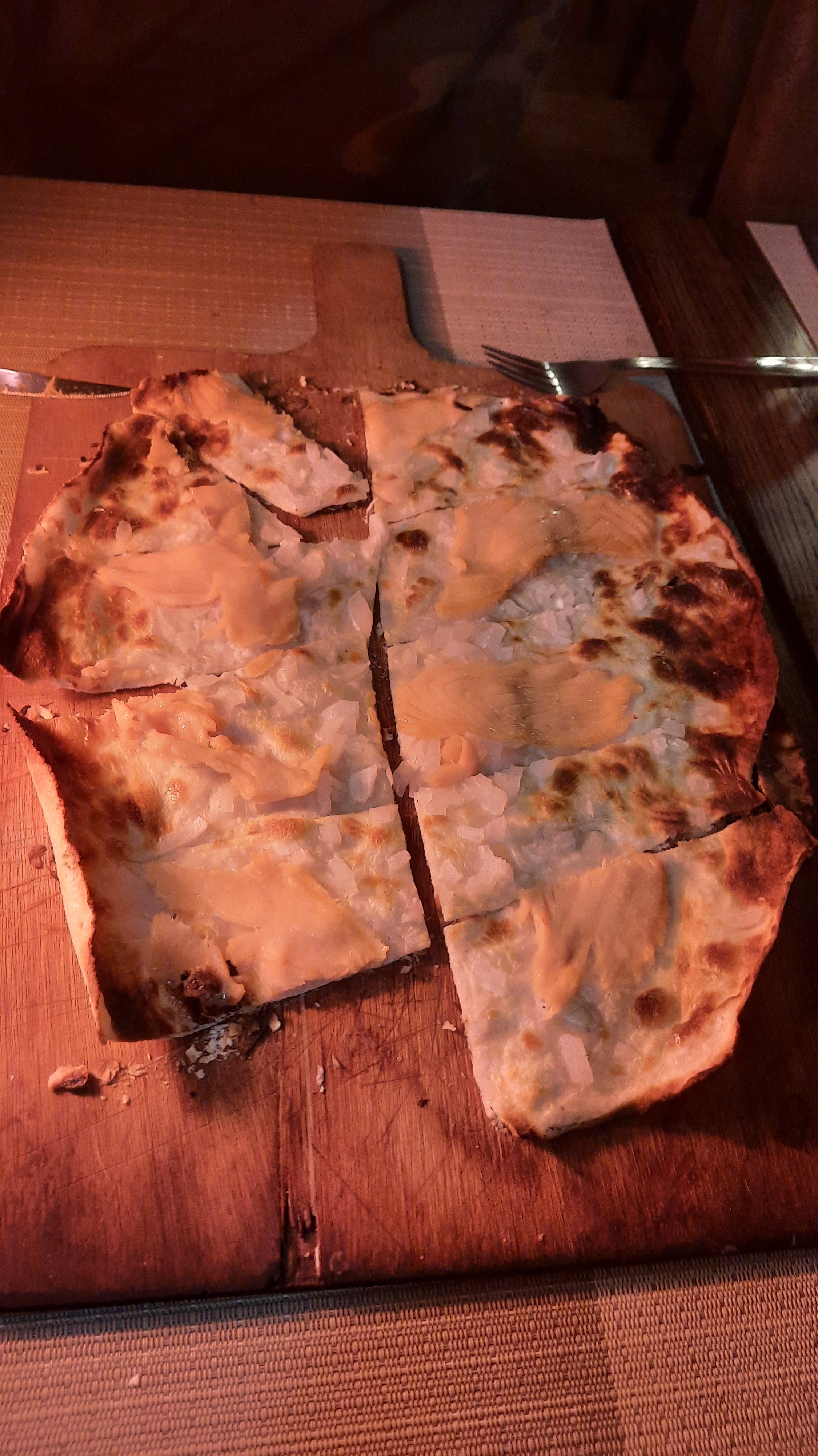 Le cadre est sympathique, les tartes flambées sont très bonnes. Mais, il est dommageable que nous n'ayons pas pu mangé en même temps avec ma compagne. Après avoir été changé de table deux fois, une première tarte arrive. Nous l'avons finalement partagé car la suivante est arrivée seulement 10 minutes après.