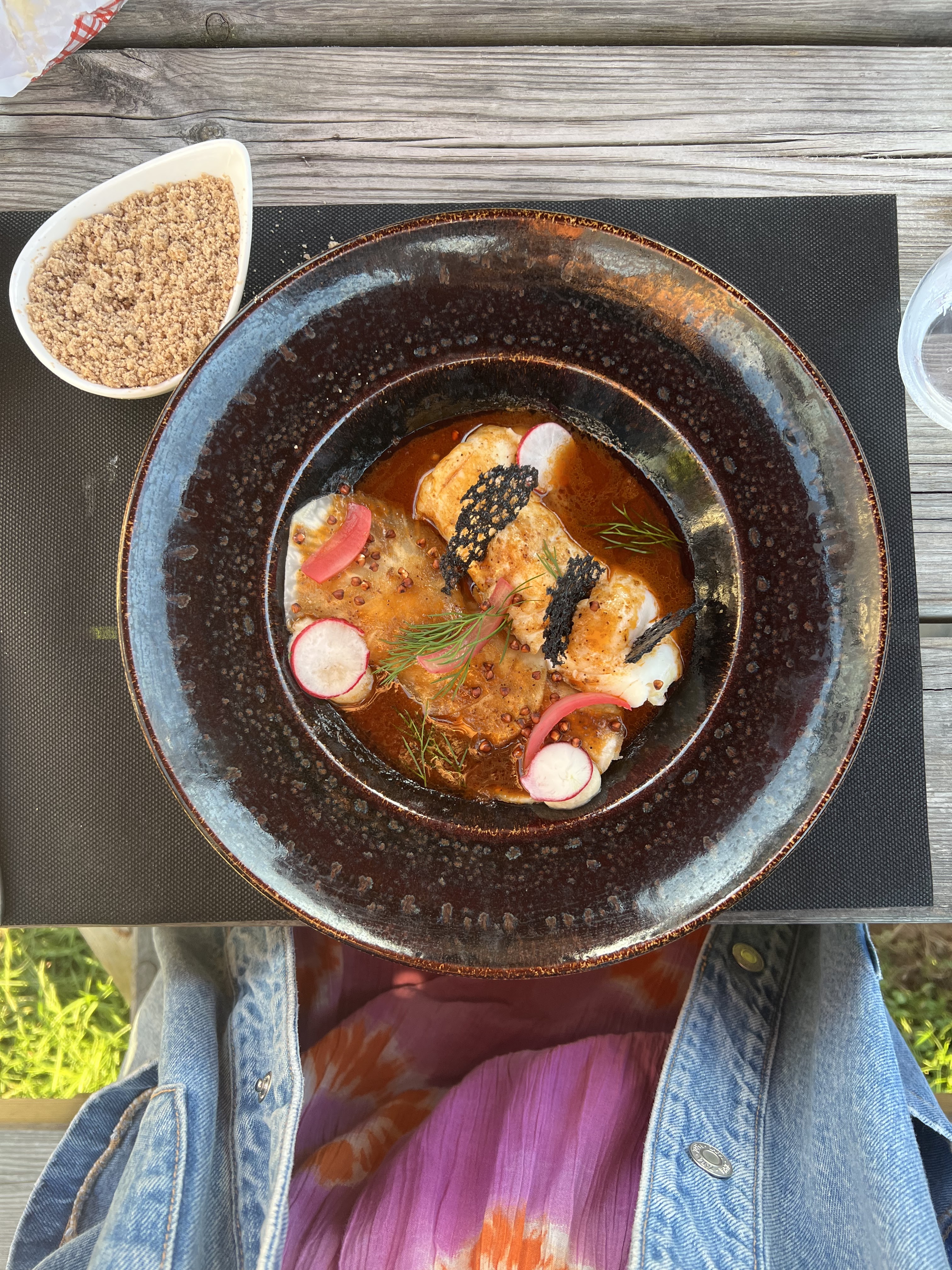 De l araignée de mer en passant par le farz de lieu jaune pour terminer avec le sablé aux fraises et pistache voici la recette d un moment de bonheur aussi bien pour les yeux que pour les papilles. Merci pour la gentillesse et la bienveillance de l ensemble du personnel. Un endroit à ne pas manquer.