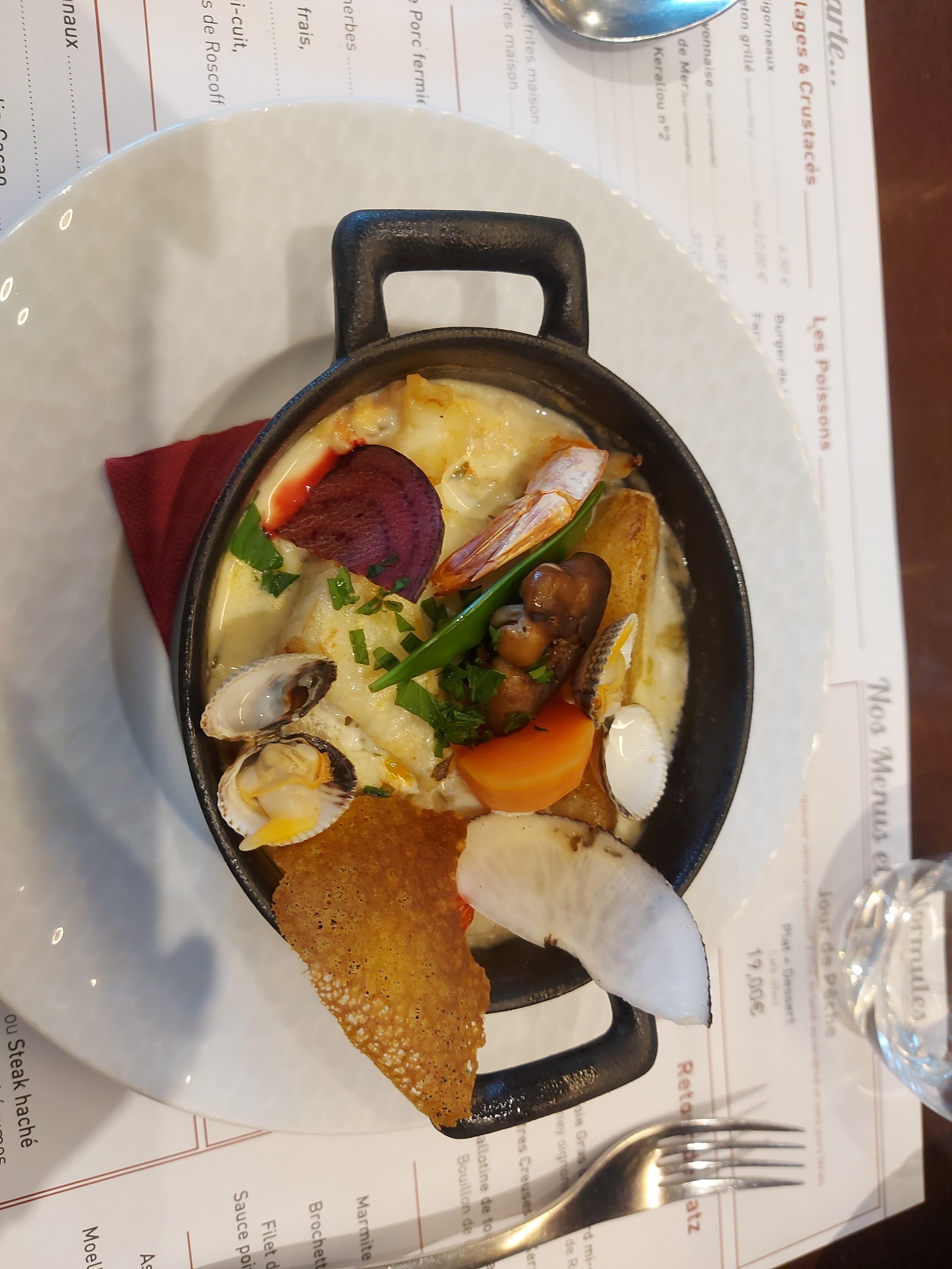 La patronne a commencé son boulot en salle il y'a 36 ans, elle en avait 19, et son mari 20 ans, lui en cuisine. Cette longévité se traduit dans l'assiette. Excellentissime, nous avons pris le vin au verre seule erreur, ce n était pas au niveau des plats... Bonne continuation à cette institution à Roscoff.