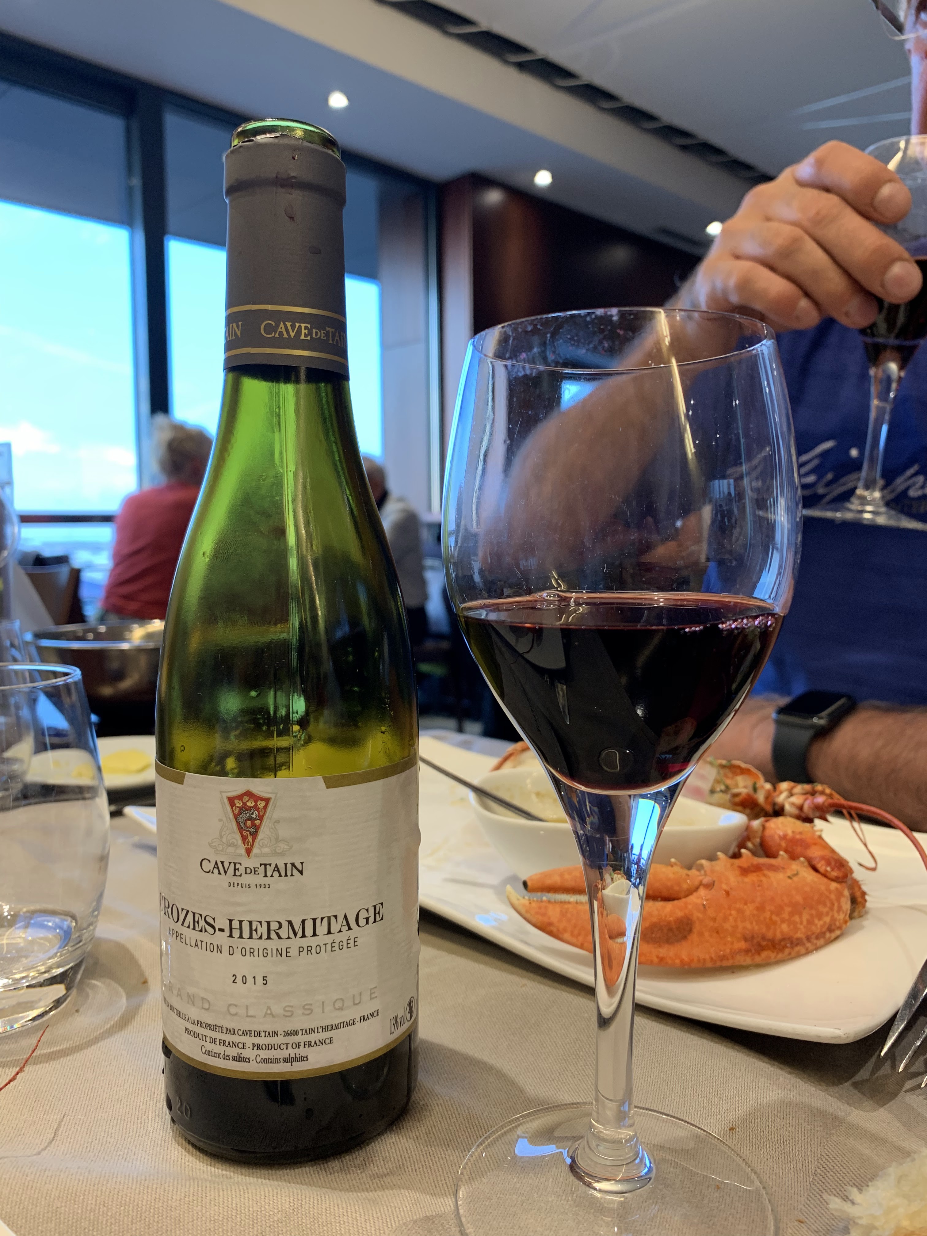 Très grand établissement La vue du premier étage donne sur le port Belle vue Le restaurant est complet Il vaut mieux réservé car c’est un restaurant qui semble très prisé Nous avons commencé par des entrées très intéressantes Crémeux de celtiane, qualité nouvelle de pomme de terre avec de l’andouille C’est crémeux à souhait goût excellent et puissant Tartare de tourteau et algues de wakame avec crème de céleri entrée froide et délicate, plus subtil Nous avons pris un homard grillé Accompagné de petits légumes vapeur en poêlon ... Tout d’abord on fait connaissance avec notre futur plat Homard à l’œil vif qui bientôt sera dans notre assiette Le jus de cuisson est à côté du homard pour ceux qui aiment les sauces Les desserts Une verrine de fraises avec chantilly pistache et croustillant au chocolat Succulent Petite tarte noisettes praliné et agrumes accompagnée d’une boule de glace ❄️ Le tout est grandiose Je recommande chaudement Le service impeccable Accueillant service rapide si souhait Les toilettes propres aquarium à homard 🦞