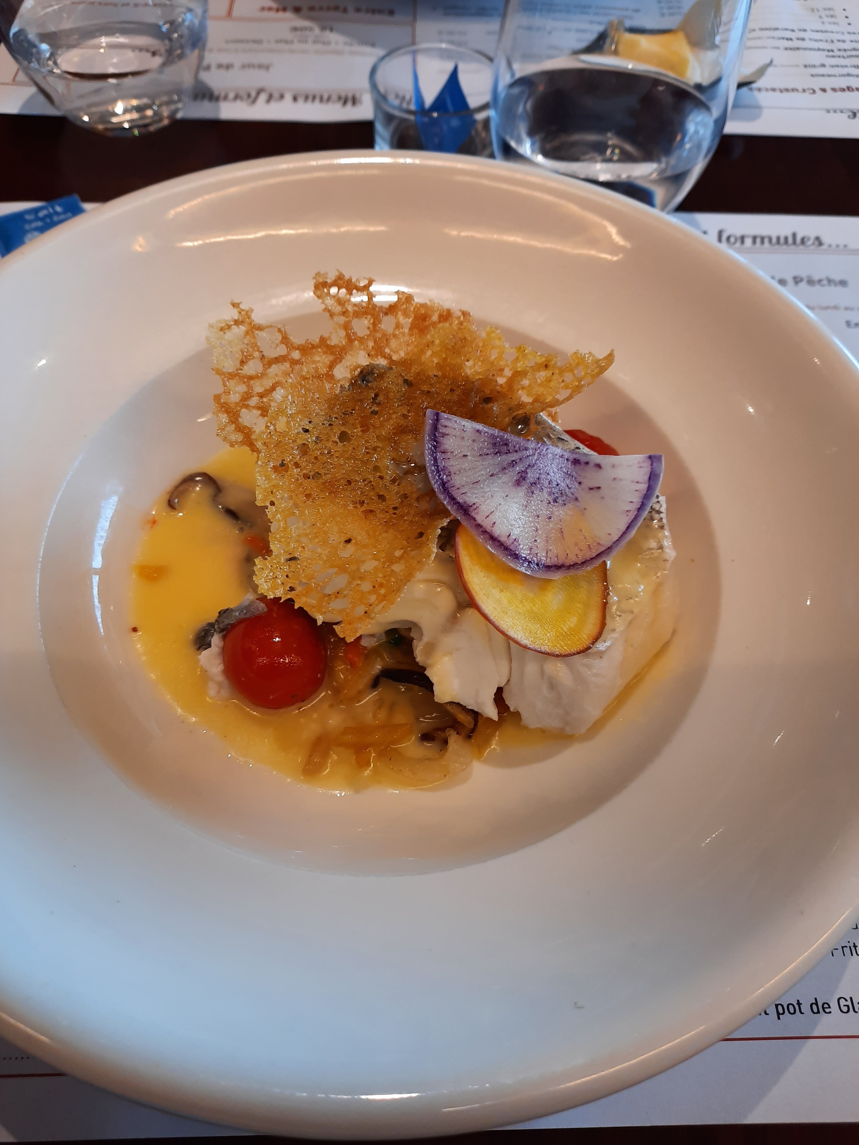 Nous n’avons retenu que la vue, sur le port de Roscoff. Le reste , c’est à dire le plus important, le repas était plus que moyen. Du pain de mie avec le foie gras. Pas de variété de pain, uniquement du pain aux graines, une des personnes y étant allergique a eu du pain de mie également avec le plateau de fromage… De l’entrée au plat, jusqu’au fromage décoration de tranches de radis comme sur la photos. Le carpaccio de coquille St Jacques et poisson fumé, 1 coquille découpée en lamelles, et plein de poison fumé hyper salé, le tout jeté en vrac dans l’assiette, agrémenté de rondelles de radis… Le poisson, lieu jaune, et ses petits légumes, recouvert de tranches de radis… La cassolette de poisson, jeté en vrac avec tranches de radis et légumes, dont poivron, sans aucune cohérence gustative. Le fromage avec tranche de radis….et pain de mie. Il y a pourtant d’excellentes boulangeries à Roscoff. Le dessert, soit dessert exotique, tranches de gâteau roulé jetés en vrac, surmonté d’une meringue , mal présenté, ne donnait pas envie. Soit un dessert au chocolat qui semblait industriel. Pour un menu a 40€, entrée, plat, dessert, c’est décevant. Je n’y retournerai pas, mes amis non plus.