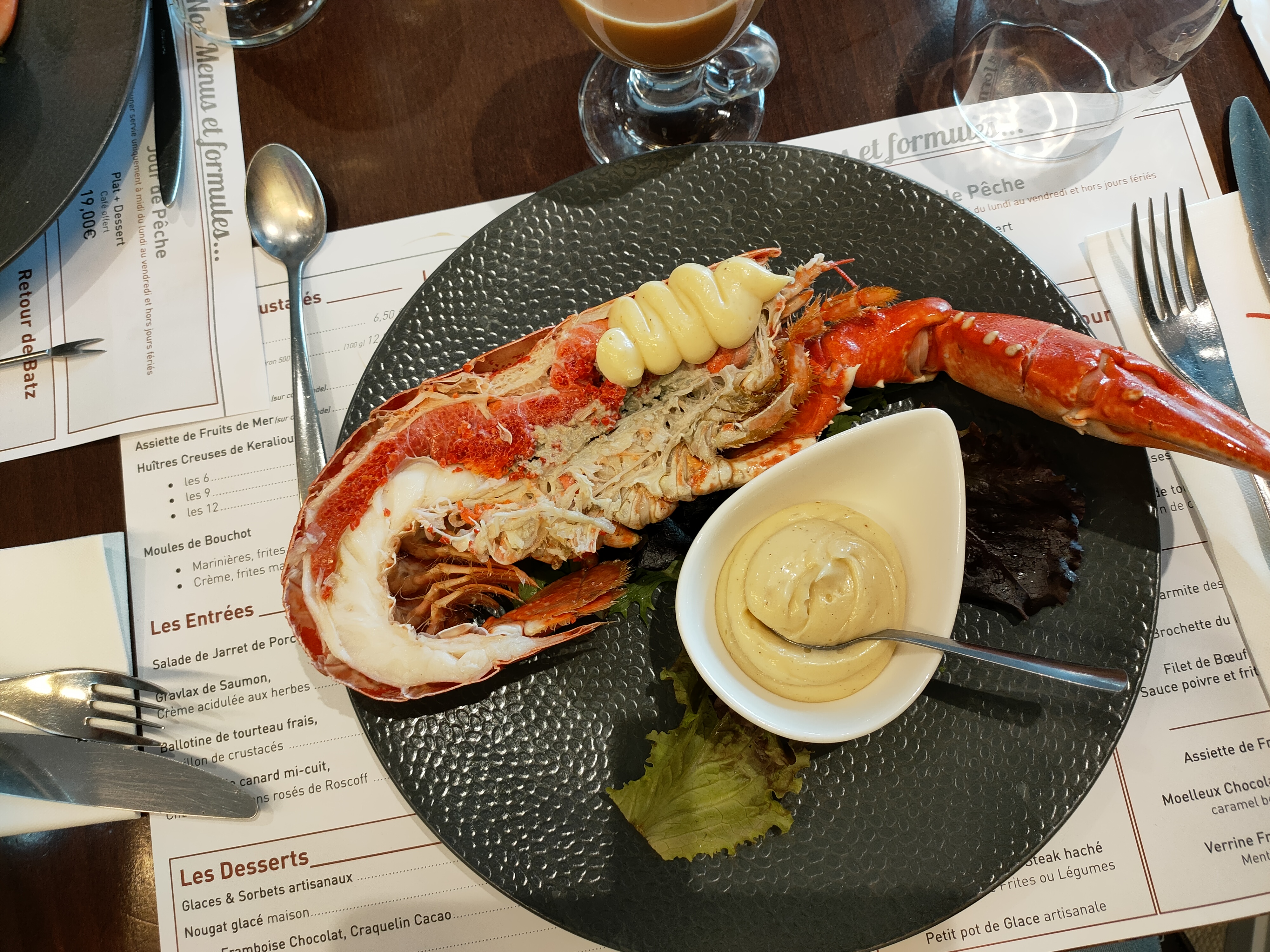 Un incontournable pour les inconditionnels de fruits de mer ! Demie araignée mayonnaise, bigorneaux, huîtres, demi homard ! Une régalade ! La serveuse nous a même aidé dans la suite de notre tour de Bretagne à Velo ! A très bientôt peut être !