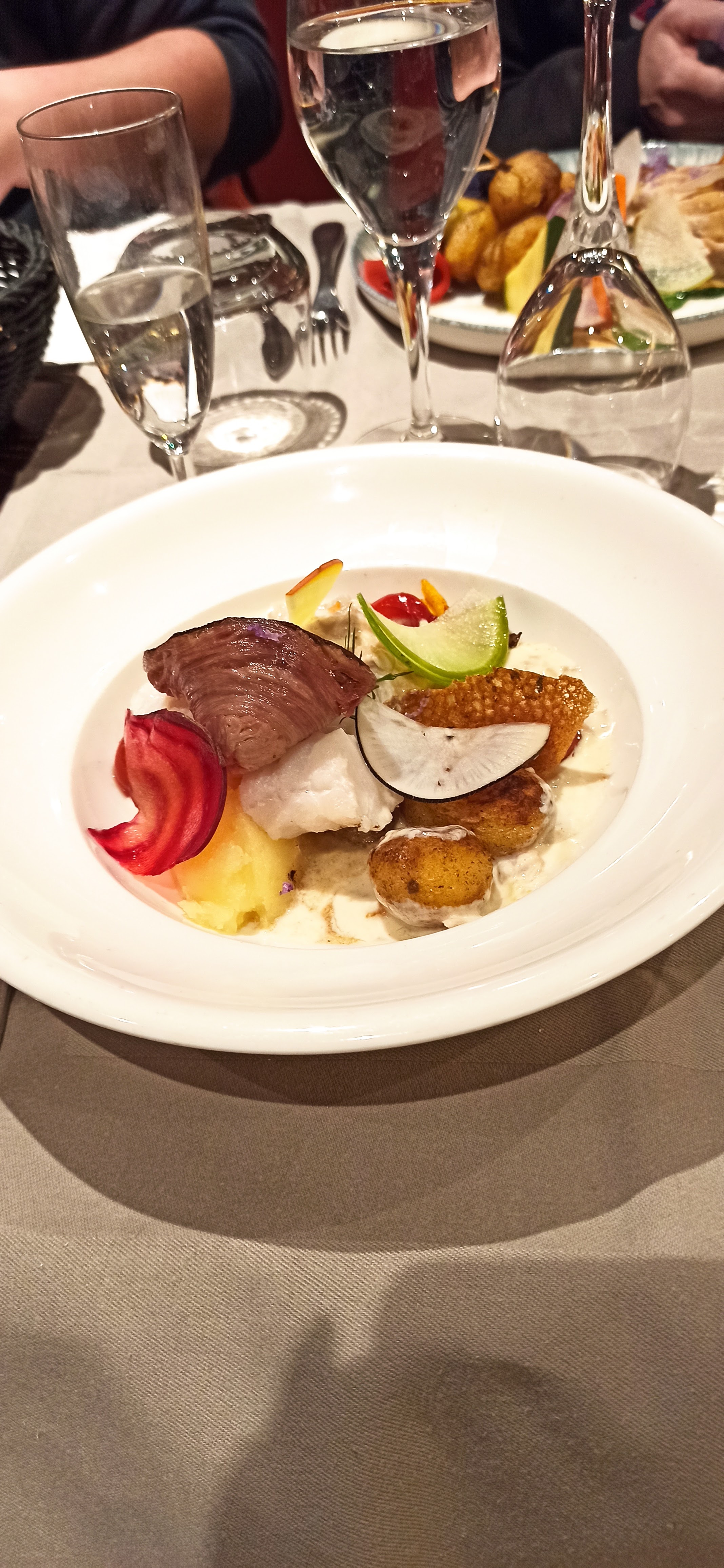 Décor et vues magnifiques, ce restaurant nous a servi une cuisine locale fantastique, la meilleure étant la Marmite, qui était aujourd'hui un ragoût de fruits de mer. Le menu fixe était excellent, des huîtres et foies de veau, en terminant par une sublime assiette de fromages. Service super sympa et efficace.
