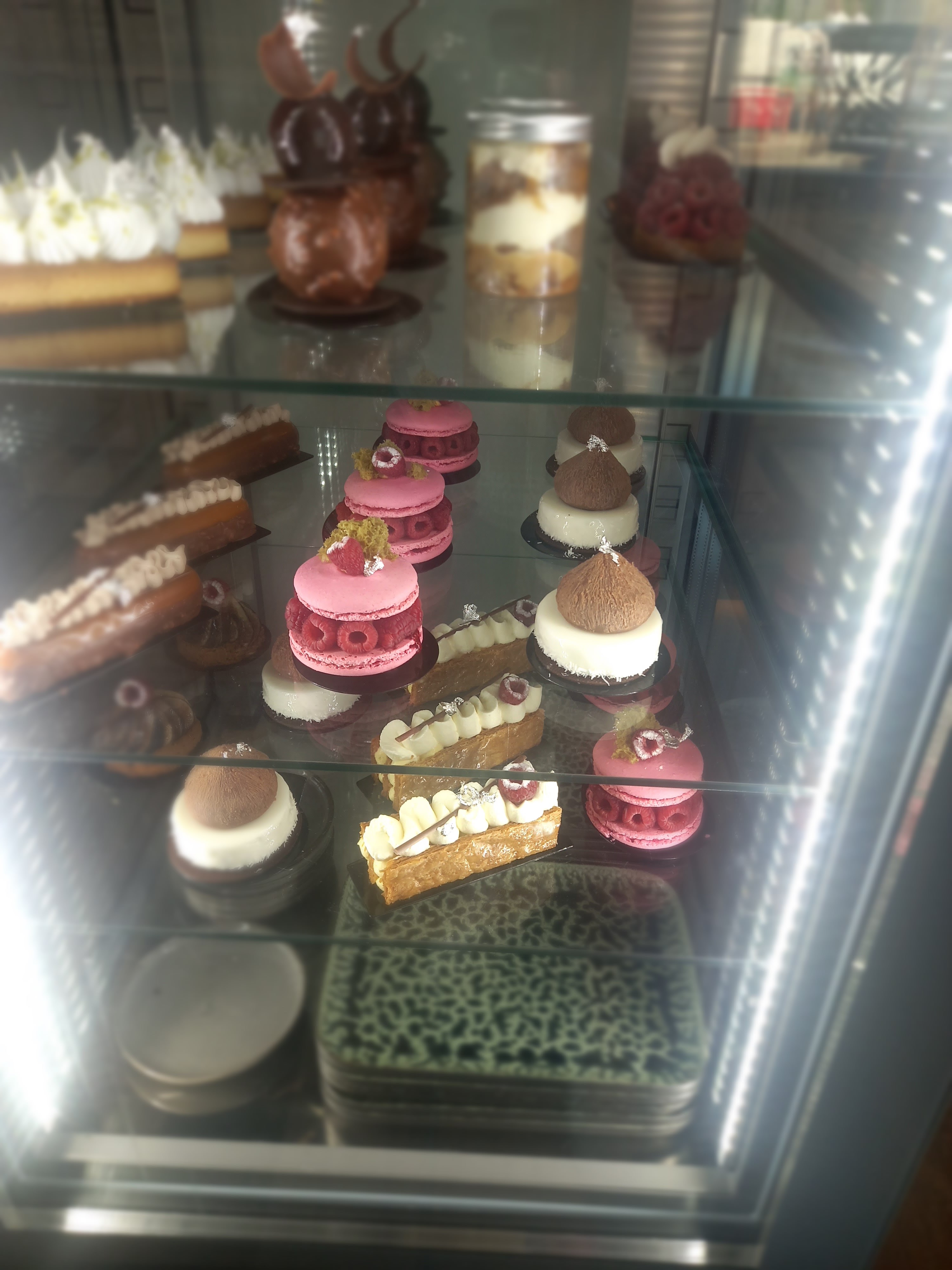 Avons pris deux gâteaux,une larme rouge Et un entremet..coco.deux cafés 25eur.. Une addition de 20eur,,,c,est plus correct Sommes venu avec un chien en terrasse Deux personnes pâtissiers alors on connaît Le sujet des coûts de revient