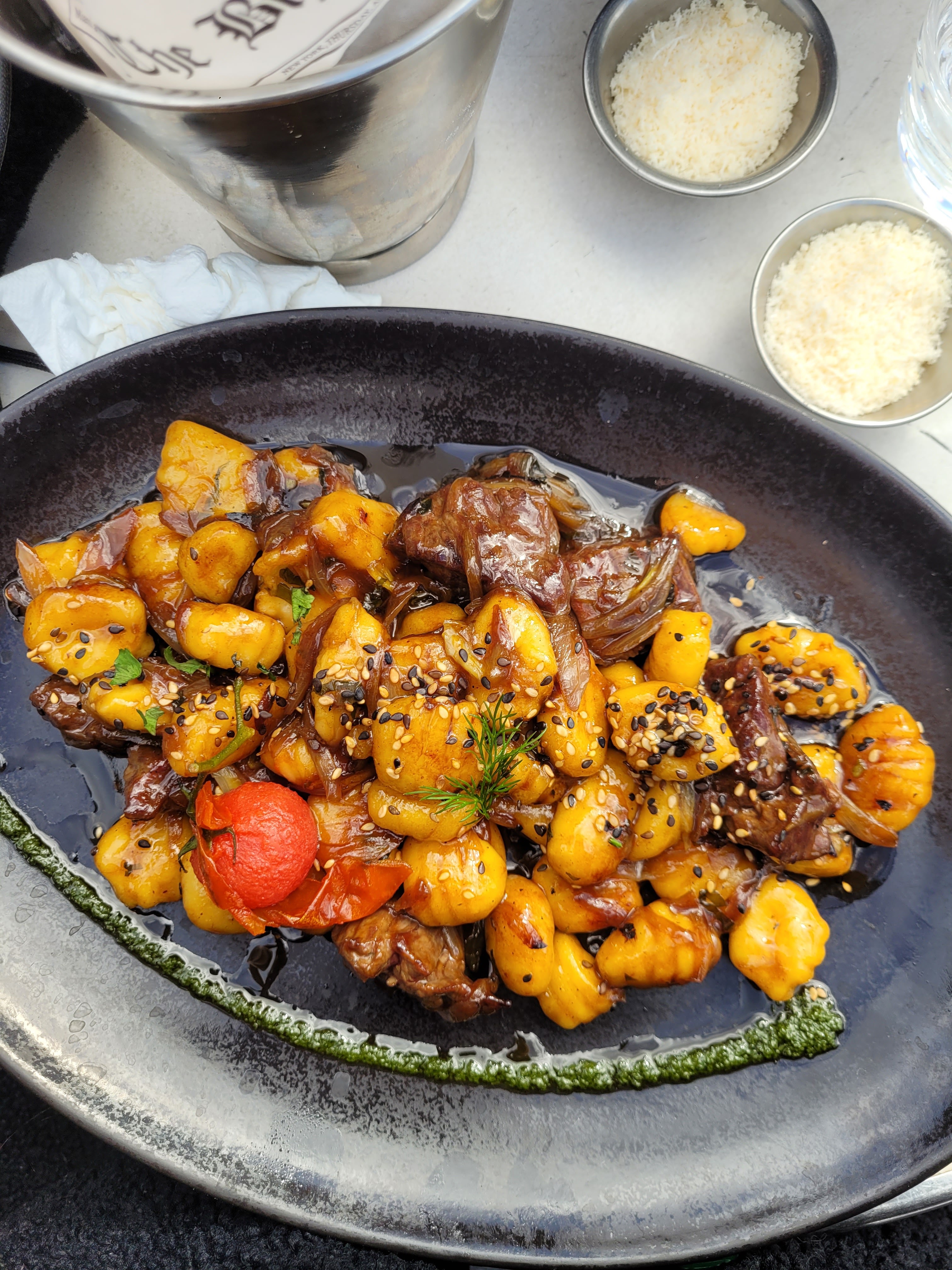 Lieu très jolie et le service adorable et impeccable. Par contre certains plats ne nous ont pas du tout plus et avaient un goût assez particulier. Très chère pour ce que c’est.